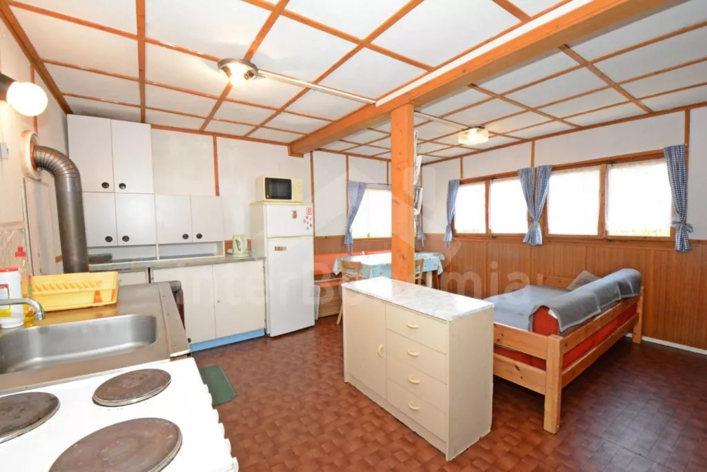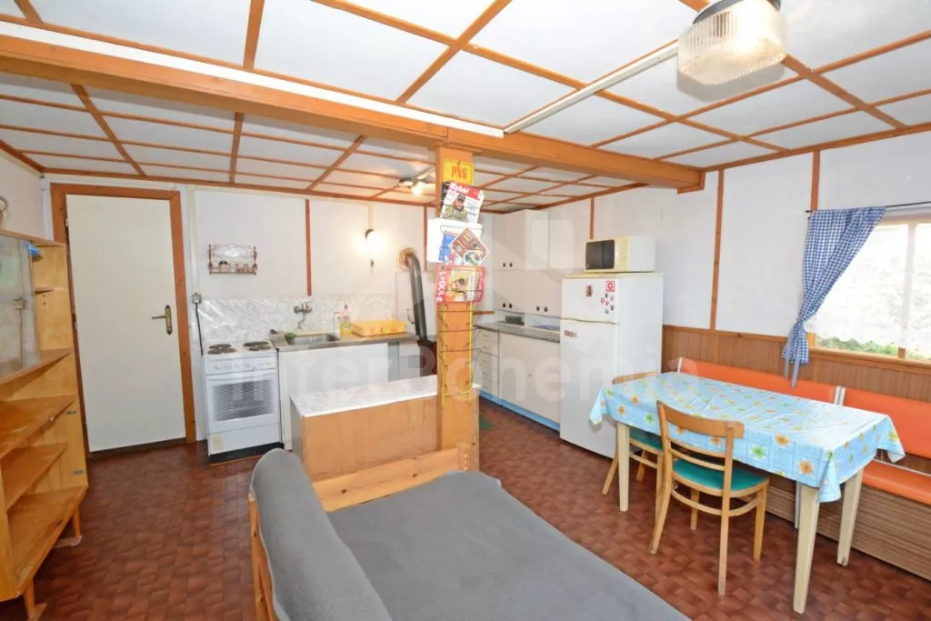 Volně stojící dřevěná chata na vlastním oploceném pozemku, účelně a pohodlně zařízená. Vstup, prostorná obývací místnost s pohovkou, jídelním stolem pro 6 osob a rádiem. Součástí je kuchyně se… Více informací