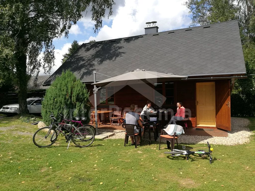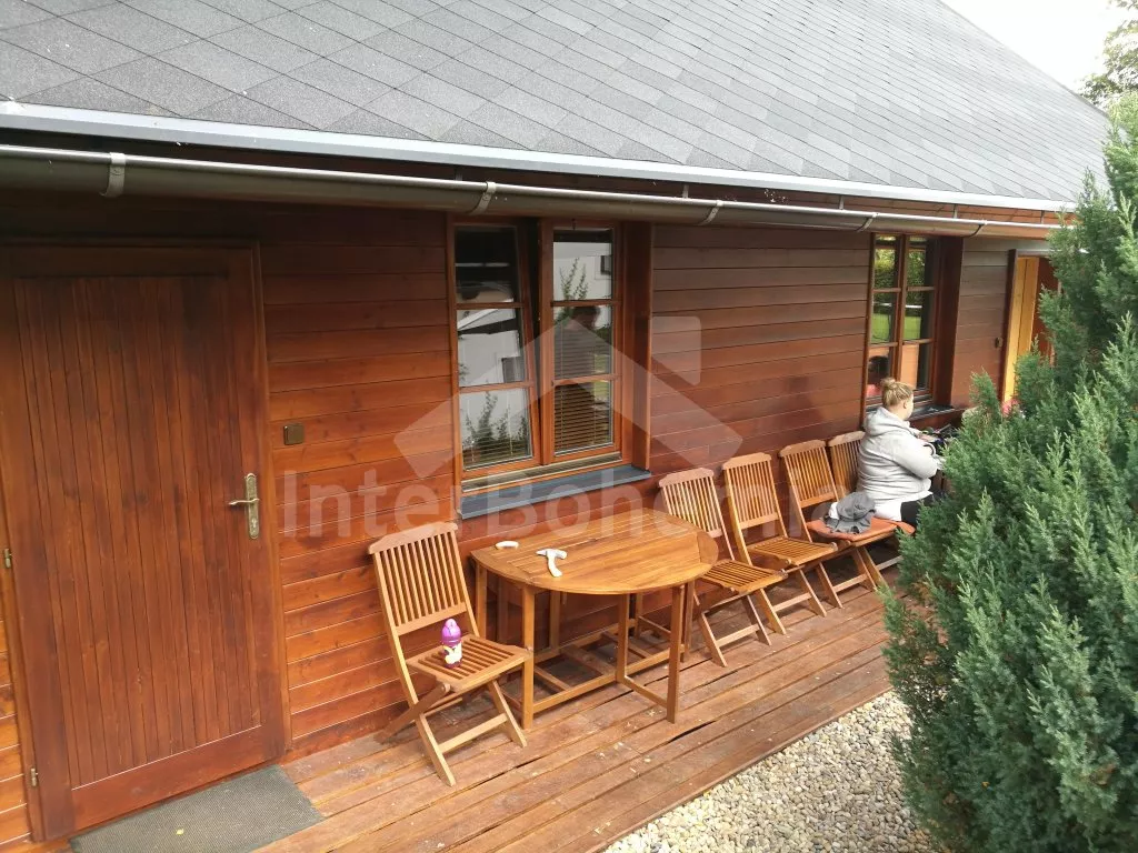 Volně stojící dvojchata, postavená v roce 2016, pěkně a účelně zařízená. Chata je rozdělená na dvě stejné části - Vy si pronajímáte jednu polovinu. Každá má vchod, obývací pokoj s jídelním stolem pro 4 osoby, plochou LCD televizí, krbem, kuchyňským koutem s lednicí, elektrickým sporákem, kávovarem, varnou konvicí a mikrovlnnou troubou. Obývací pokoj disponuje také jedním dvojlůžkem. Koupelna s masážním sprchovým koutem, umyvadlem, toaletou a pračkou. Nahoře (výstup po žebříku) je druhá ložnice s trojlůžkem. Vytápění elektrickým podlahovým topením a krbovými kamny. Chata stojí na neoploceném pozemku. K dispozici je zahradní nábytek se slunečníkem, pergola se dřevěným nábytkem, ohniště. Parkování u domu.