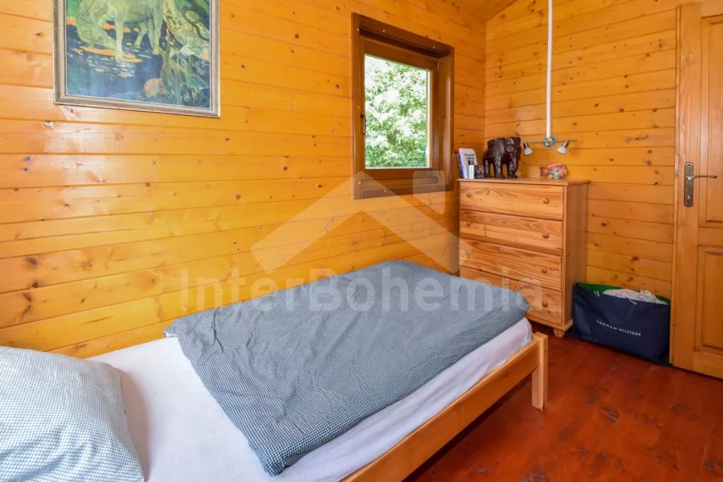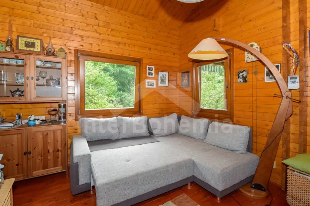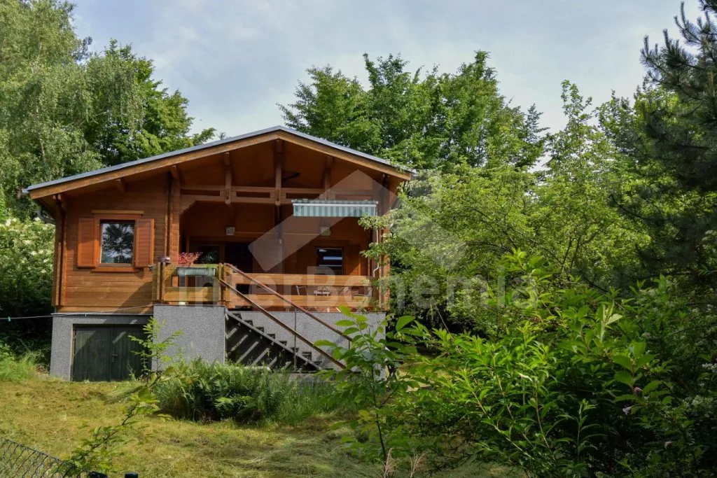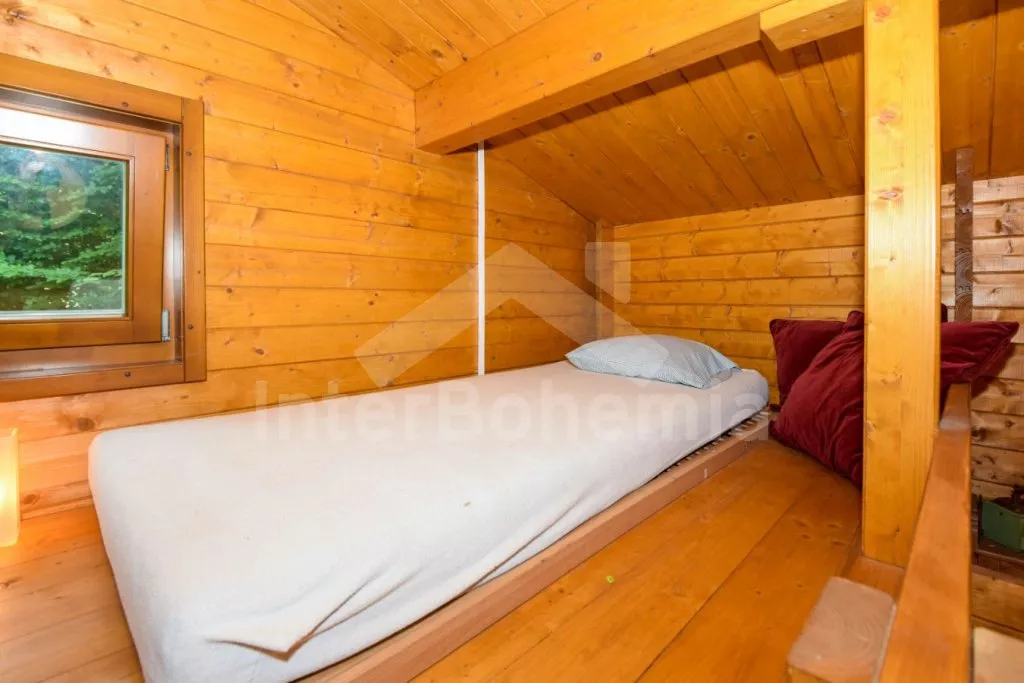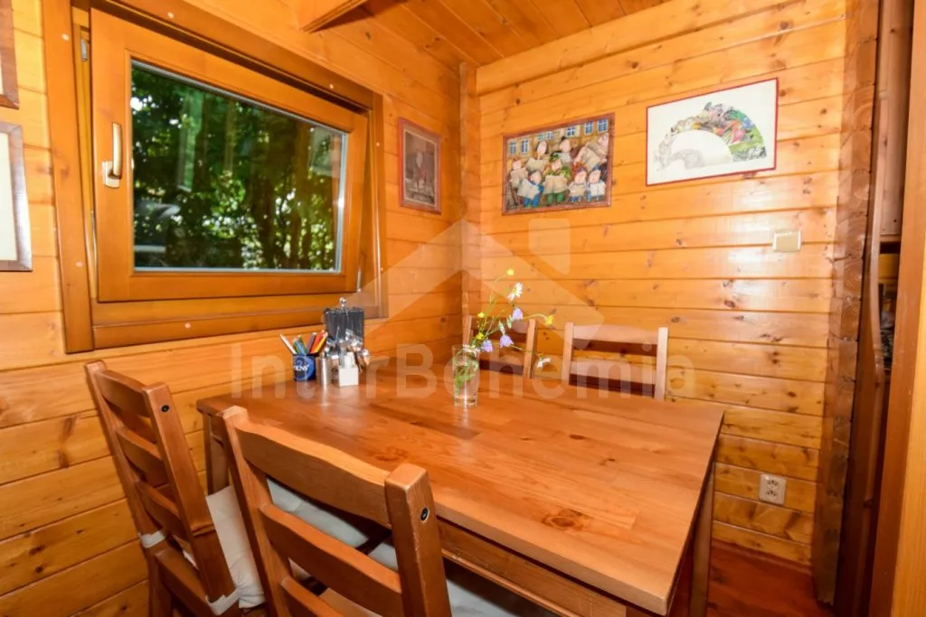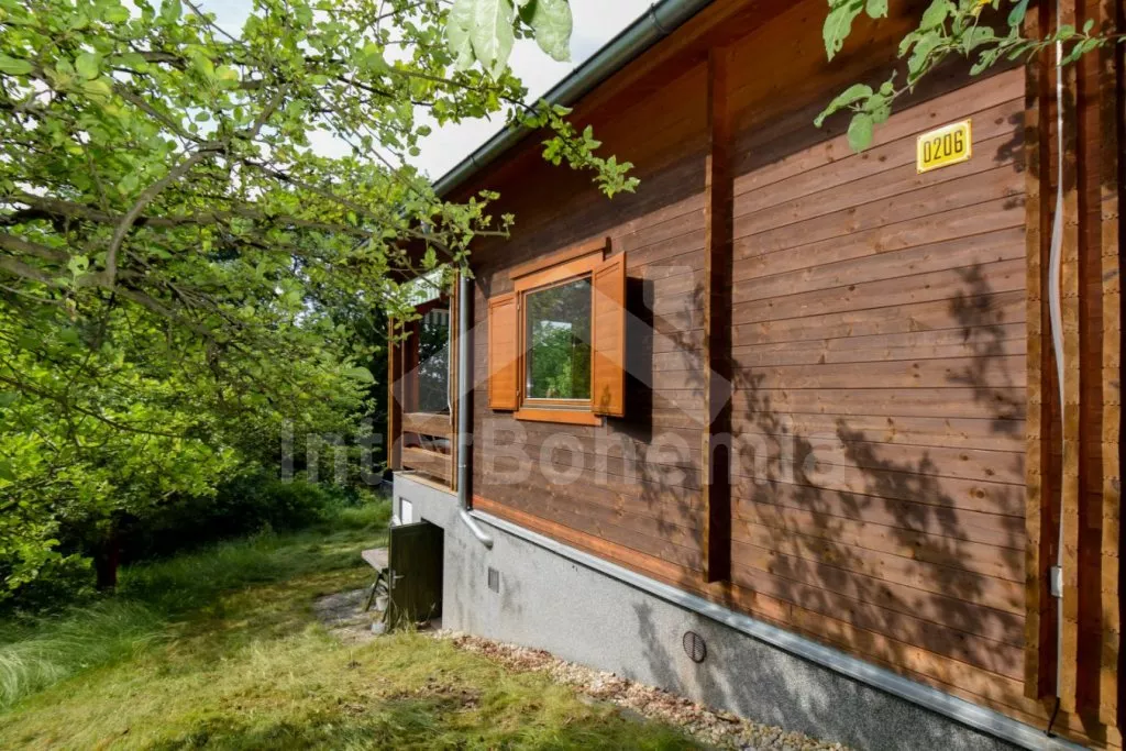 Volně stojící chata s oplocenou zahradou. Vstup po venkovním schodišti, terasa s venkovním posezením a výhledem do zeleně. Hlavní obývací místnost s kuchyní, jídelnou, novou sedací soupravou (dvě pohodlná lůžka) a LCD televizí. Kuchyňská linka s dvouplotýnkovým elektrickým sporákem, mikrovlnnou troubou s grilem, lednicí s integrovaným mrazákem, rychlovarnou konvicí a nádobím. Jídelní stůl pro 4 osoby. Nad pokojem otevřená galerie se dvěma matracemi. Samostatná ložnice s manželskou postelí. Koupelna se sprchovým koutem, umyvadlem, pračkou a WC. Vytápění objektu elektrickými přímotopy a kamny. K dispozici oplocená zahrada se vzrostlými stromy, ohniště a zastřešené parkování pro 1 vozidlo.