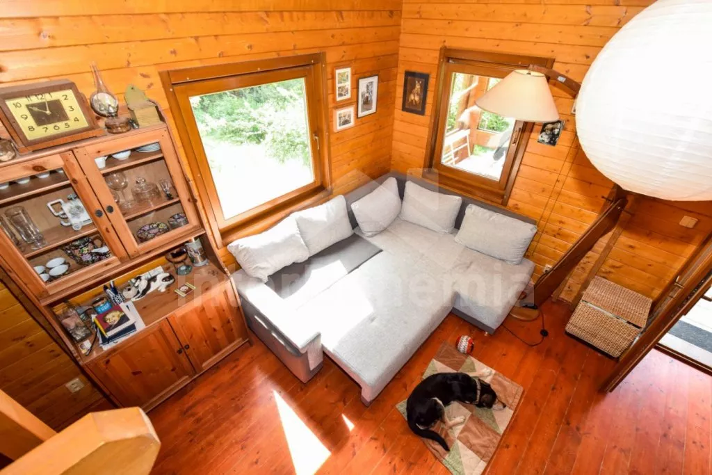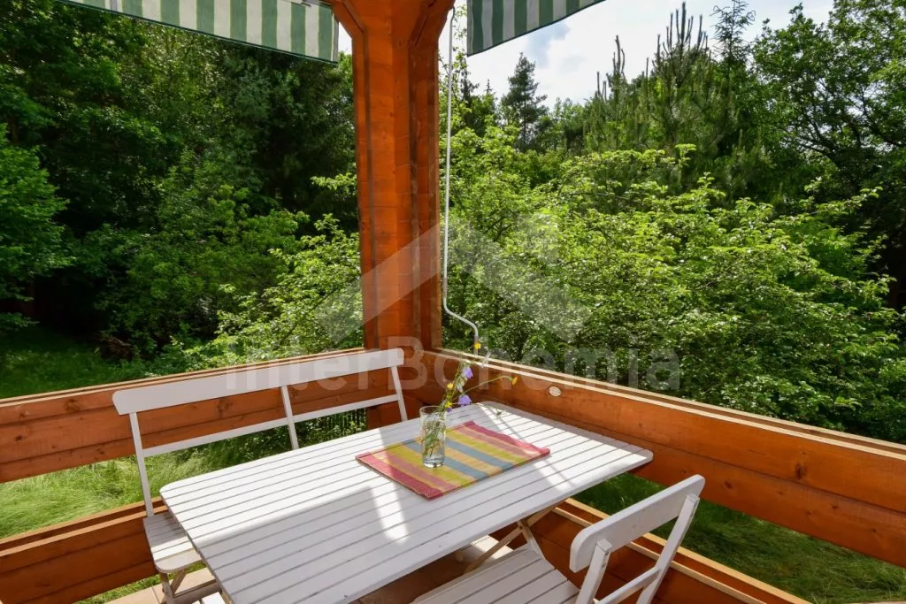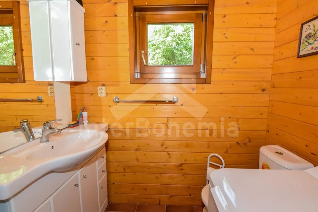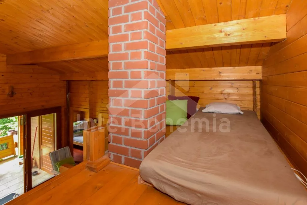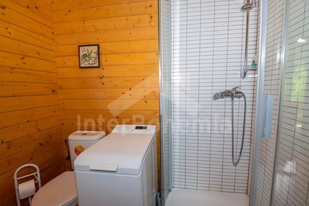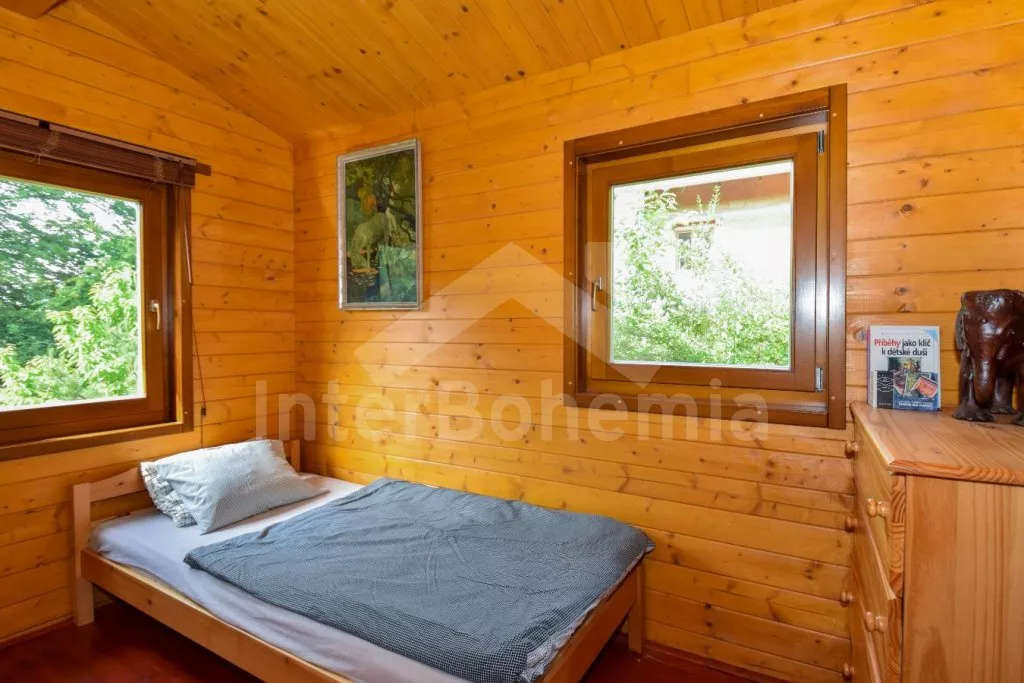 Volně stojící chata s oplocenou zahradou. Vstup po venkovním schodišti, terasa s venkovním posezením a výhledem do zeleně. Hlavní obývací místnost s kuchyní, jídelnou, novou sedací soupravou (dvě pohodlná lůžka) a LCD televizí. Kuchyňská linka s dvouplotýnkovým elektrickým sporákem, mikrovlnnou troubou s grilem, lednicí s integrovaným mrazákem, rychlovarnou konvicí a nádobím. Jídelní stůl pro 4 osoby. Nad pokojem otevřená galerie se dvěma matracemi. Samostatná ložnice s manželskou postelí. Koupelna se sprchovým koutem, umyvadlem, pračkou a WC. Vytápění objektu elektrickými přímotopy a kamny. K dispozici oplocená zahrada se vzrostlými stromy, ohniště a zastřešené parkování pro 1 vozidlo.