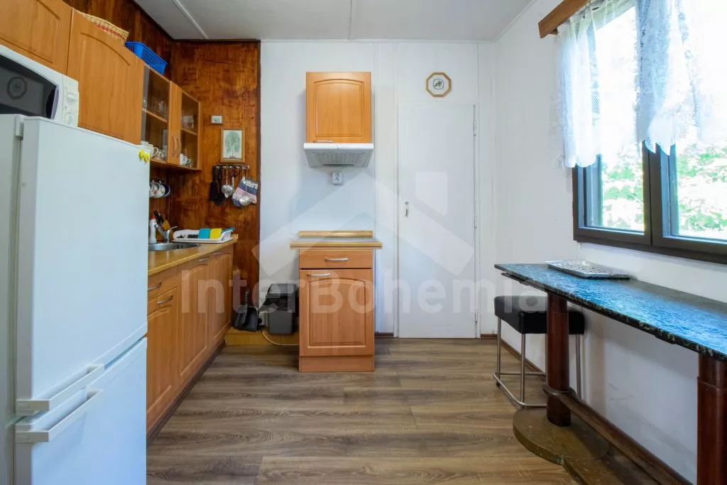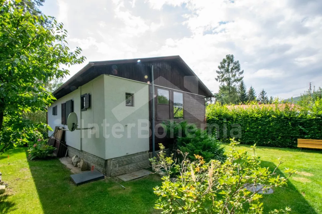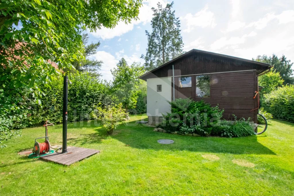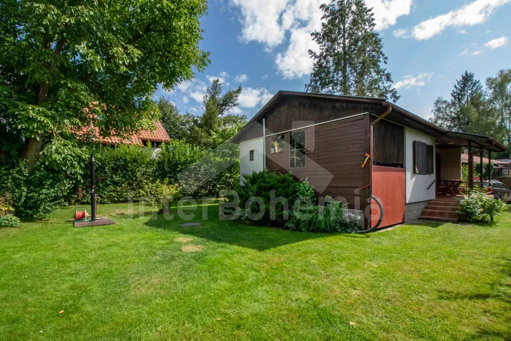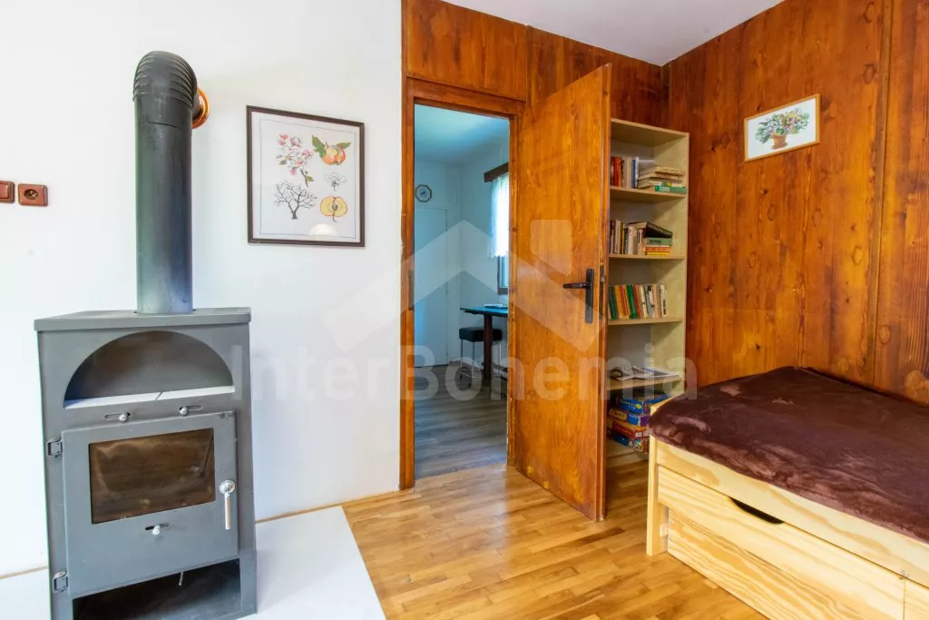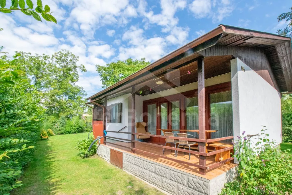 Volně stojící, přízemní, menší chata, příjemně a účelně zařízená. Vstup přes zastřešenou pergolu, obývací pokoj se sedací soupravou (zároveň rozkládací gauč jako dvoulůžko), dvě výsuvné válendy, krbová kamna. Kuchyňka s lednicí a mrazákem, elektrickým sporákem, mikrovlnnou troubou s grilem, varnou konvicí a stolem pro 3 osoby. Koupelna se sprchou, umyvadlem a WC. Ložnice s dvoulůžkem. K dispozici TV se satelitním příjmem (podpora přehrávání filmů z usb). Zahrada je částečně oplocená živým plotem, k dispozici je zahradní nábytek, solární sprcha, přenosný gril a ohniště. Vlastní parkování na pozemku pro dvě auta.