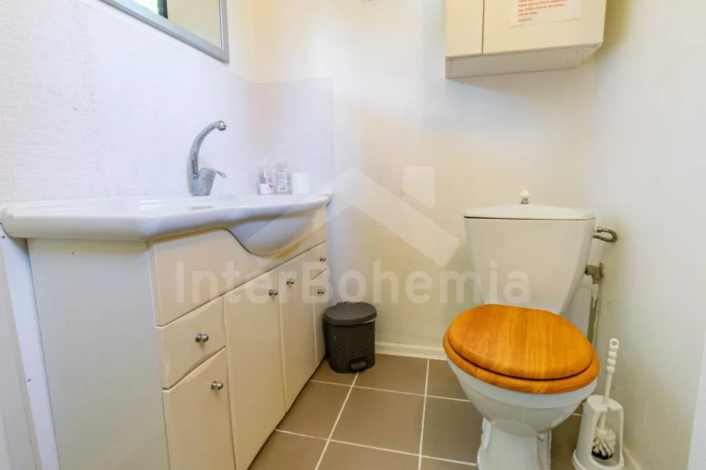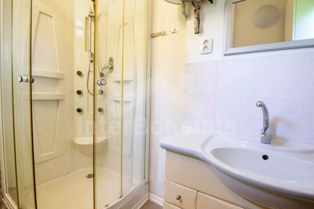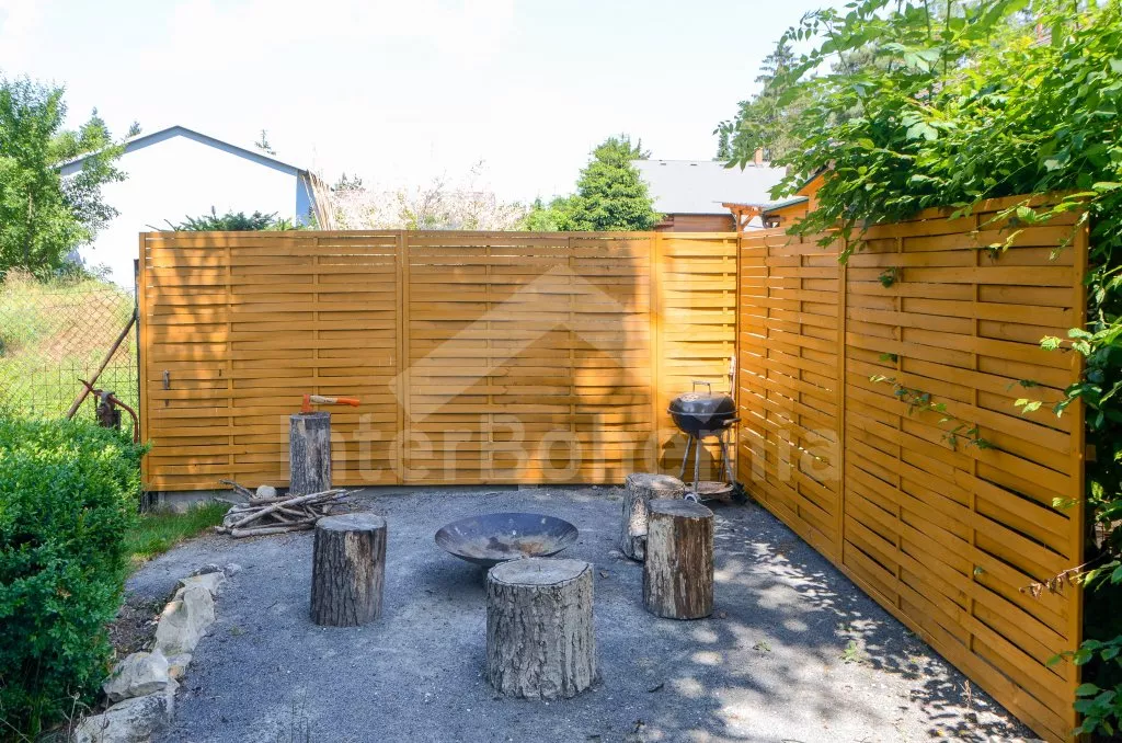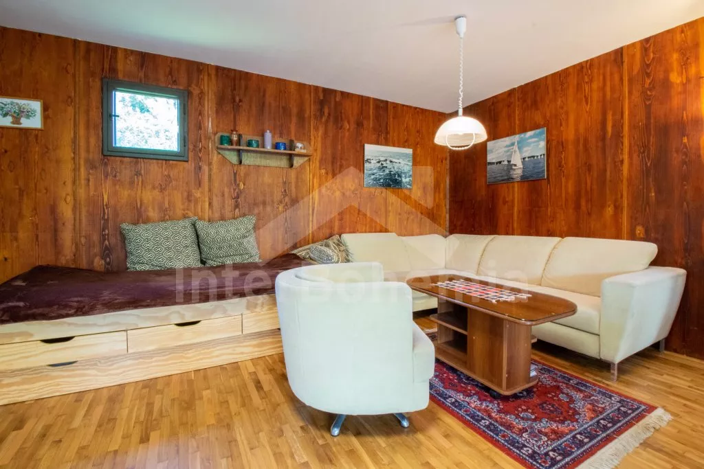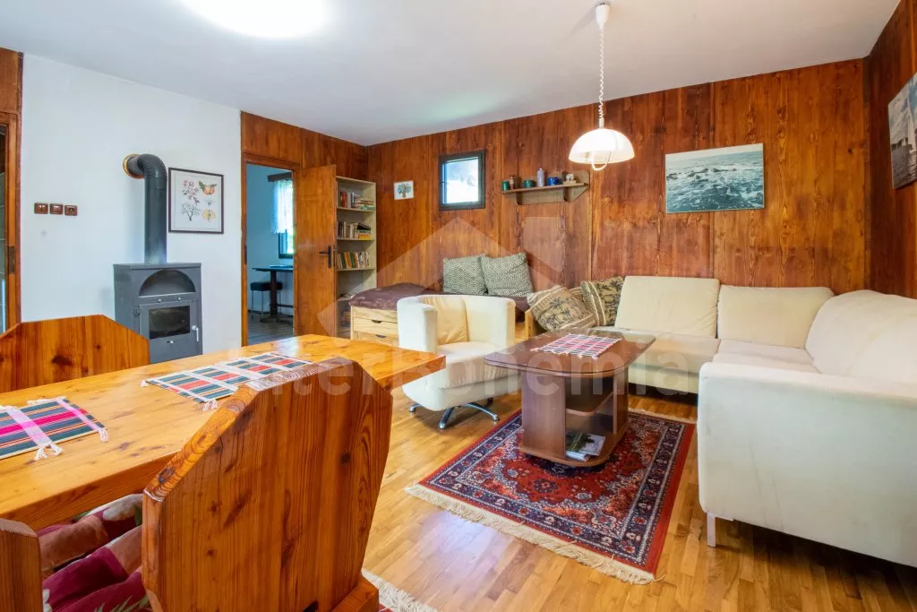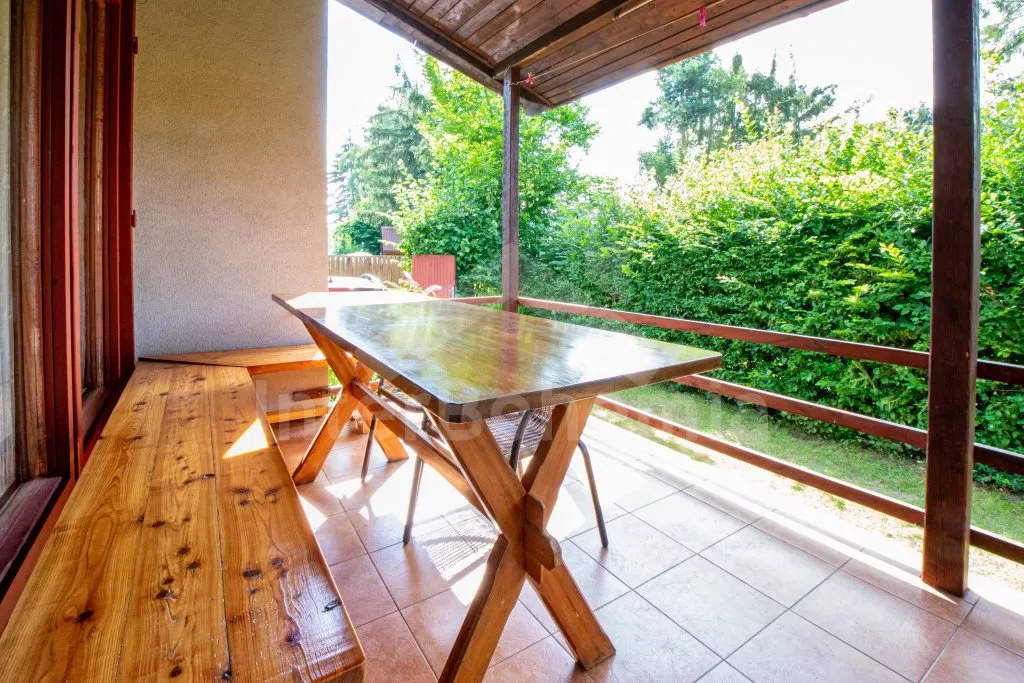 Volně stojící, přízemní, menší chata, příjemně a účelně zařízená. Vstup přes zastřešenou pergolu, obývací pokoj se sedací soupravou (zároveň rozkládací gauč jako dvoulůžko), dvě výsuvné válendy, krbová kamna. Kuchyňka s lednicí a mrazákem, elektrickým sporákem, mikrovlnnou troubou s grilem, varnou konvicí a stolem pro 3 osoby. Koupelna se sprchou, umyvadlem a WC. Ložnice s dvoulůžkem. K dispozici TV se satelitním příjmem (podpora přehrávání filmů z usb). Zahrada je částečně oplocená živým plotem, k dispozici je zahradní nábytek, solární sprcha, přenosný gril a ohniště. Vlastní parkování na pozemku pro dvě auta.