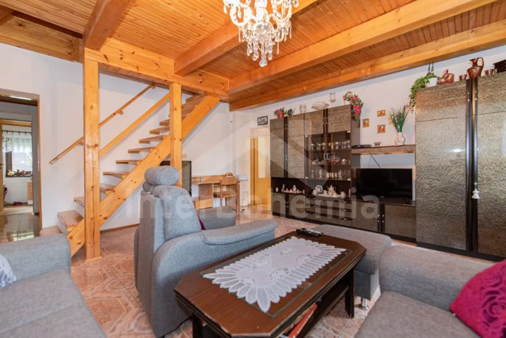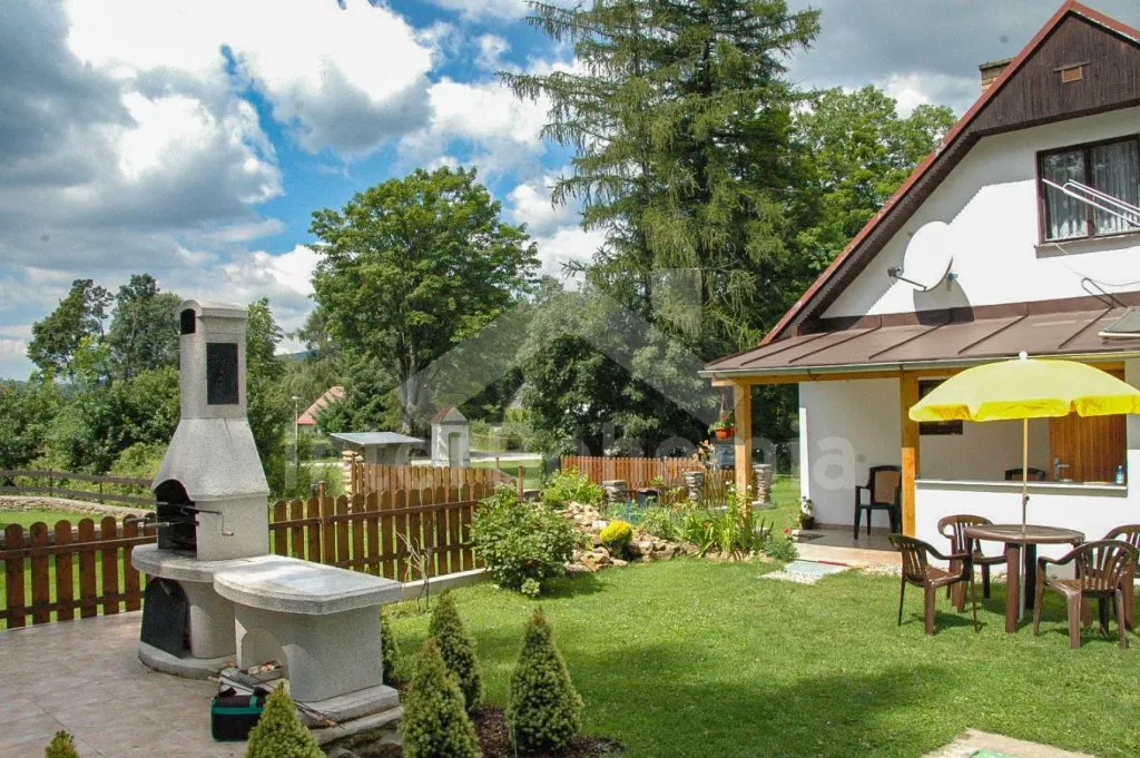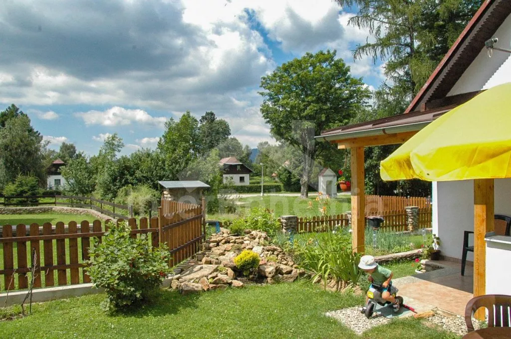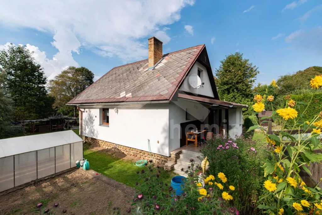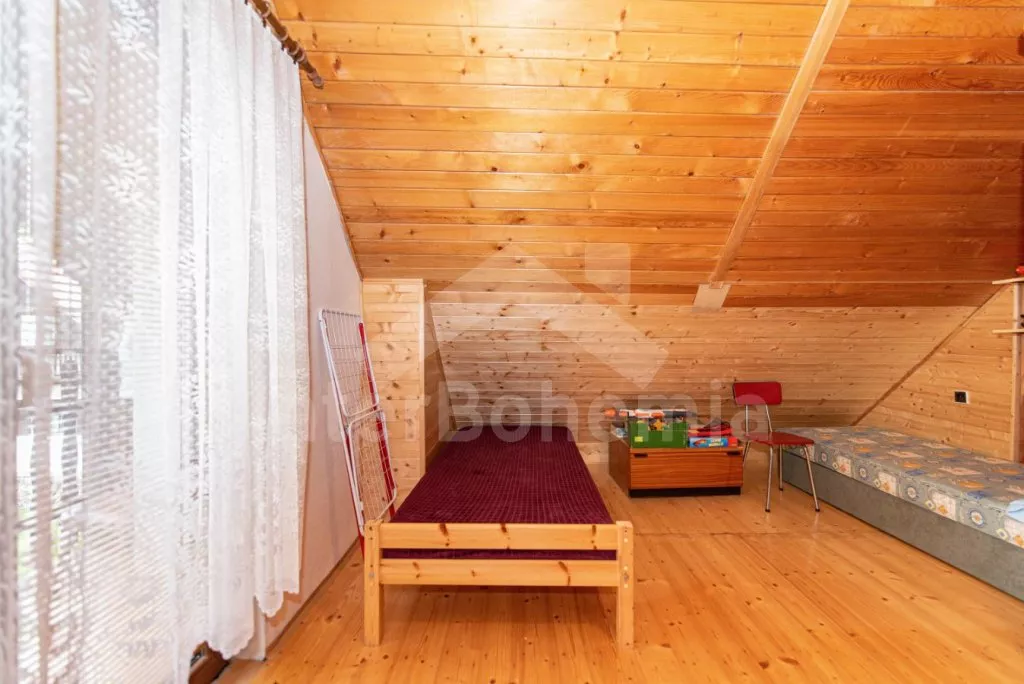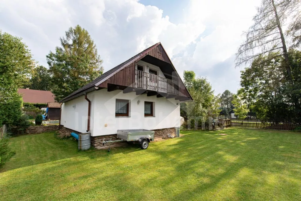 Volně stojící chata z roku 1990 k samostatnému obývání. Vchod, chodba, obývací pokoj se sedací soupravou, televize se satelitním příjmem. Kuchyně s jídelním stolem, dále je zde elektrický sporák s keramickou deskou, trouba, mikrovlnná trouba, lednice s mrazákem, kávovar a varná konvice. Koupelna s vanou, WC zvlášť. Nahoře je ložnice s dvoulůžkem. V druhé ložnici jsou tři samostatná lůžka a krytý balkon. Objekt je vytápěn elektrickými přímotopy. Zahrada je oplocená, k dispozici pergola s dřevěným zahradním nábytkem, slunečníkem a zahradní gril. Zapuštěný bazén 7 x 3 x 1,3 m s filtrací. Vlastní parkoviště pro 2 osobní automobily.