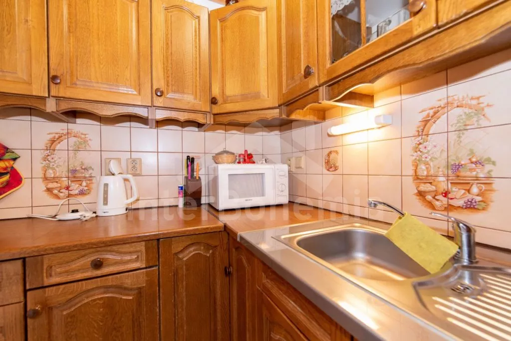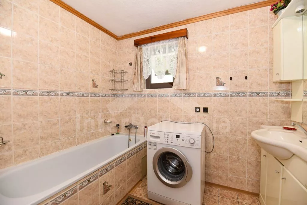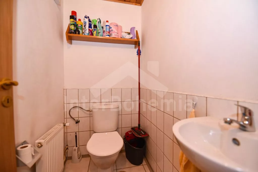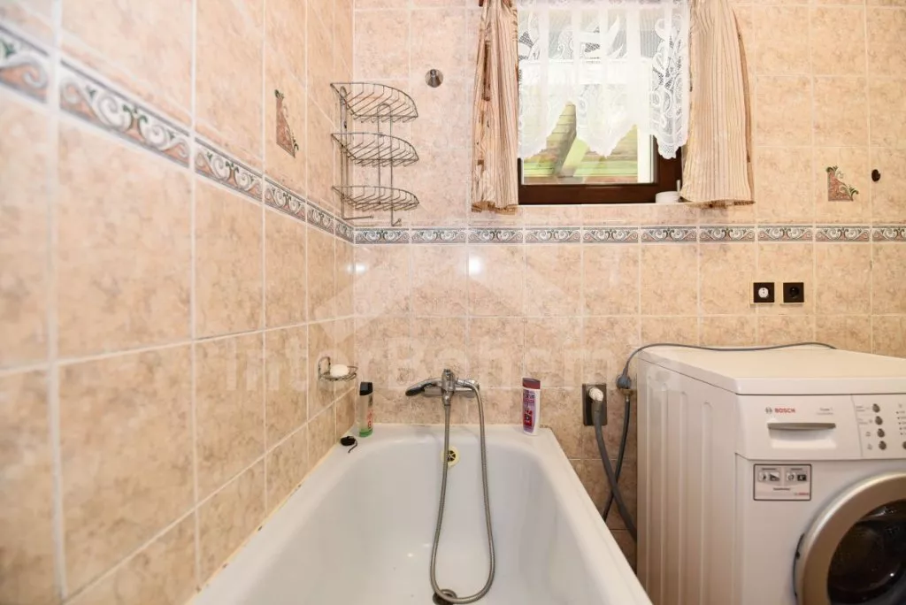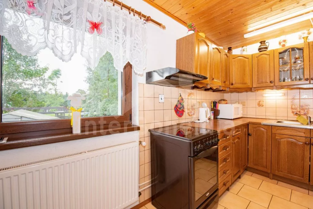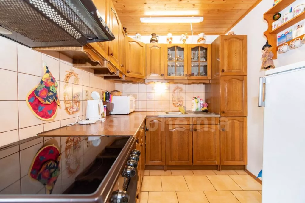 Volně stojící chata z roku 1990 k samostatnému obývání. Vchod, chodba, obývací pokoj se sedací soupravou, televize se satelitním příjmem. Kuchyně s jídelním stolem, dále je zde elektrický sporák s keramickou deskou, trouba, mikrovlnná trouba, lednice s mrazákem, kávovar a varná konvice. Koupelna s vanou, WC zvlášť. Nahoře je ložnice s dvoulůžkem. V druhé ložnici jsou tři samostatná lůžka a krytý balkon. Objekt je vytápěn elektrickými přímotopy. Zahrada je oplocená, k dispozici pergola s dřevěným zahradním nábytkem, slunečníkem a zahradní gril. Zapuštěný bazén 7 x 3 x 1,3 m s filtrací. Vlastní parkoviště pro 2 osobní automobily.