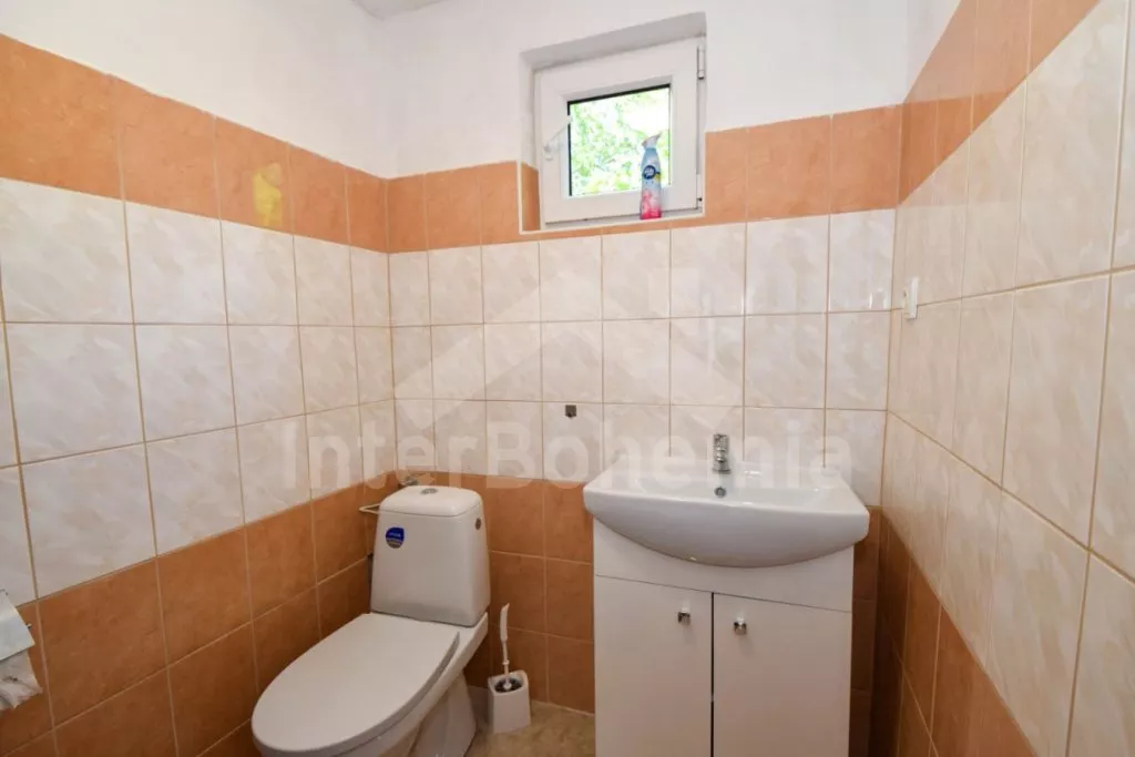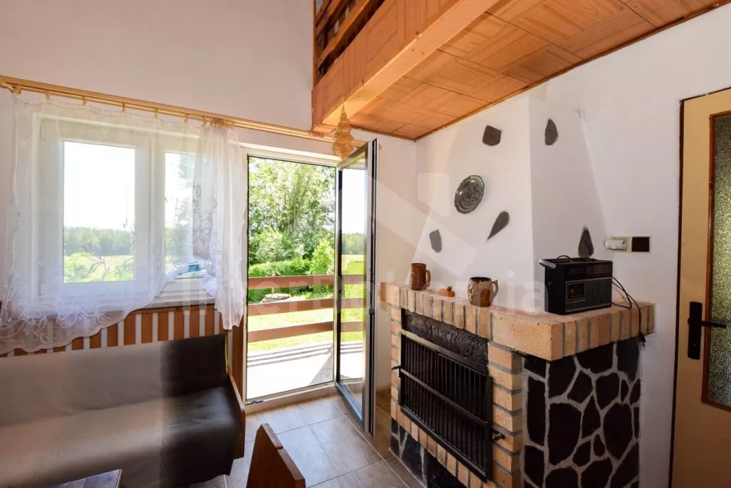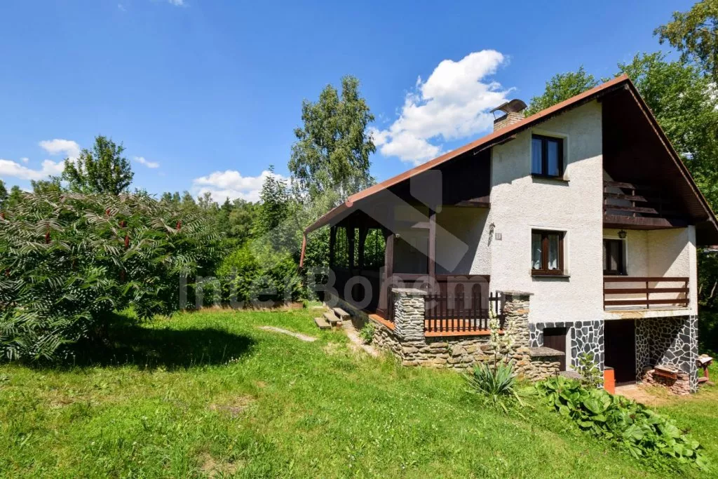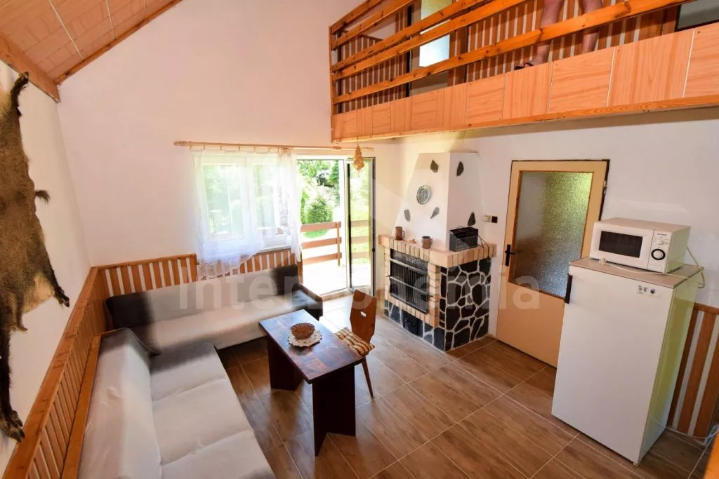 Volně stojící chata s kompletně oplocenou zahradou. Vstup přes prostornou terasu, chodba, obývací pokoj se sedací soupravou, televizí se setoboxem, krbem, jídelním stolem a vstupem na balkon. Kuchyňský kout s plynovým sporákem, troubou, mikrovlnnou troubou, lednicí s integrovaným mrazákem, rychlovarnou konvicí a nádobím. Ložnice se dvěma jednolůžky. Koupelna se sprchovým koutem, umyvadlem a WC. V podkroví 2 ložnice – první s dvoulůžkem a druhá s dvoulůžkem a vstupem na balkon. Vytápění objektu krbem. Hosté mají k dispozici posezení na terase a kompletně oplocenou zahradu s kamenným krbem a ohništěm. Parkování před chatou pro 2 vozidla.