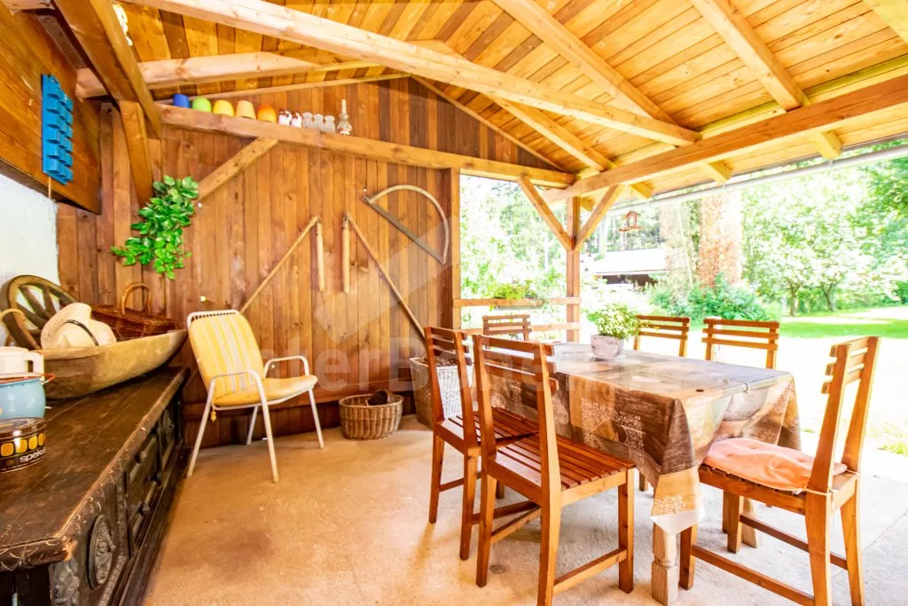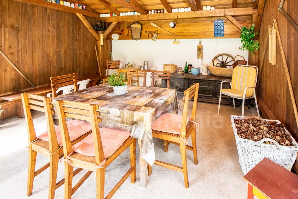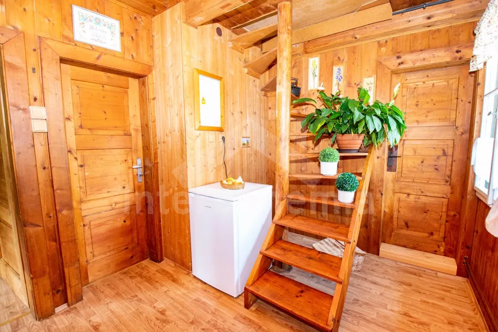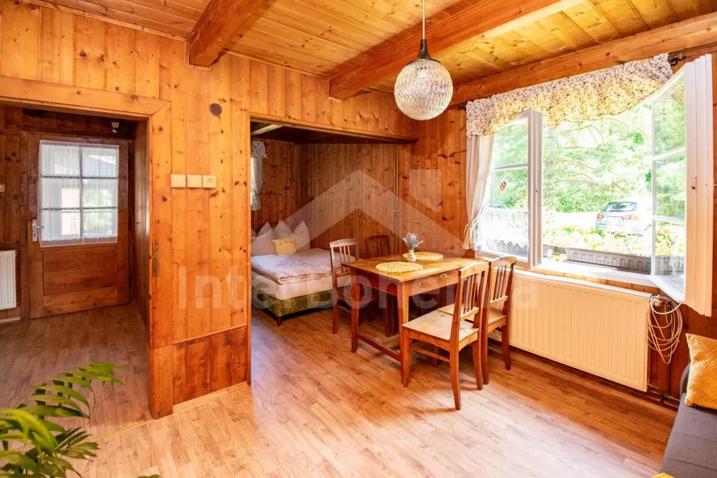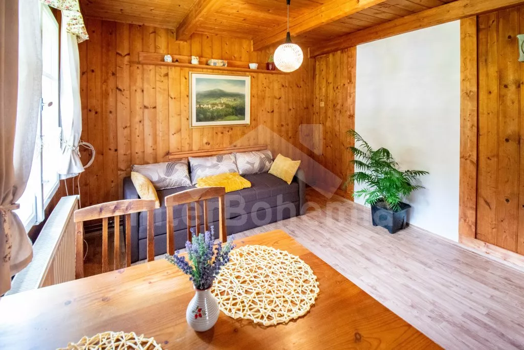 Volně stojící chata s pergolou po rekonstrukci v roce 2021. Obytná místnost s jídelním stolem pro 4 osoby, rozkládacím gaučem, LCD televizí a dvoulůžkem ve druhé části místnosti. Kuchyně vybavena el.keramickou deskou, mikrovlnnou troubou, topinkovačem, kávovarem, rychlovarnou konvicí a základním kuchyňským vybavením. Lednice s malým vestavěným mrazákem na chodbě. Ložnice s jídelním stolem pro 4 osoby, dvoulůžkem, a jednolůžkem s možností rozložení pro další osobu. Koupelna s vanou, umyvadlem a WC. Elektrické vytápění objektu. Prostorná částečně oplocená zahrada s pergolou a posezením pro 6 osob, dětskou houpačkou, pískovištěm a ohništěm. Možnost úschovy jízdních kol v dílně. Parkování na pozemku pro 3 automobily.