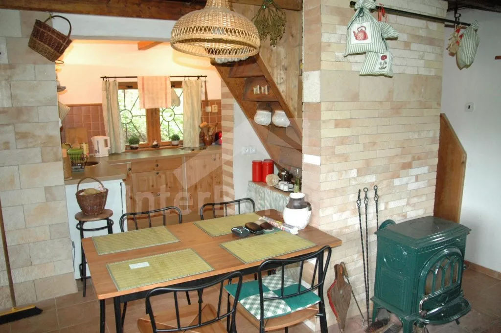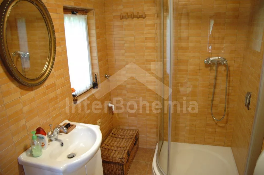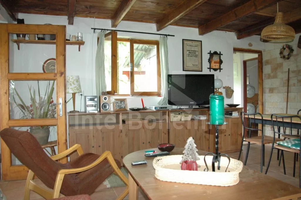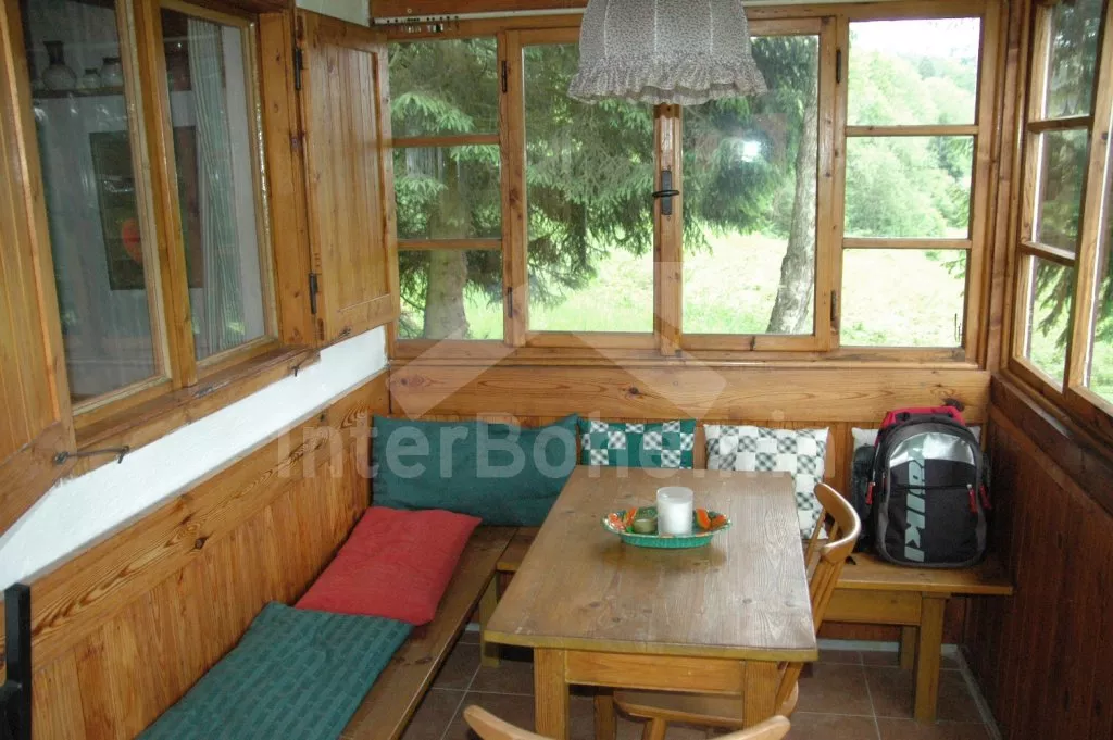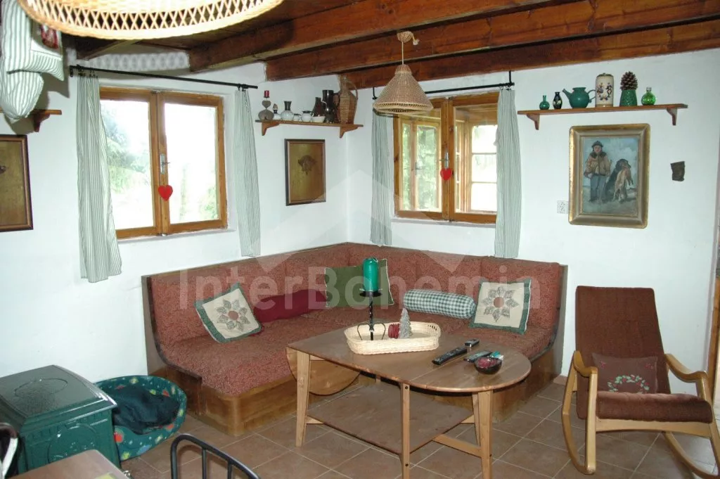 Volně stojící chata, jejíž přízemí bylo v roce 2009 vkusně a hezky zrenovováno. Vstup, chodba, obývací pokoj se sedací soupravou, jídelním stolem, krbovými kamny, televizí se satelitním příjmem a DVD. Obývací pokoj je propojen s kuchyní, která je vybavena dvěma keramickými varnými plotýnkami, lednicí, varnou konvicí, mikrovlnnou troubou a myčkou na nádobí. Z obývacího pokoje je přístup na útulnou, prosklenou verandu se stolem a lavicemi. Koupelna se sprchou a toaletou. Po příkrém schodišti s poklopem se dostanete do podkroví, kde se nachází dvě ložnice. První ložnice se třemi samostatnými lůžky a vstupem do druhé ložnice se dvěma samostatnými lůžky. Vytápění krbovými kamny. Chata stojí na neoploceném pozemku, k dispozici je zahradní nábytek, zahradní gril a ohniště. Parkování na vlastním parkovišti nebo na cestě nad chatou.