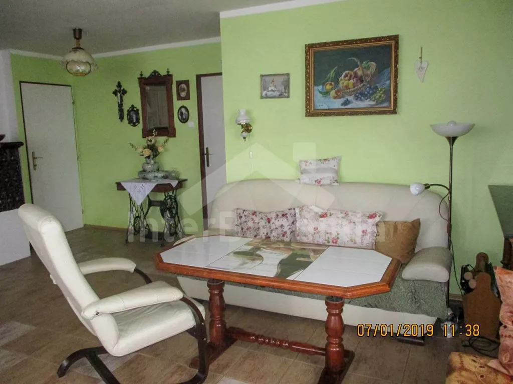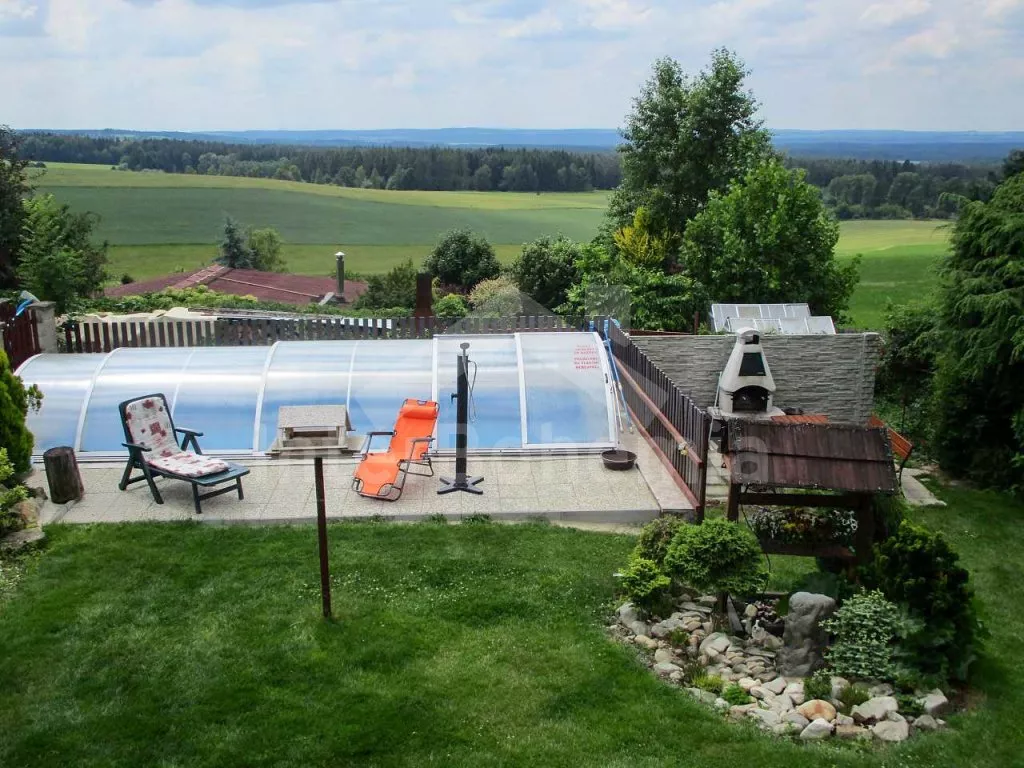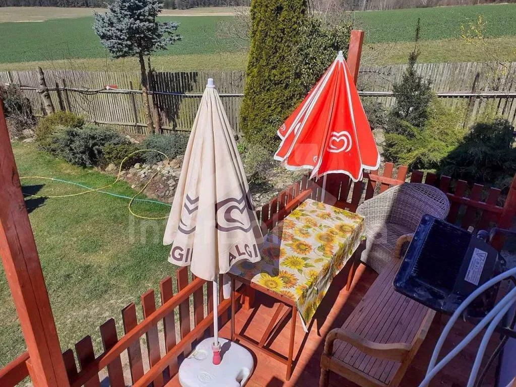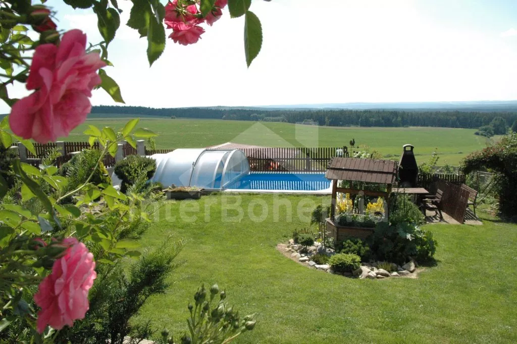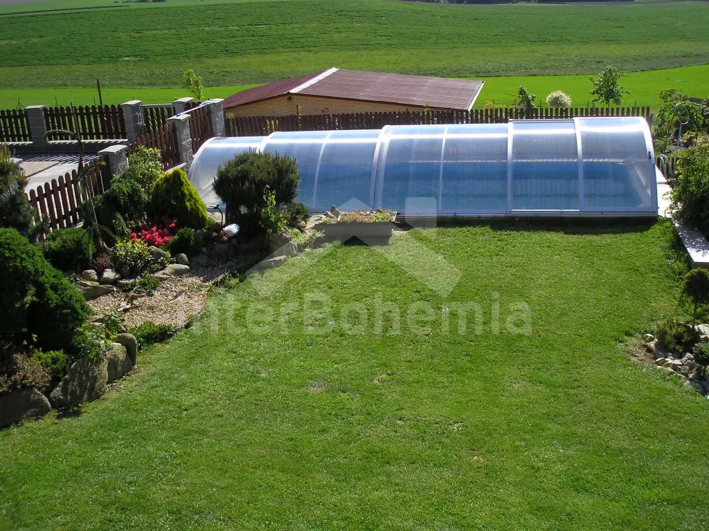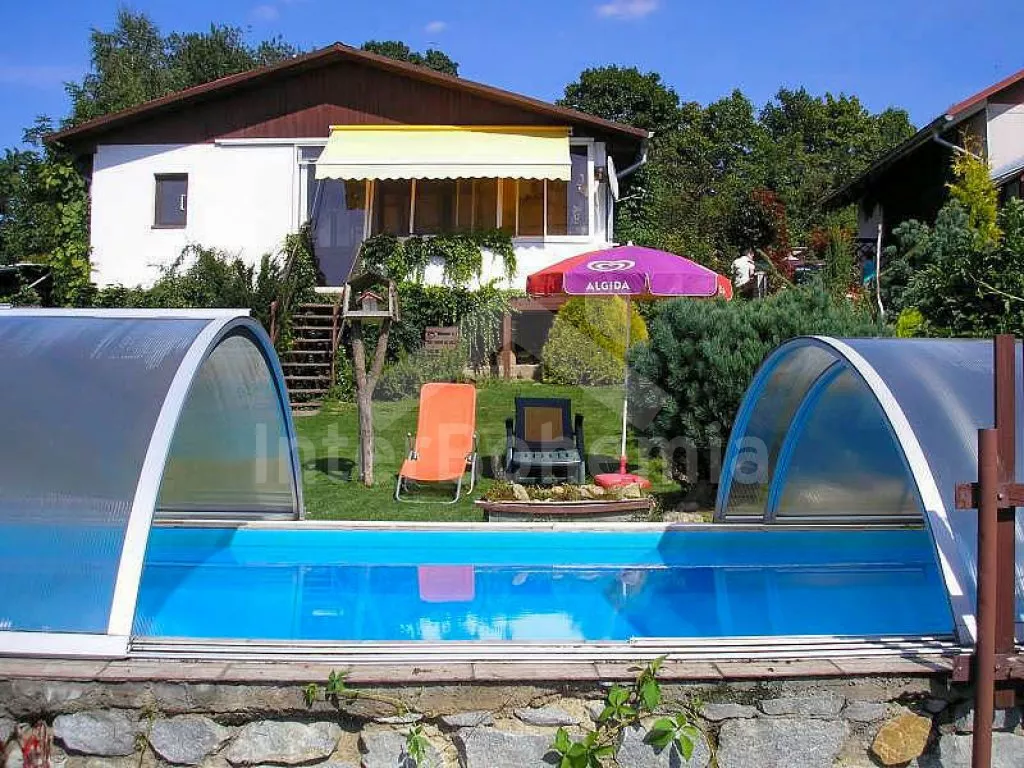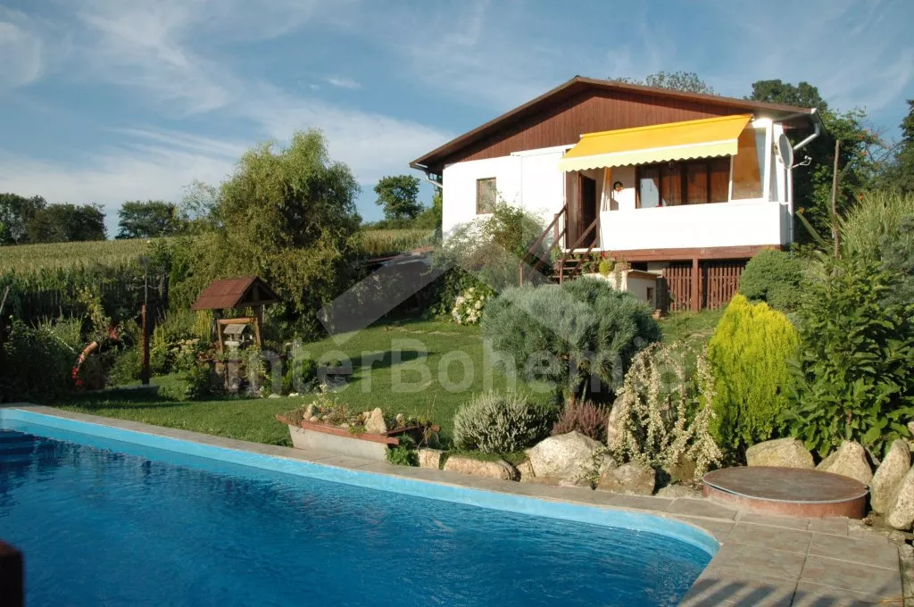 Volně stojící rekreační domek, v roce 2000 zrenovovaný, velmi hezky, pohodlně a útulně zařízený. Všechny místnosti v jedné úrovni. Vchod přes zastřešenou prosklenou terasu, malá hala, koupelna se sprchou a toaletou. Prostorný obývací pokoj se sedací soupravou, jídelním stolem a televizí se satelitním příjmem. Otevřená kuchyně s elektrickým sporákem, lednicí, mikrovlnnou troubou, kávovarem a rychlovarnou konvicí. Ložnice s dvojlůžkem a další dvě ložnice – každá se dvěma samostatnými lůžky. Elektrické topení. Oplocená zahrada se zapuštěným a zastřešeným bazénem 7 x 3 x 1,5 m s filtrací - příjemné koupání v teplé vodě i za nepříznivého počasí. K dispozici je zahradní nábytek, slunečník a zahradní gril. Parkování v zahradě.