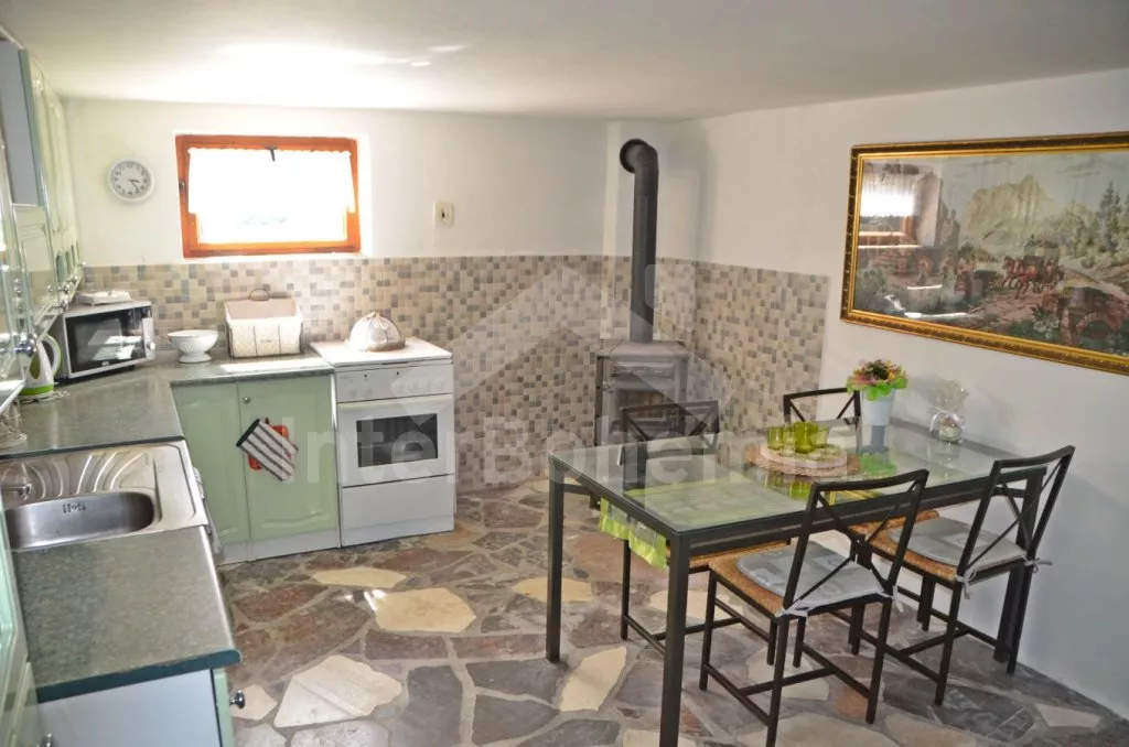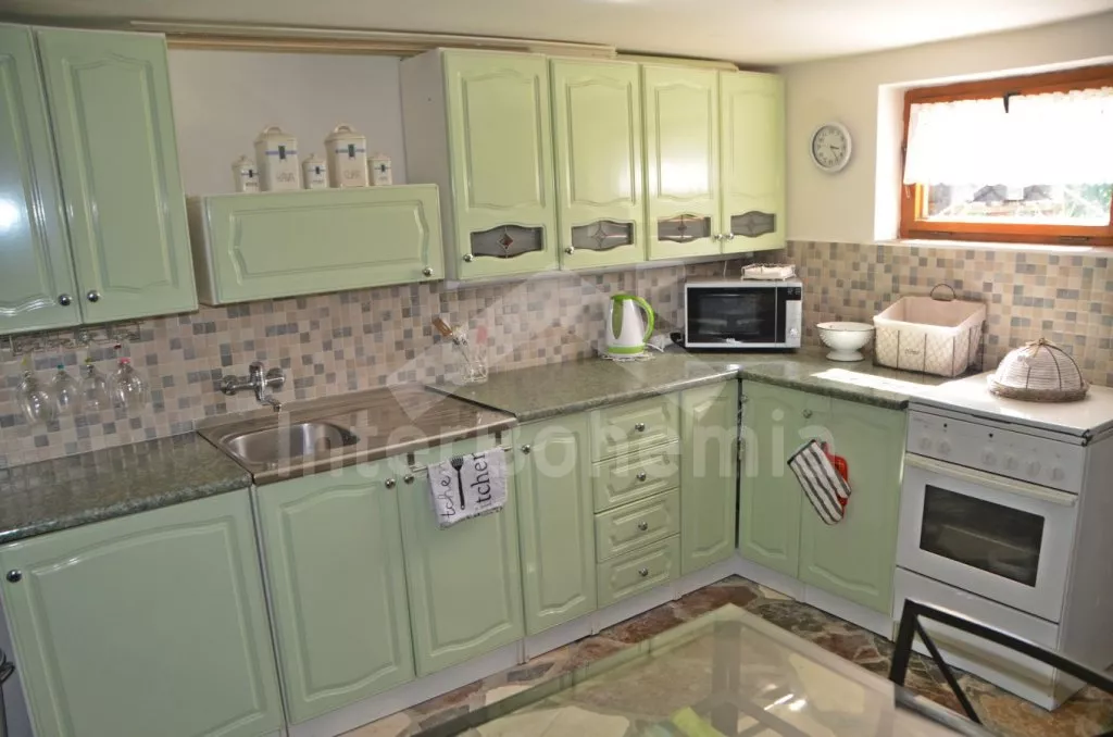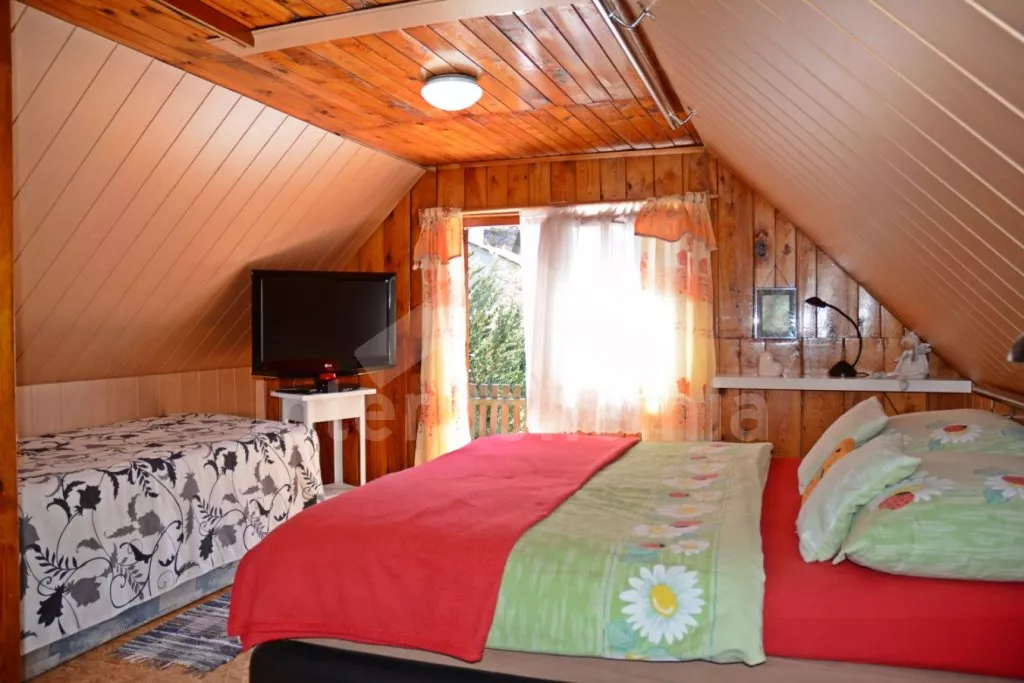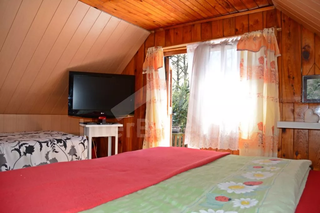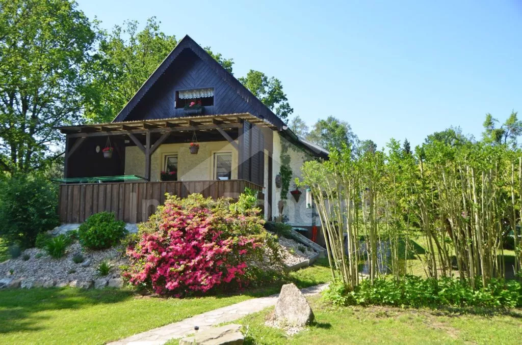 Velmi komfortně zařízená třípodlažní chata, částečně zrenovovaná v roce 2018. Vstup, veranda, obývací pokoj se sedací soupravou, konferenčním stolkem, LCD televizí a kamny na dřevo. Dále k dispozici druhý menší kuchyňský kout vč. pračky, ze kterého je vstup na krytou terasu s posezením. V suterénu objektu se nachází samostatná kuchyně s jídelním stolem pro 4 osoby. Kuchyňská linka se sporákem (elektrickým), troubou, mikrovlnnou troubou, lednicí s mrazákem, rychlovarnou konvicí a nádobím. V podkroví ložnice s dvoulůžkem a dvěma jednolůžky. Z ložnice je vstup na menší prosluněnou terasu s lehátkem, odkud je krásný výhled na okolí. Koupelna se sprchovým koutem, umyvadlem a wc. Vytápění objektu kamny, která prohřejí celou chatu. Voda pouze užitková. Hosté mají k dispozici krytou terasu s posezením, dále v zahradě druhé posezení s přenosným grilem, pro děti pak pískoviště a houpačka. Parkování na pozemku pro 2 osobní automobily.