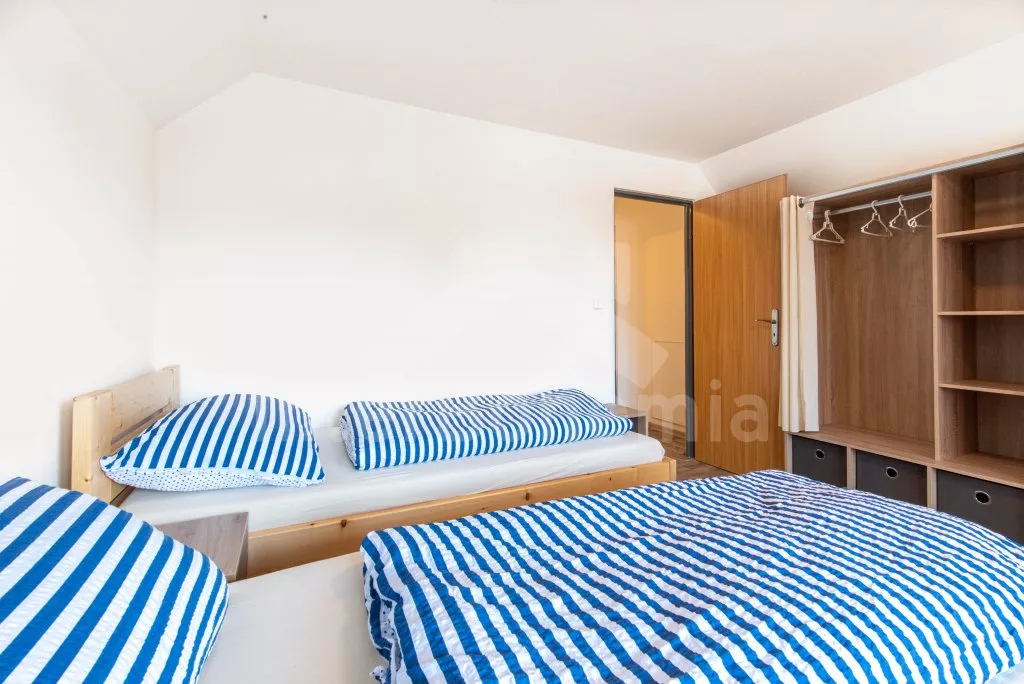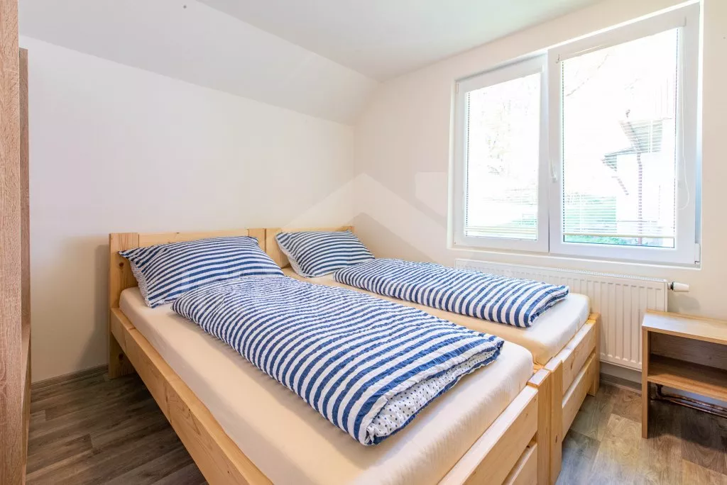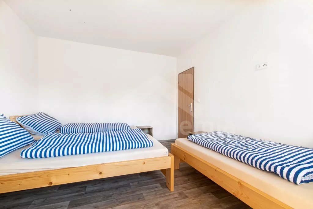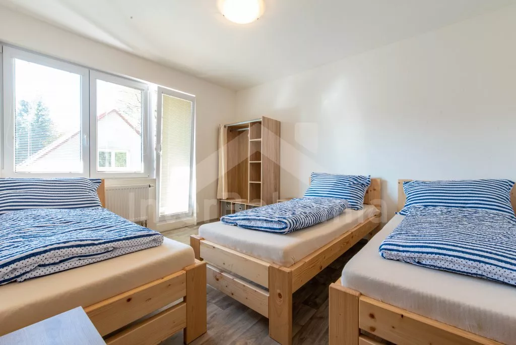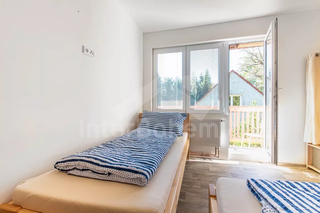 Chata se nachází v rekreačním areálu, kde najdete vyžití jak pro děti, tak pro dospělé. V areálu lze za poplatek využít vnitřní bazén, saunu, hernu s kulečníkem, stolním fotbálkem a šipkami. Chata disponuje kuchyňkou s lednicí, dvouplotýnkovou indukční deskou, nádobím, rychlovarnou konvicí a stolkem. V patře celkem 4 Ložnice, každá s 3x jednolůžkem. K dispozici balkon se vstupem z ložnice. Koupelna s 2x sprchovým koutem a 2x umyvadlem. Samostatně 2x WC. Objekt je vytápěn elektrickým kotlem. Dále k dispozici pingpongové stoly, tartanové hřiště na volejbal a košíkovou. Parkování v areálu cca 150 m od objektu.