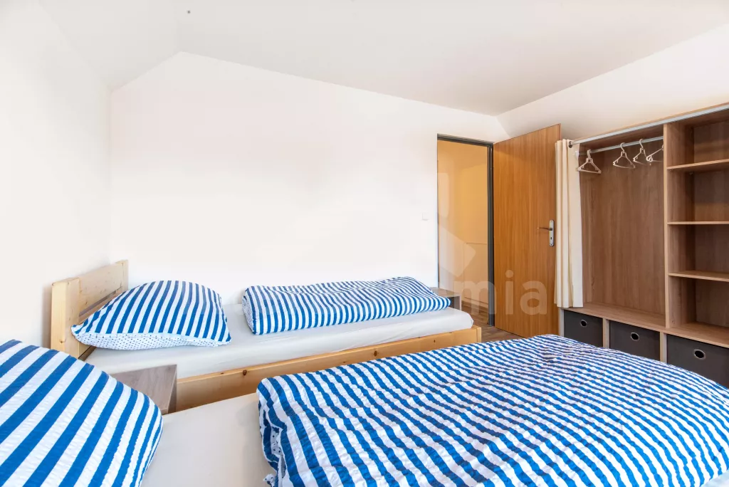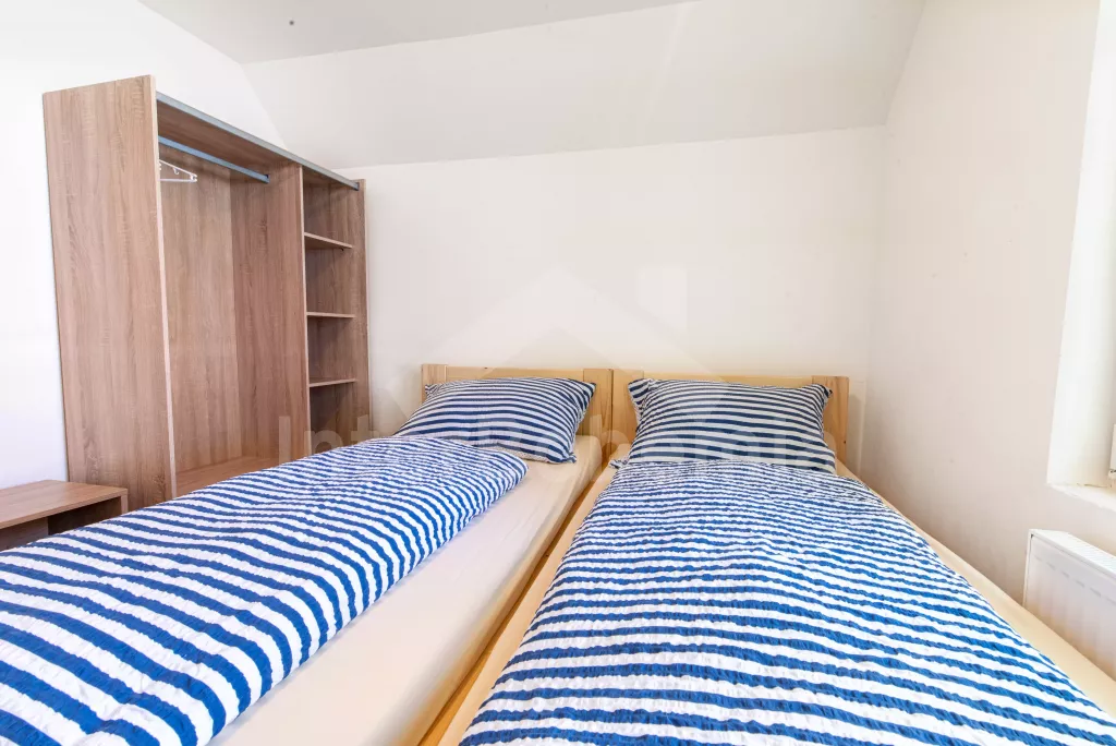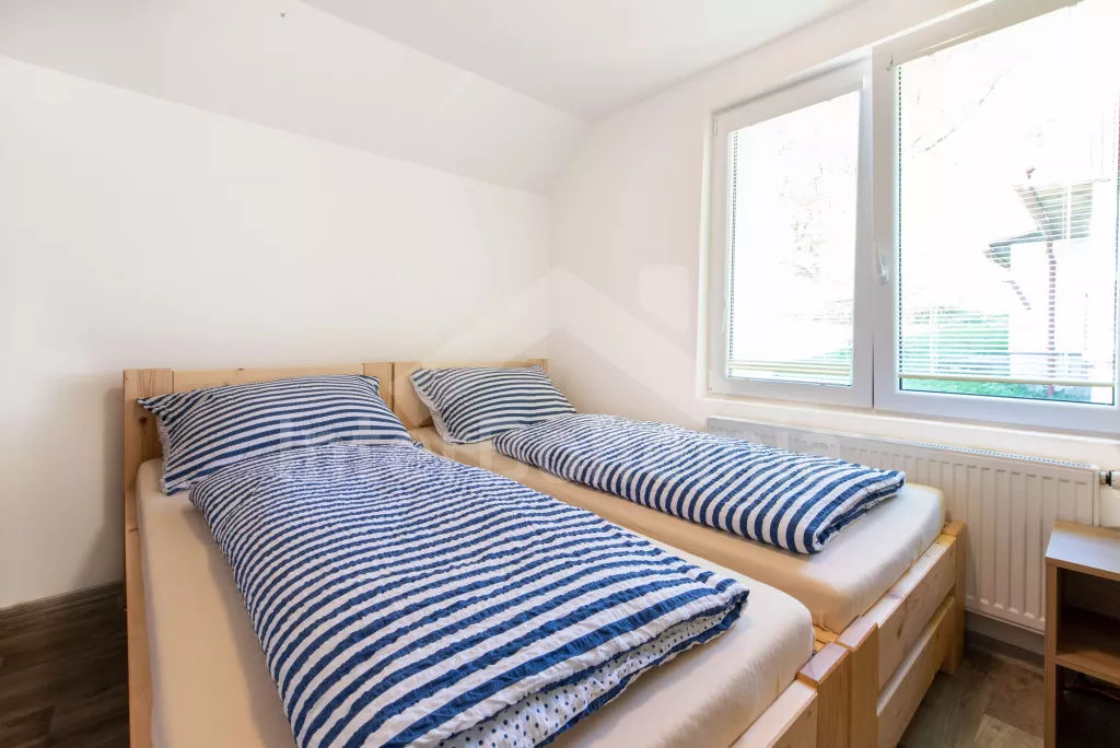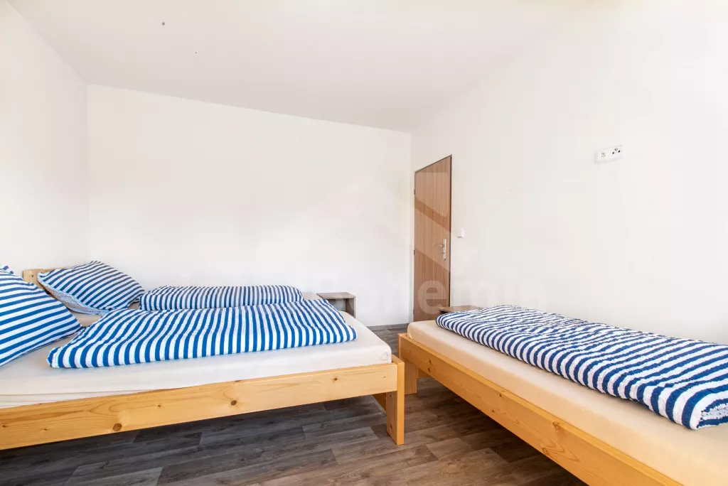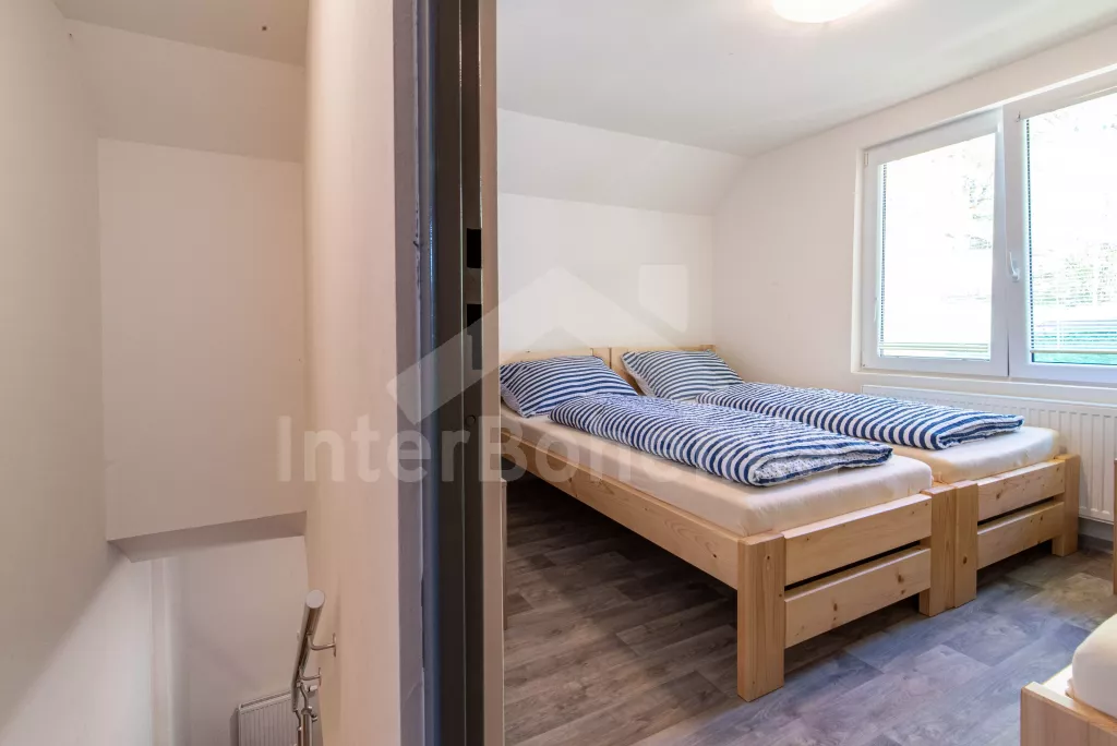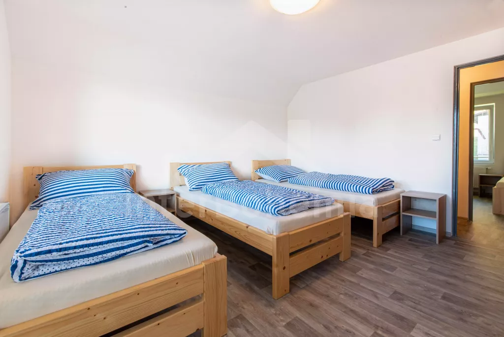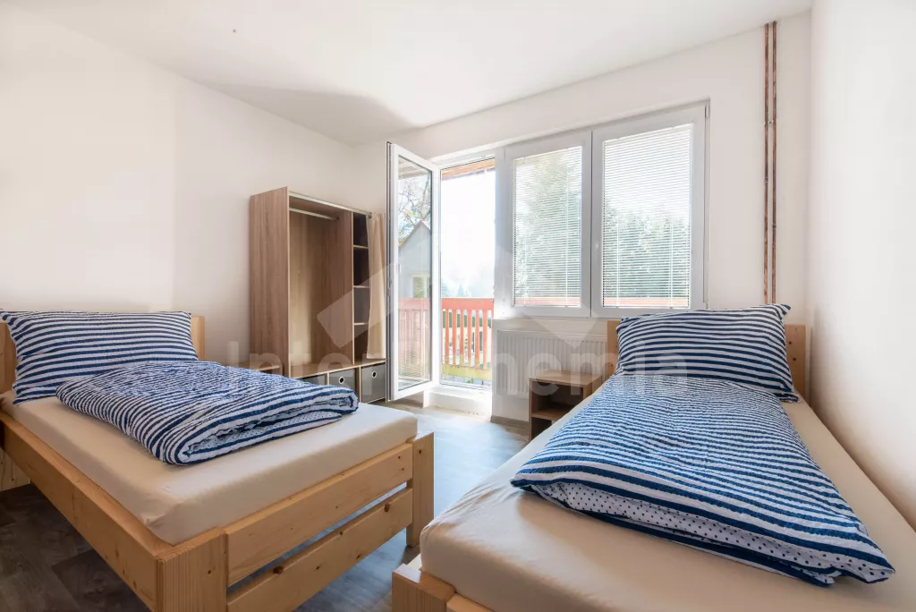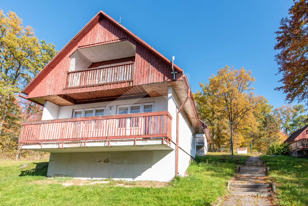 Chata se nachází v rekreačním areálu, kde najdete vyžití jak pro děti, tak pro dospělé. V areálu lze za poplatek využít vnitřní bazén, saunu, hernu s kulečníkem, stolním fotbálkem a šipkami. Celkem se zde nachází 5 ložnic. První ložnice v přízemí s 2x jednolůžkem. V patře 4 ložnice, každá s 3x jednolůžkem. K dispozici balkon s výhledem do okolní přírody. Koupelna s 2x sprchovým koutem a 2x umyvadlem. Samostatně 2x WC. Objekt je vytápěn elektrickým kotlem. Dále k dispozici pingpongové stoly, tartanové hřiště na volejbal a košíkovou. Parkování v areálu cca 150 m od objektu.