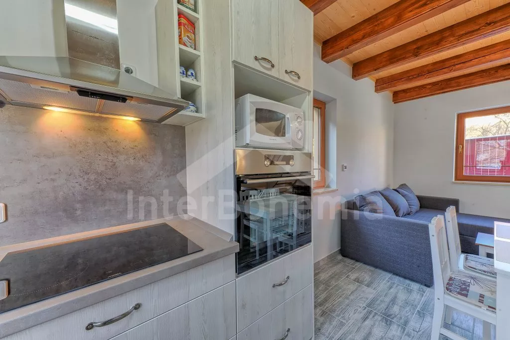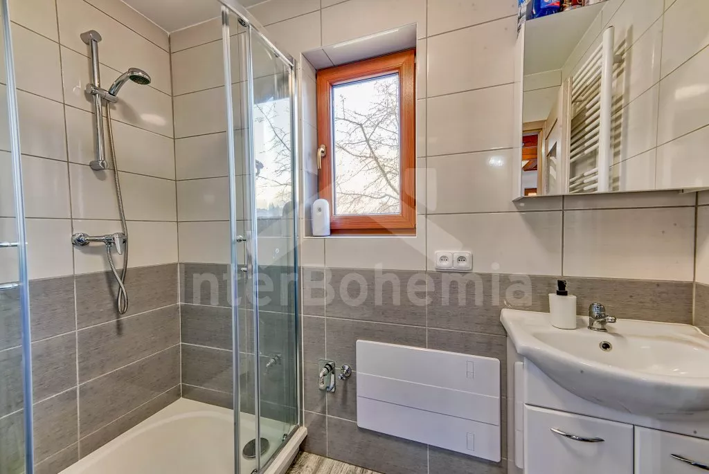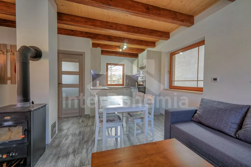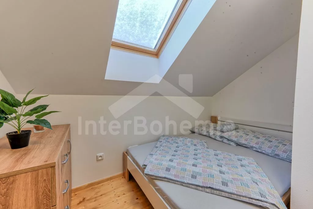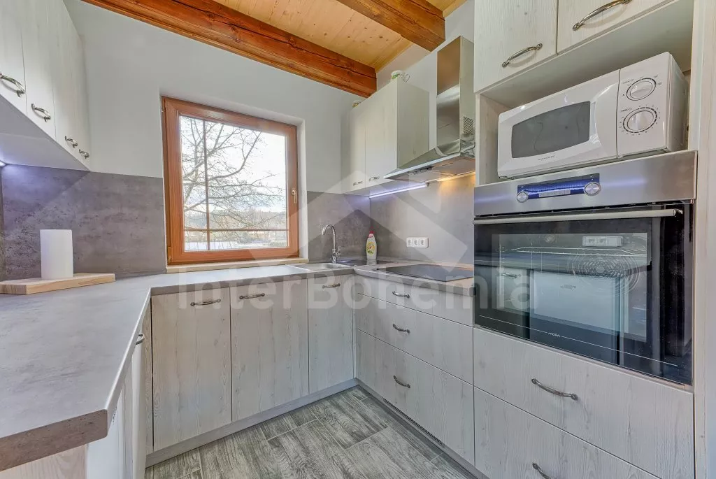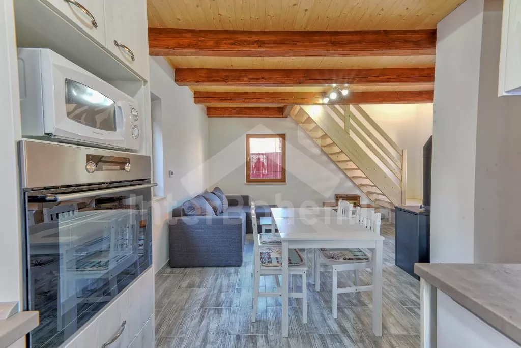 V roce 2022 nově postavená, moderně zařízená chata s bazénem a vlastní oplocenou zahradou. Vstup, hlavní obytná místnost s jídelním stolem pro 4 osoby, sedací soupravou, konferenčním stolkem, LCD televizí a kamny. Plně vybavená kuchyně se sklokeramickou varnou deskou, troubou, mikrovlnnou troubou, lednicí s vestavěným mrazákem, rychlovarnou konvicí a nádobím. Koupelna se sprchovým koutem, umyvadlem a WC. V podkroví se nacházejí 2 ložnice, první s dvoulůžkem, druhá s dvoulůžkem a jedním jednolůžkem. Vytápění chaty lokálně kamny. Hosté mají k dispozici oplocenou zahradu s posezením, přenosný gril a nadzemní bazén o průměru 3,66 m. Parkování u objektu pro 1-2 automobily.