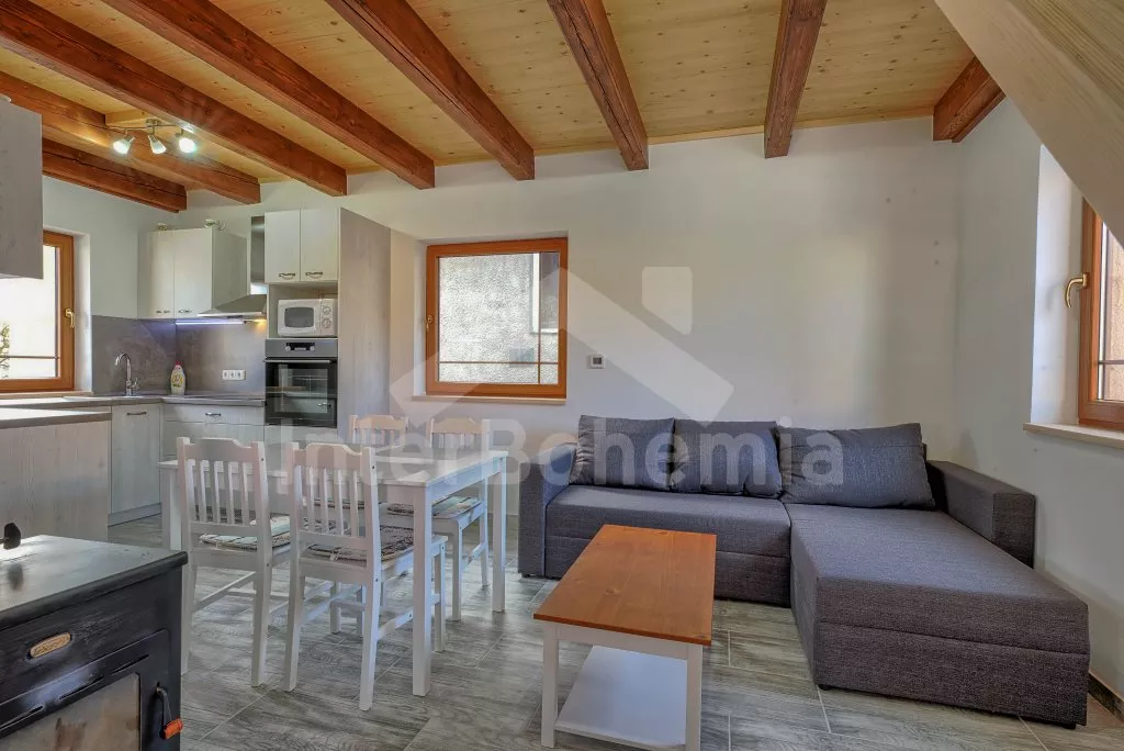 Domácí zvířata povolena (pouze malá rasa do 10 kg). WiFi připojení v ceně. Spotřeba elektřiny v ceně. Povlečení na místě k dispozici. Dřevo k dispozici. Vratná kauce 3 000 Kč.