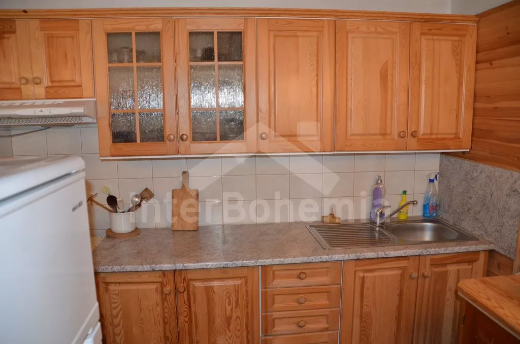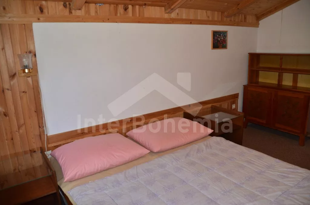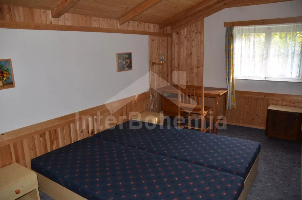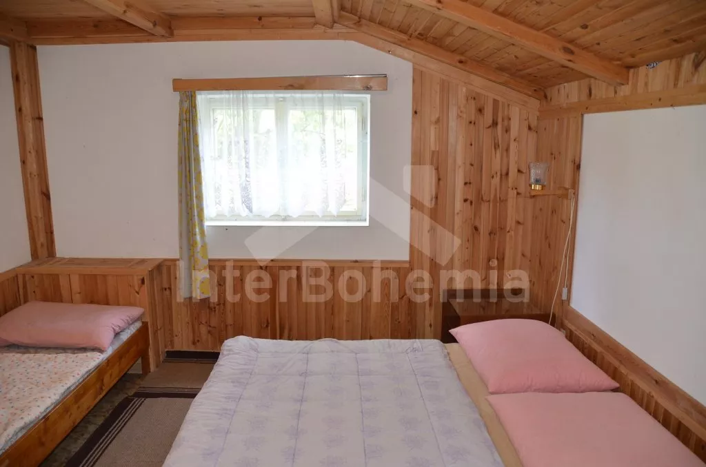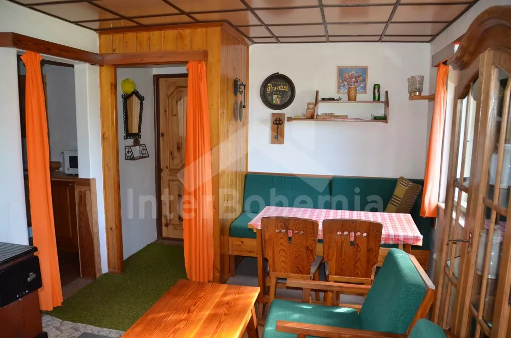 Volně stojící vkusně zařízená chata. Vstup po pár schodech na verandu s jídelním stolem pro 5 osob, obývací místnost s posezením, rozkládacím gaučem (množnost přistýlky), kamny na dřevo a TV se set-top-boxem. Kuchyně s elektrickou troubou s dvěma varnými plotýnkami a dalším elektrickým vařičem se dvěma varnými plotýnkami, lednicí s mrazákem, kávovarem, mikrovlnnou troubou a rádiem. Dvě ložnice s jedním dvojlůžkem a jedním samostatným lůžkem a jedna ložnice s jedním samostatným lůžkem. Koupelna se sprchovým koutem a umyvadlem a samostatnou toaletou. Možnost přitápění kamny na tuhá paliva v obývací místnosti. K dispozici je neoplocená zahrada s plastovým a dřevěným zahradním nábytkem, ohništěm a grilem. Parkování před objektem.
