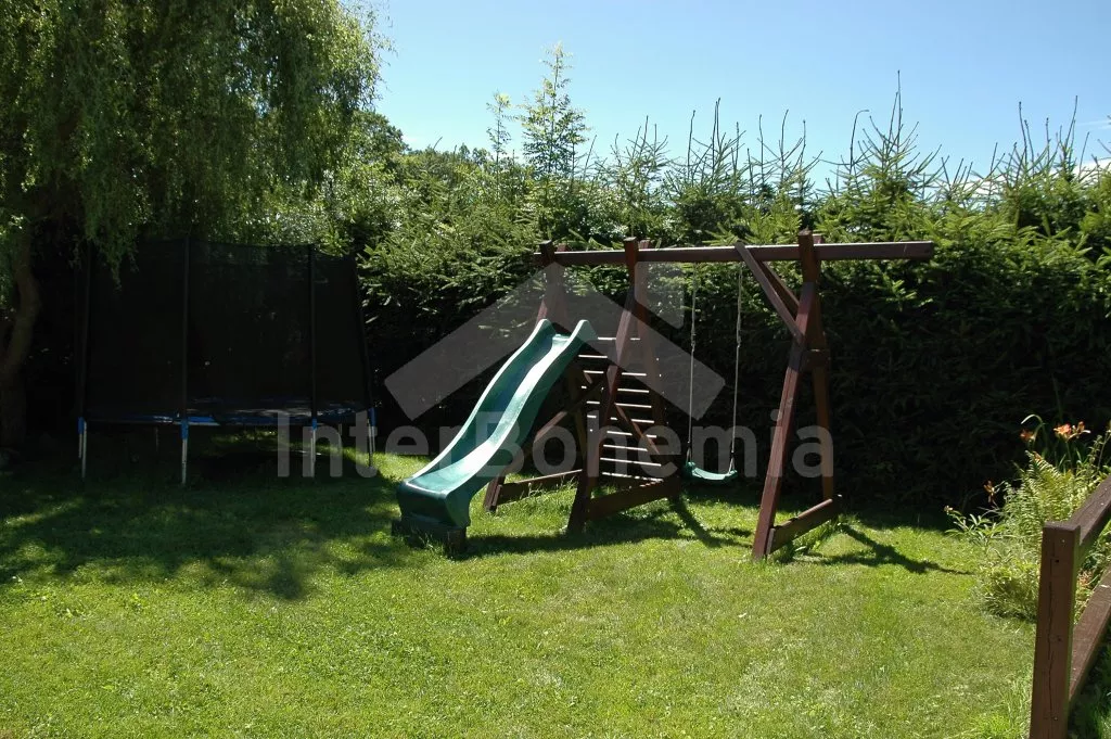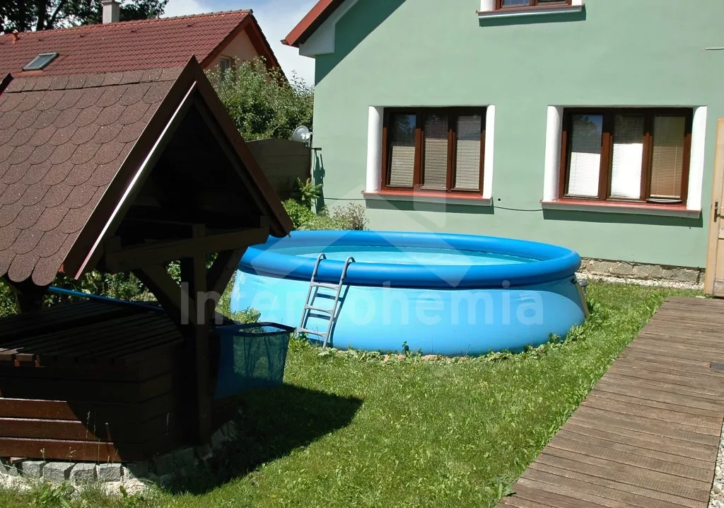Dům je vytápěn krbovými kamny s vložkou a centrálně. K dispozici je prostorný uzavřený dvůr, skýtající dostatečné soukromí, s pergolou s posezením a velkým grilem. K dispozici je také malá zahrádka s nadzemním bazénem s filtrací, trampolína, houpačka a prolézačka pro děti. Parkování před domem nebo ve dvoře a na pozemku.