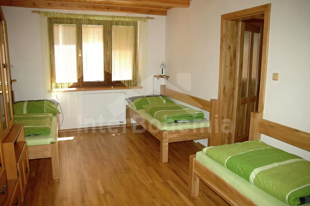 Dolní apartmán: vstup, hala / obývací pokoj s posezením a jídelním stolem pro 6 osob, krbovými kamny, TV se satelitem. Prostorná kuchyně s elektrickým sporákem s keramickou varnou deskou, chladničkou, mikrovlnnou troubou a varnou konvicí. Ložnice s jedním dvojlůžkem a druhá ložnice se třemi samostatnými lůžky. Koupelna se sprchovým koutem, umyvadlem, toaletou, pračkou a vstupem do zahrádky.