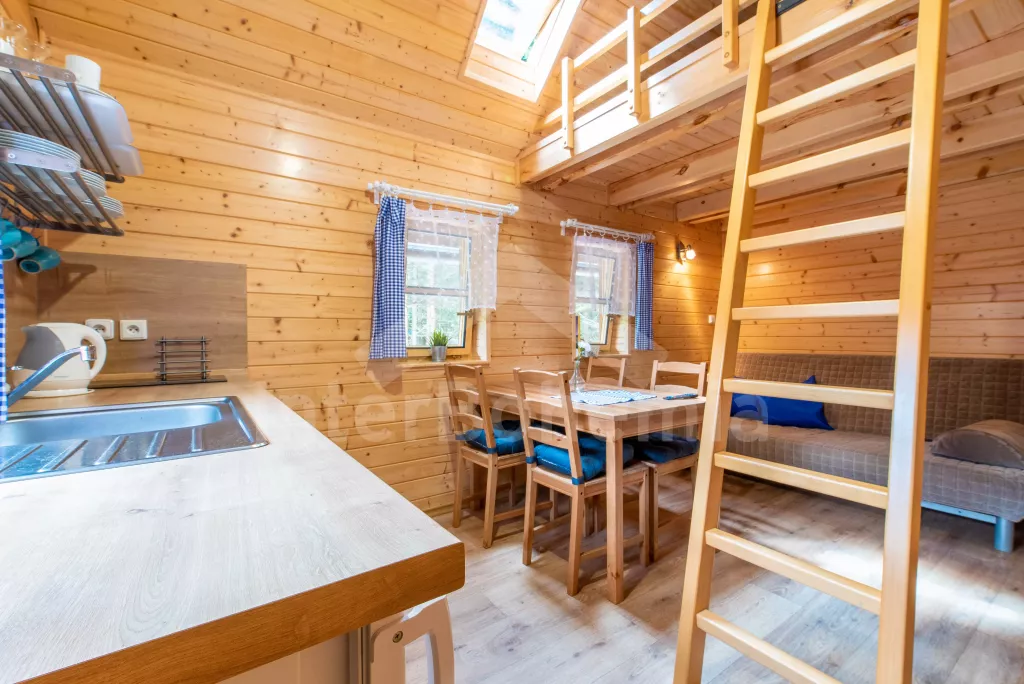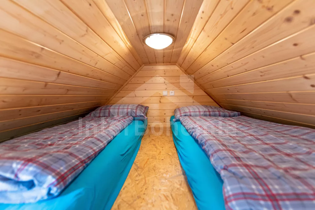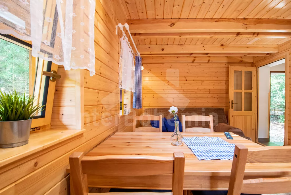 Nově postavená dřevěná chata, přímo u lesa a v blízkosti pláže Staňkovského rybníka. V přízemí pohovka (extra dvoulůžko), jídelní stůl, TV a kuchyňská linka s keramickou plotýnkou, kávovarem, varnou konvicí a lednicí. Koupelna se sprchovým koutem a umyvadlem. Samostatné WC. V podkrovním výklenku 2 postele. Hosté mají k dispozici zahradní posezení a gril. Parkování u objektu.