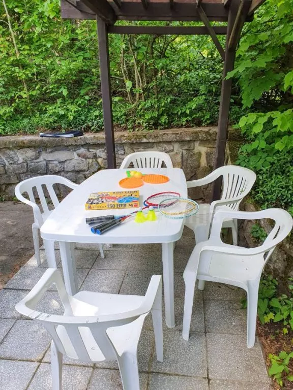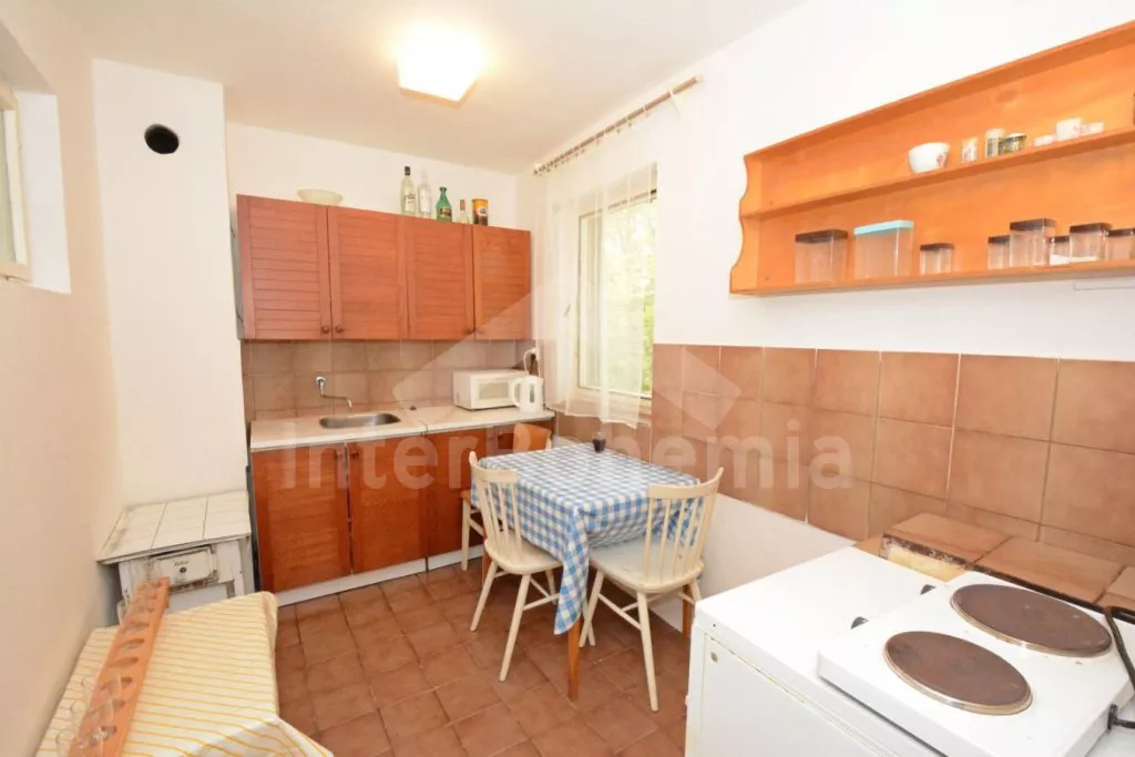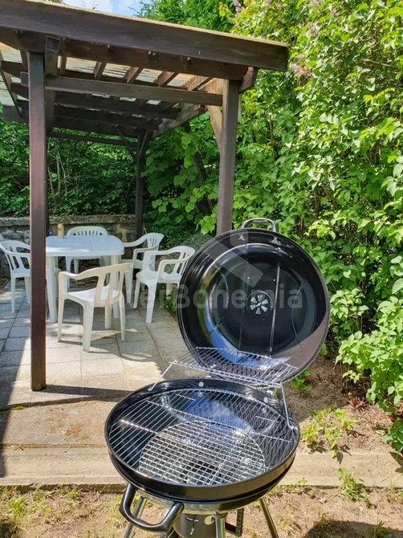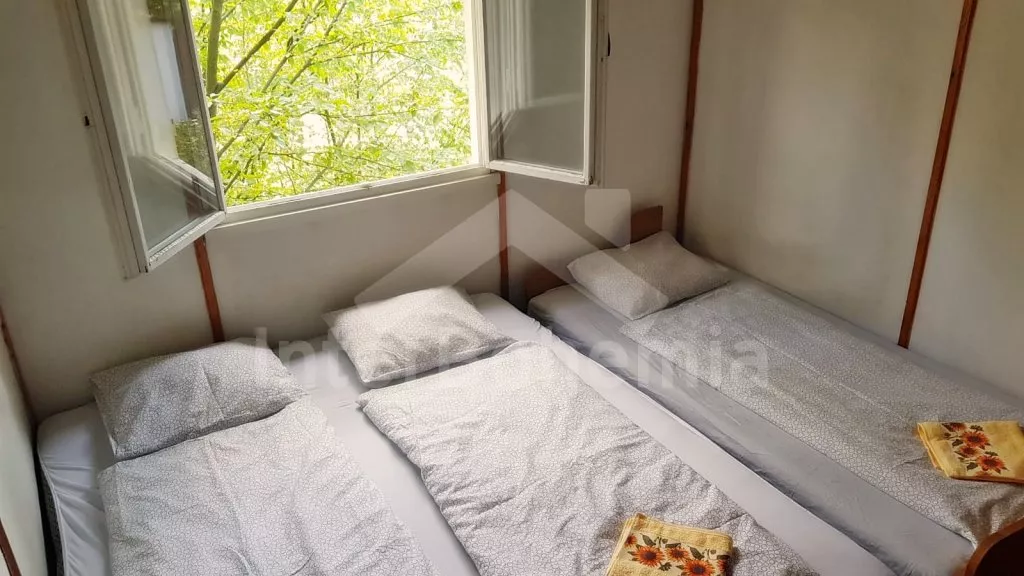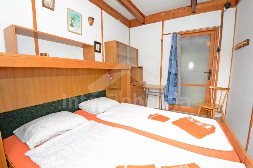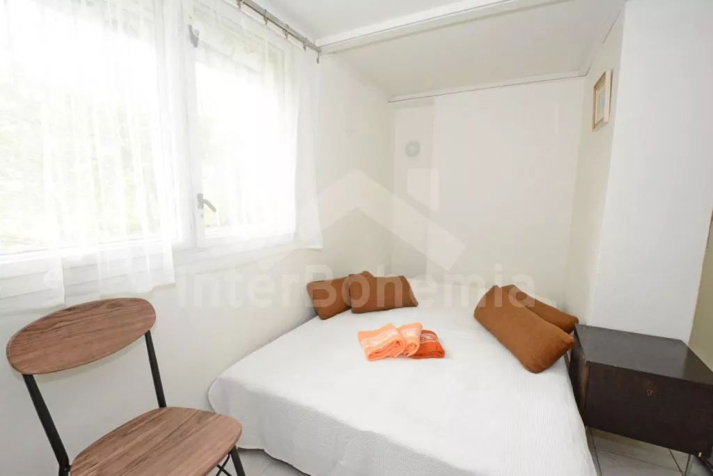 K horní části chaty je možné si pronajmout navíc účelně zařízené samostatné apartmá (3 osoby) v suterénu s vlastním vchodem z druhé strany zahrady (jídelní stůl, kuchyňský kout s elektrickým dvouvařičem, mikrovlnnou troubou, ložnice s dvoulůžkem a jedním jednolůžkem, vlastní WC, společný sprchový kout s teplou vodou přístupný samostatně zvenčí. Zahradní posezení před apartmánem, společné ohniště. Apartmá se pronajímá pouze s chatou. Cena 6 000,-/týden.