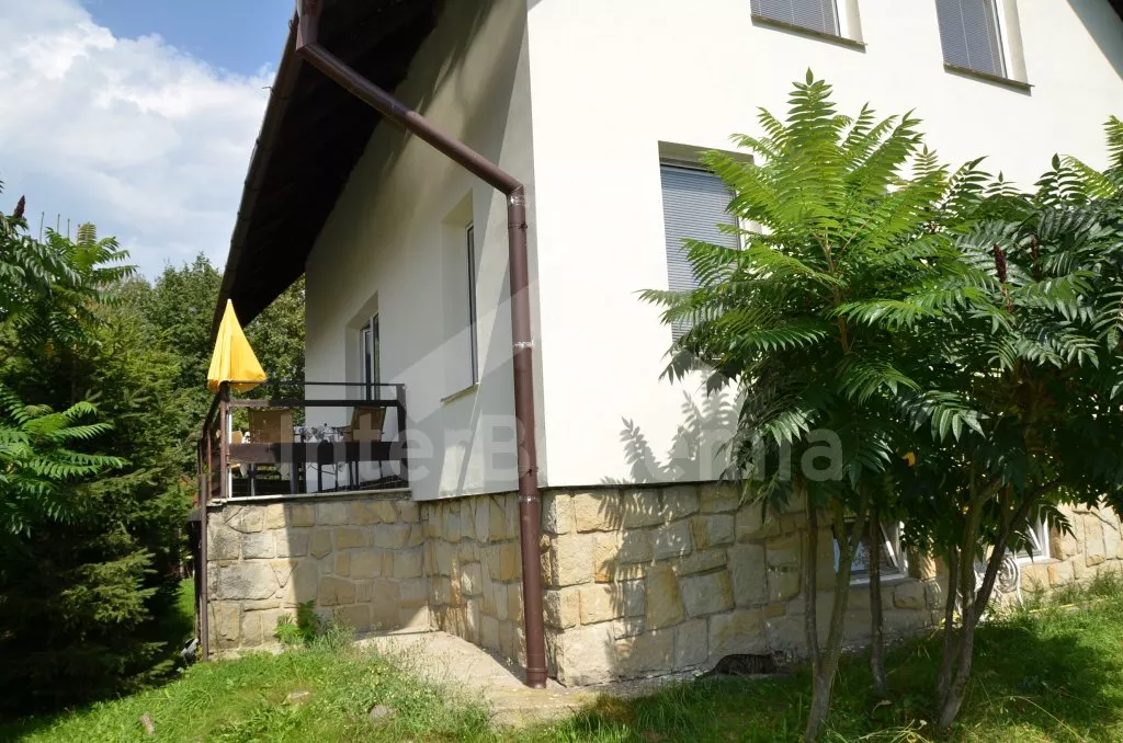 Volně stojící dům, příjemně zařízený. Vstup, chodba, obývací pokoj se sedací soupravou, televizí se satelitním příjmem a DVD. Kuchyně s jídelním stolem pro 6 osob, elektrickým sporákem s keramickou varnou deskou a horkovzdušnou troubou, lednicí, kávovarem, varnou konvicí a mikrovlnnou troubou. Koupelna se sprchou a toaletou. V patře se nachází tři ložnice – dvě s dvojlůžkem a jedna se dvěma samostatnými lůžky. Možnost dvou přistýlek. Koupelna s vanou a toaletou. Jedna z ložnic má balkón. Elektrické ústřední topení. Prostorná zahrada je oplocená, k dispozici je terasa, zahradní nábytek, přenosný gril, ohniště, pískoviště a bazén o průměru 5 m. Garáž a parkování v zahradě.