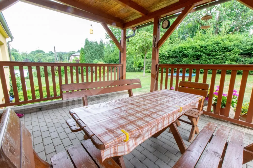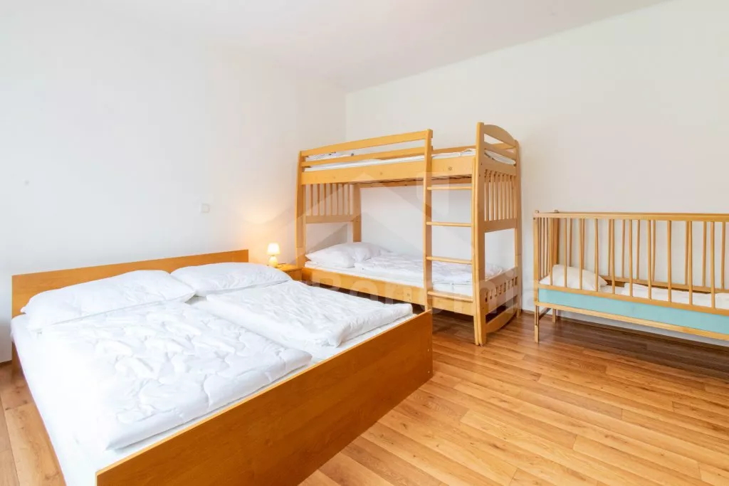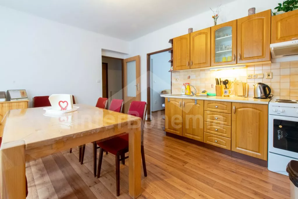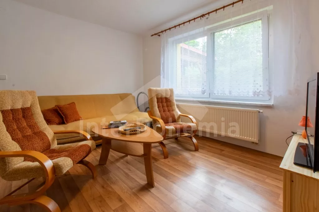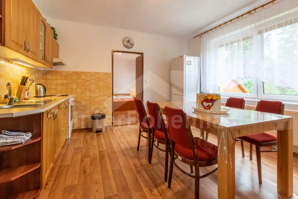 V roce 2010 zrekonstruovaný dům typu „dva pod jednou střechou“ s velkou zahradou. Dům je hezky a pohodlně zařízený. Všechny místnosti jsou v jedné úrovni. Vstup, chodba, obývací pokoj se sedací soupravou pro 6 osob a televizí s DVD. Moderní kuchyně s elektrickým sporákem, lednicí, varnou konvicí, mikrovlnnou troubou a jídelním stolem pro 8 osob. Dvě ložnice - jedna s dvojlůžkem, palandou a dětskou postýlkou a druhá s dvojlůžkem a dvěma samostatnými lůžky. Koupelna se sprchovým koutem a vanou, samostatná toaleta. Ústřední topení na tuhá paliva. K dispozici je kompletně oplocená zahrada, zastřešená terasa, dřevěný zahradní nábytek, pergola se zahradním krbem a posezením, přenosný zahradní gril a zapuštěný bazén 6 x 3 m se solárním ohřevem. Parkování na oploceném pozemku u domu.