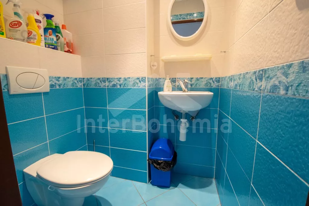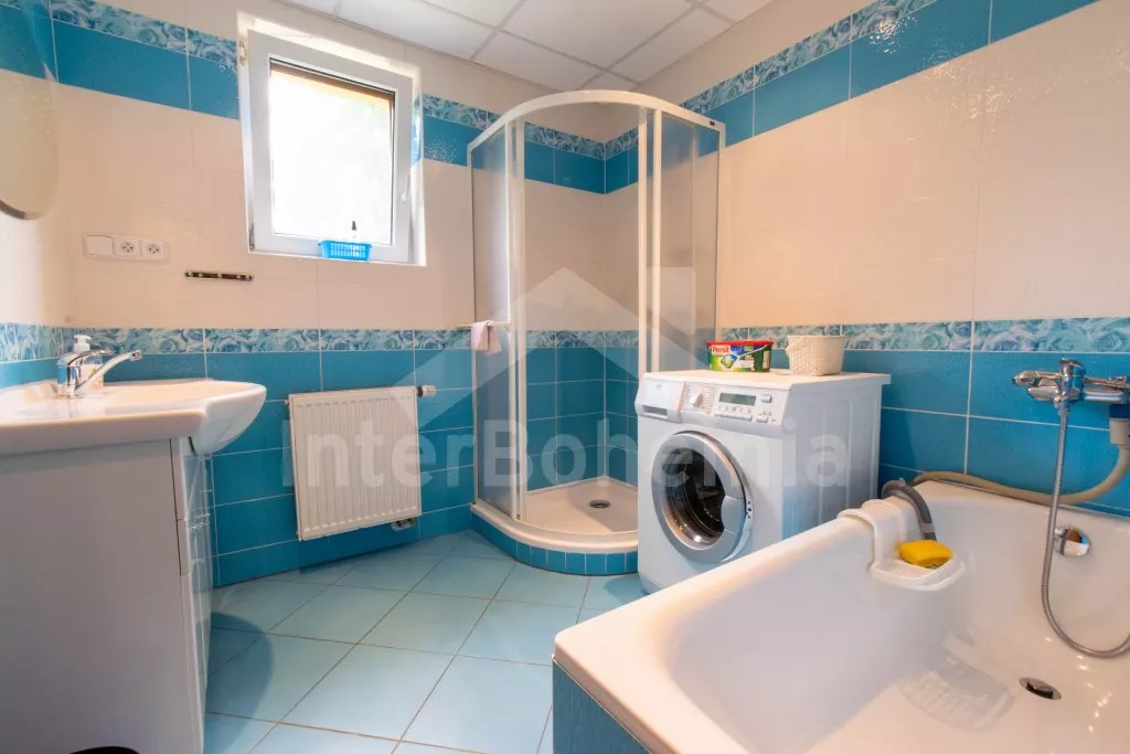 V Chalupě byla i sprcha i vana součástí byla i pračka. Oddělená toaleta od koupelny.