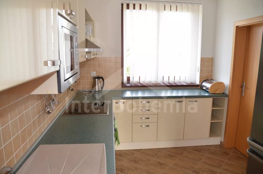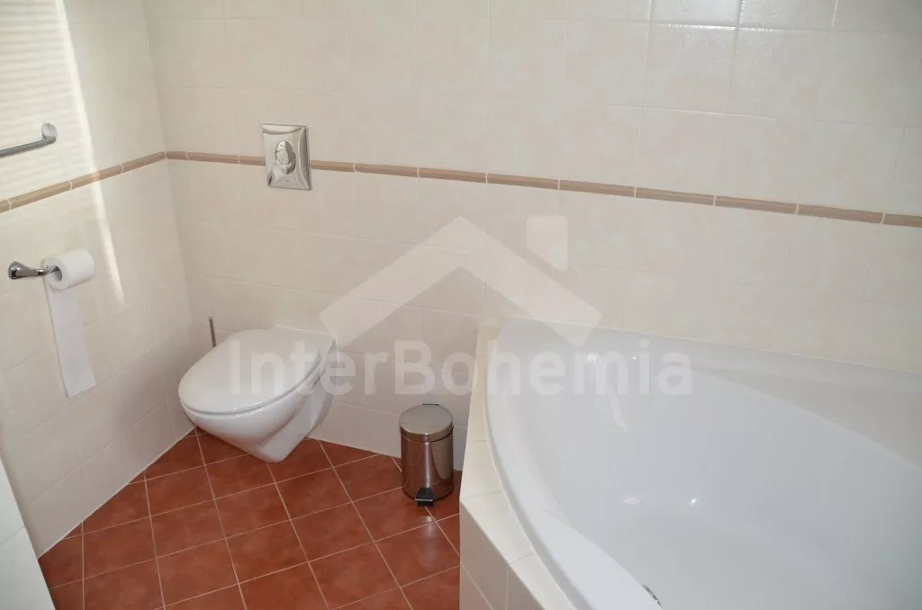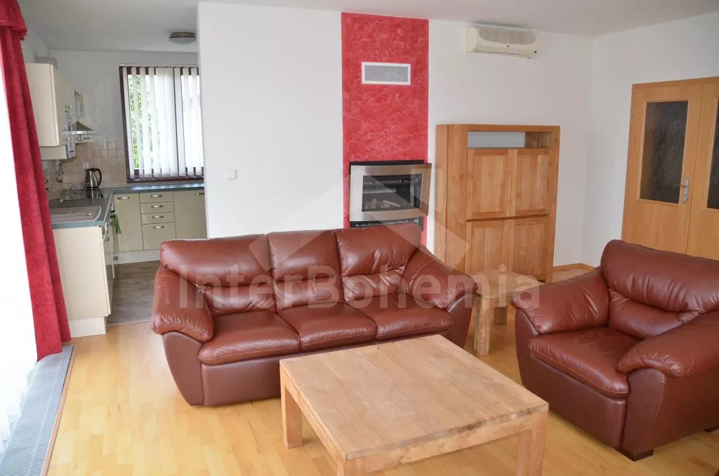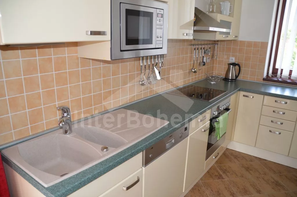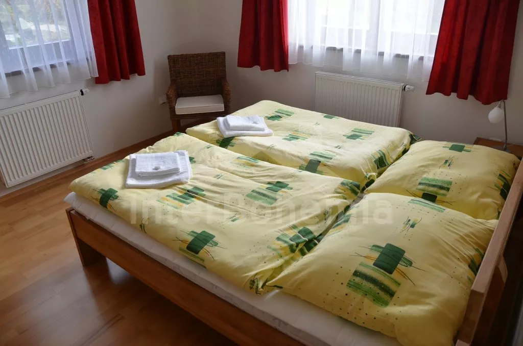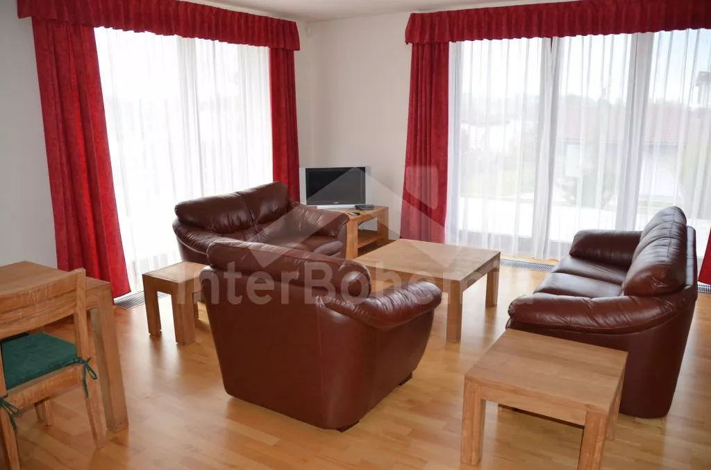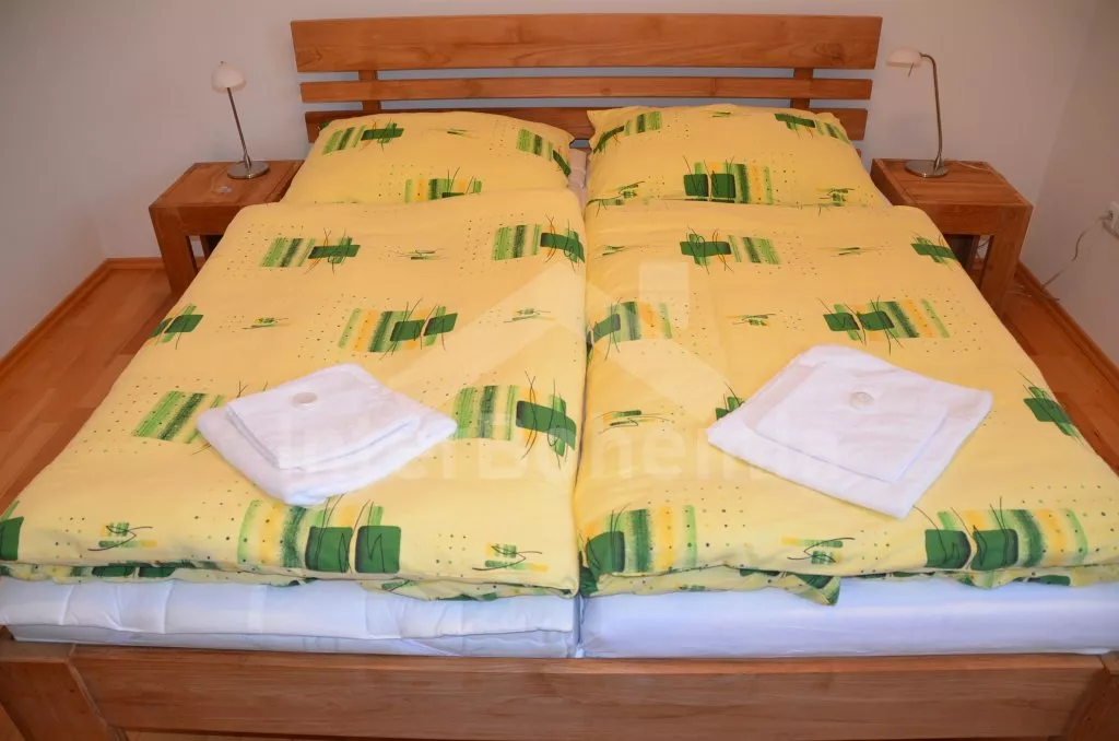 Typ: "Brusel". Samostatně stojící luxusní vila, velmi komfortně zařízená. Všechny místnosti jsou v jedné úrovni. Obytná plocha 142 m2. Obývací pokoj s posezením a jídelním koutem, plynovým krbem, satelitní TV a přístupem na terasu. Plně vybavená otevřená kuchyně (sklokeramická varná deska, trouba, digestoř, lednice s mrazákem, myčka nádobí, mikrovlnná trouba, varná konvice, kuchyňské nádobí, sklo, porcelán). Dvě ložnice, každá s dvojlůžkem. Koupelna s vanou, umyvadlem, toaletou a bidetem. Druhá samostatná toaleta. Ústřední plynové topení, podlahové vytápění v koupelně. Přístřešek pro auto. K dispozici zahradní nábytek. Za poplatek možno zapůjčit gril.