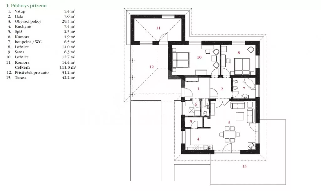 Typ: "Brusel". Samostatně stojící luxusní vila, velmi komfortně zařízená. Všechny místnosti jsou v jedné úrovni. Obytná plocha 142 m2. Obývací pokoj s posezením a jídelním koutem, plynovým krbem,… Více informací
