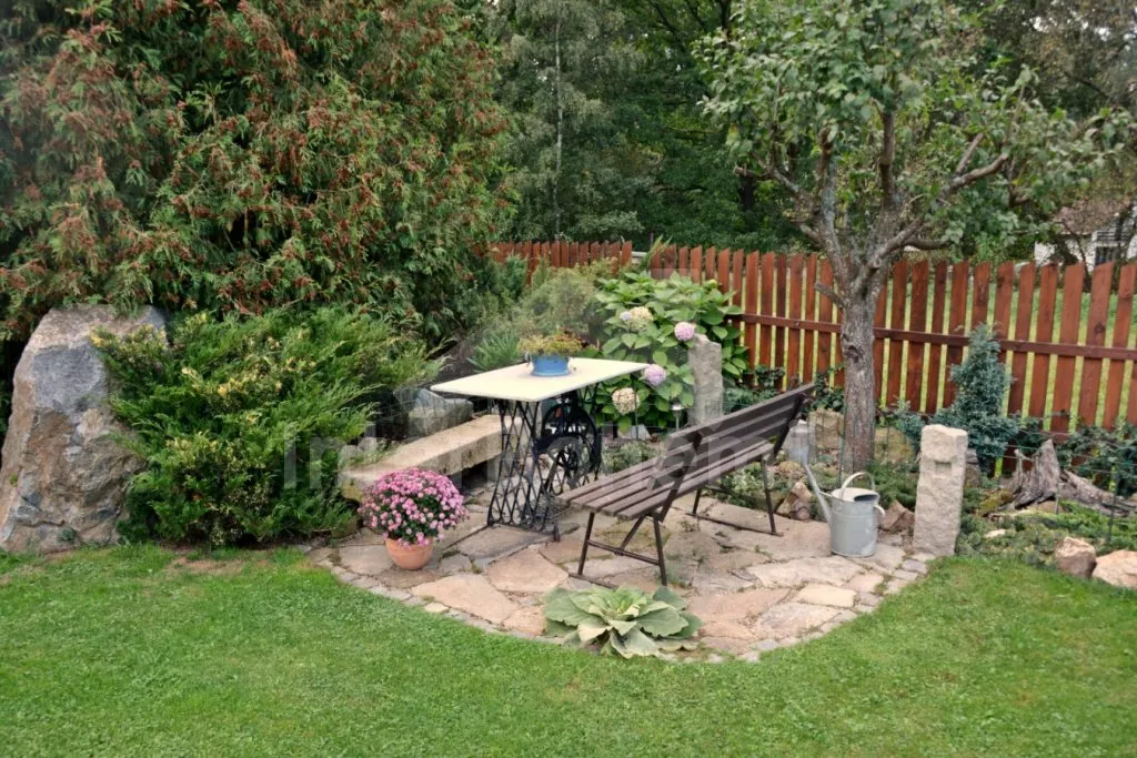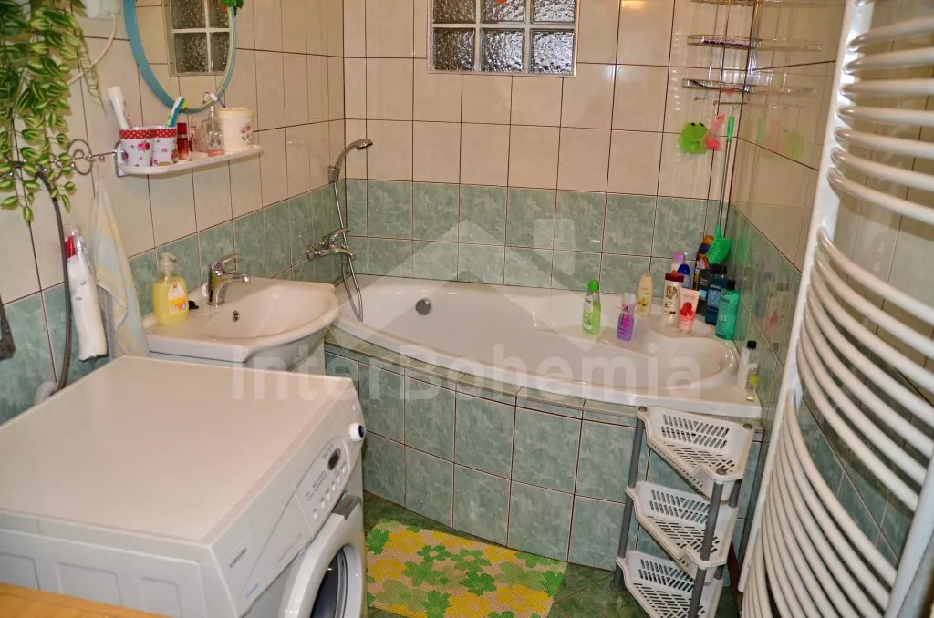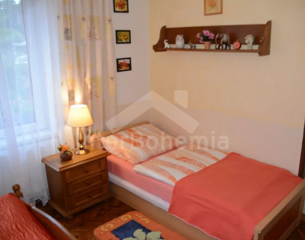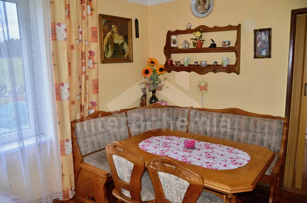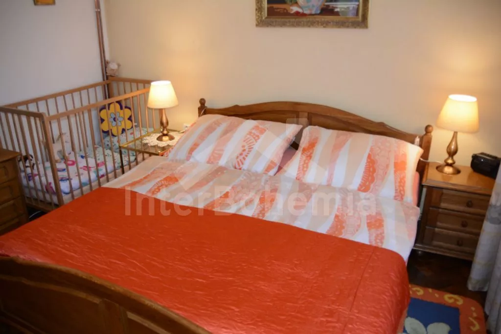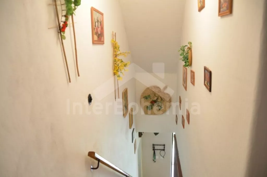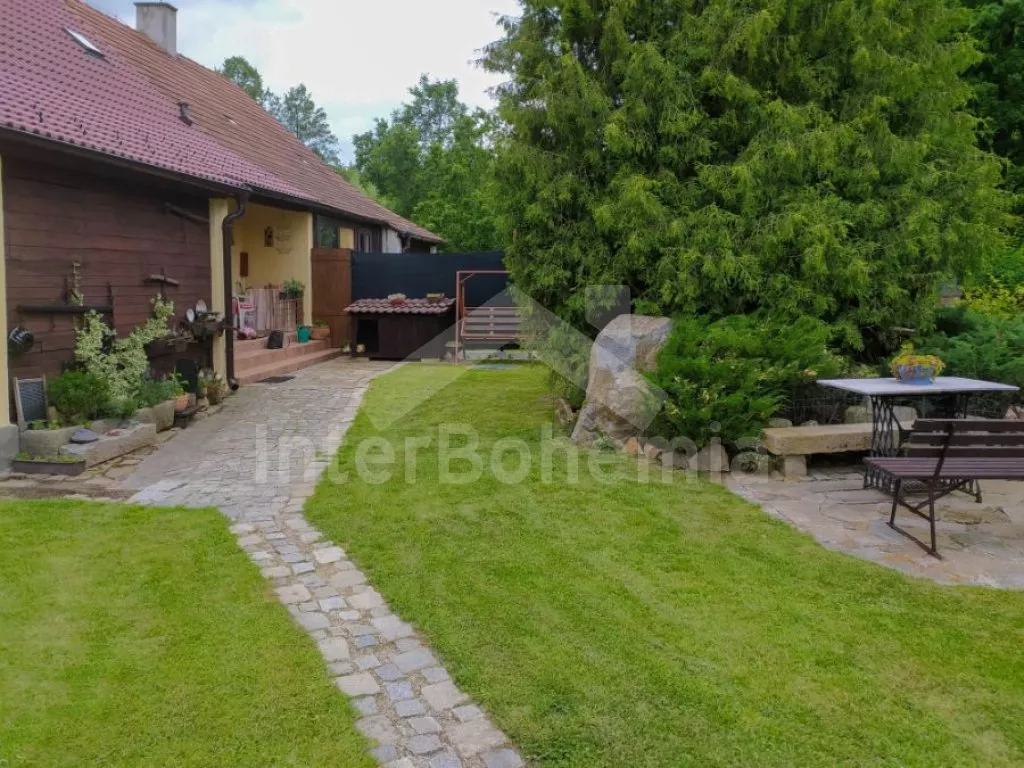 Volně stojící rekreační dvojdomek, v němž obýváte jednu polovinu. Druhá polovina je oddělena neprůhledným plotem. Domek byl v roce 2016 částečně zrenovován a je pohodlně zařízený. Vstup přes částečně zastřešenou terasu, chodba, samostatná toaleta. Obývací pokoj s pohovkou, křeslem, jídelním koutem pro 5 osob, krbovými kamny na dřevo a televizí. Kuchyně s elektrickým sporákem, lednicí, kávovarem, mikrovlnnou troubou a varnou konvicí. Koupelna s vanou a umyvadlem. Ložnice s dvojlůžkem, jedním samostatným lůžkem a dětskou postýlkou. Z chodby vedou příkré dřevěné schody do podkroví, kde se nachází malá hala s posezením a druhá ložnice se třemi samostatnými lůžky. Samostatná toaleta se sprchou a umyvadlem. Vytápění krbovými kamny na dřevo (s rozvodem pro radiátory po celém objektu). Domek stojí v kompletně oplocené zahradě. K dispozici je zastřešená terasa (pergola) se zahradním krbem, zahradní nábytek, houpací lavice, pískoviště, houpačka a zapuštěný bazén 4 x 2 m se zabudovanou filtrací. Parkování u domu za plotem a pod přístřeškem.