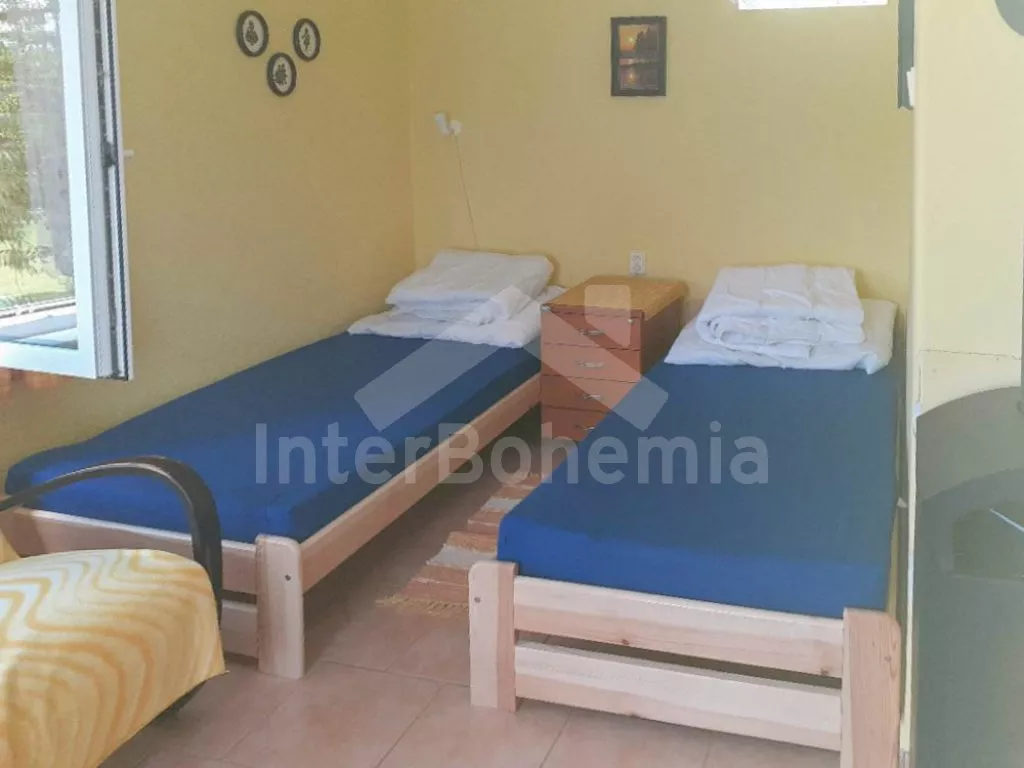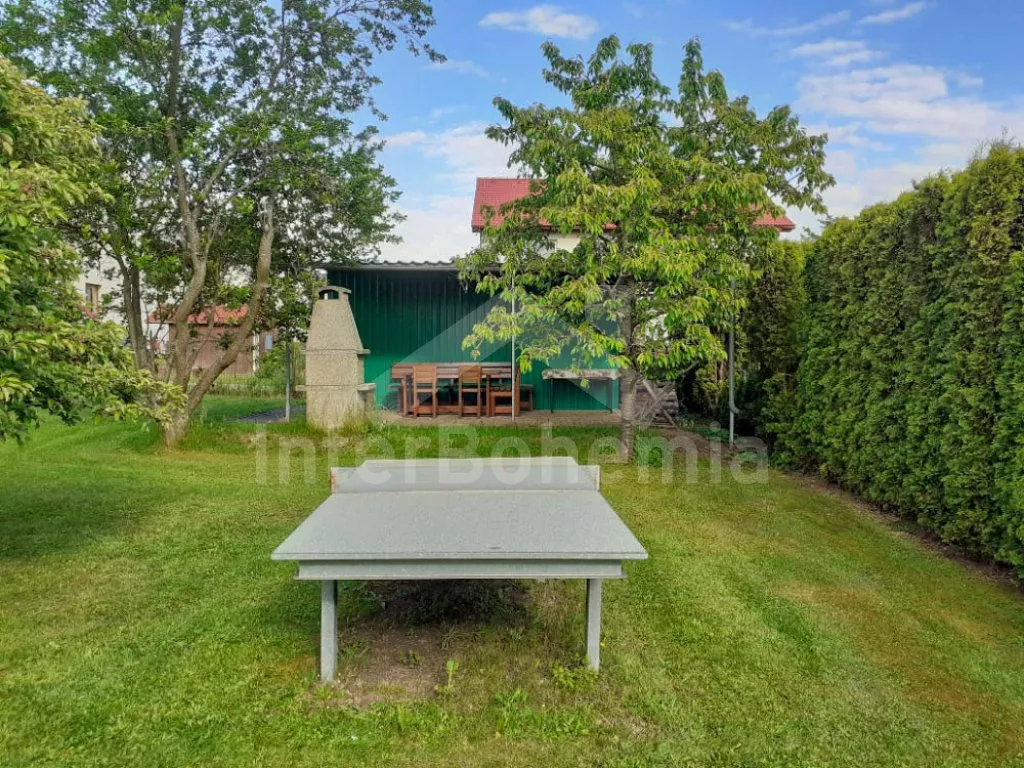Volně stojící chata, účelně a prakticky zařízená. Vstup přes verandu s posezením, jídelním stolem, lednicí a koupelnou se sprchovým koutem, pračkou a toaletou. Obývací pokoj s posezením, krbovými kamny, TV a čtyřmi samostatnými lůžky. Kuchyně s elektrickým sporákem, mikrovlnnou troubou a varnou konvicí. Možnost přitápění kamny na dřevo. Chata stojí na oploceném pozemku se zahradou. K dispozici je zahradní krb s posezením, stolní tenis, houpačka a ohniště. Dostatek parkovacího místa před objektem.