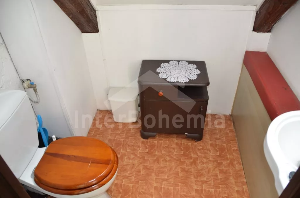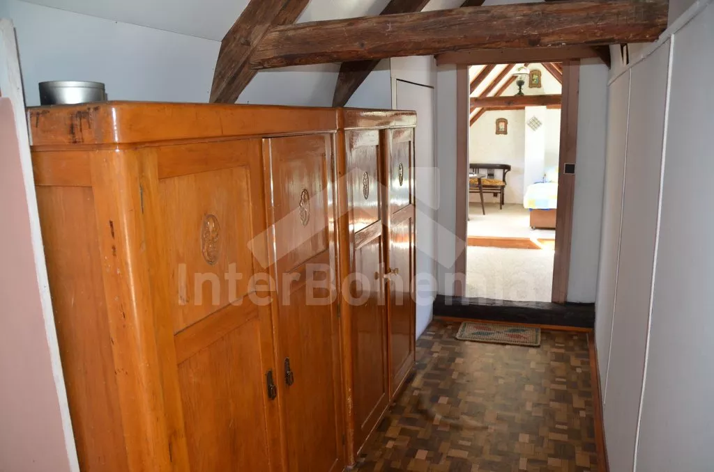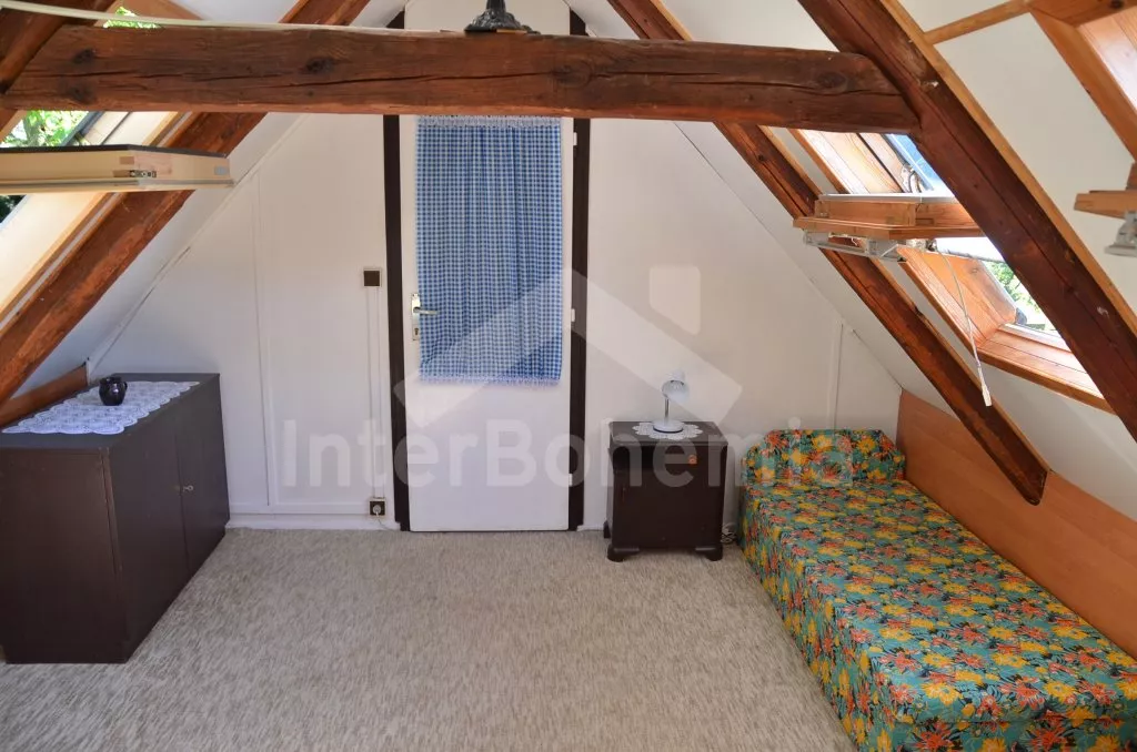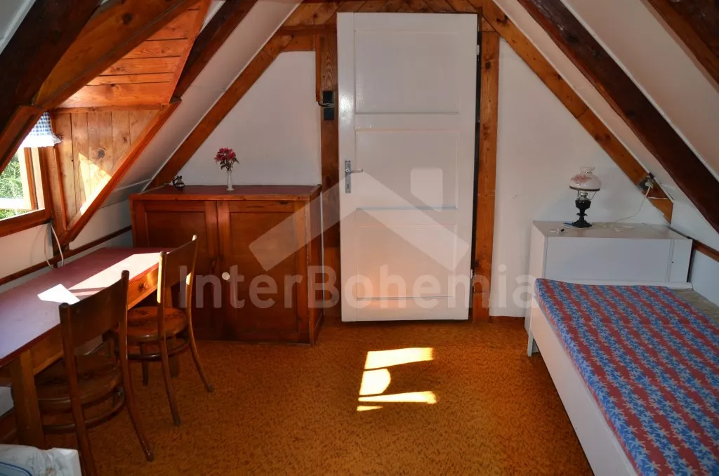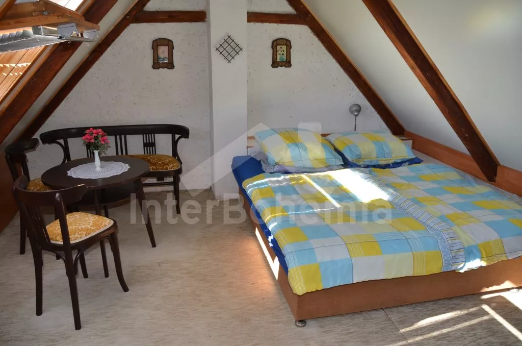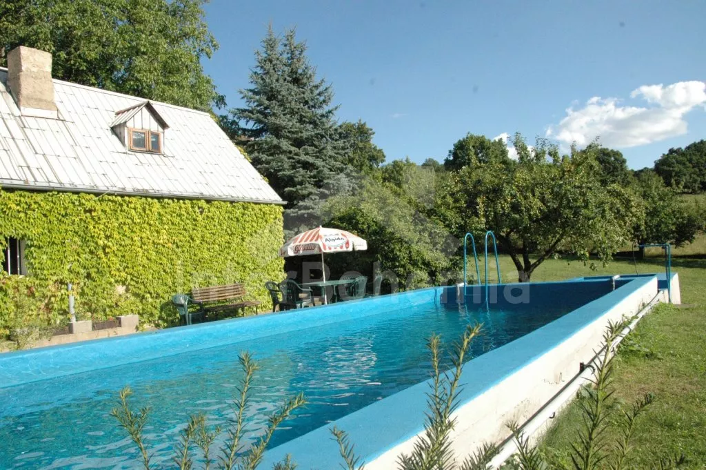 Volně stojící starší venkovský dům, jehož stěny jsou pokryty břečťanem. Vhodné zejména pro mladé, sportovně založené milovníky přírody. Vstup do verandy s jídelním stolem a lavicemi. Kuchyně s plynovým sporákem, lednicí, kávovarem, varnou konvicí a mikrovlnnou troubou. Obývací pokoj s pohovkou pro 3 osoby, jídelním stolem pro 9 osob a televizí. Koupelna s vanou a bidetem, samostatné WC. Ložnice se třemi samostatnými lůžky. V patře se nachází chodba, druhá toaleta, druhá ložnice se třemi samostatnými lůžky a třetí ložnice s jedním samostatným lůžkem, dvojlůžkem a posezením. Elektrické vytápění. Prostorná zahrada o rozloze téměř 2000 m2 je oplocená. K dispozici je krásný zapuštěný bazén 10 x 4 m a 2 m hluboký (pouze červenec a srpen)! Terasa, zahradní nábytek, slunečník, přenosný gril, ohniště a houpačka. Vlastní parkoviště.