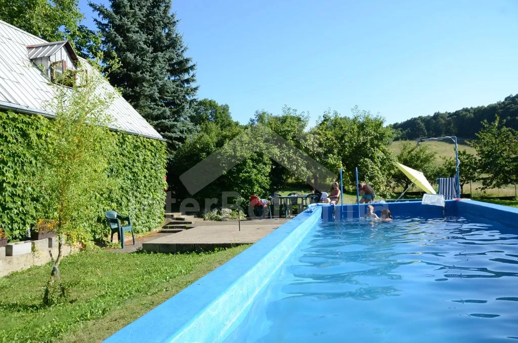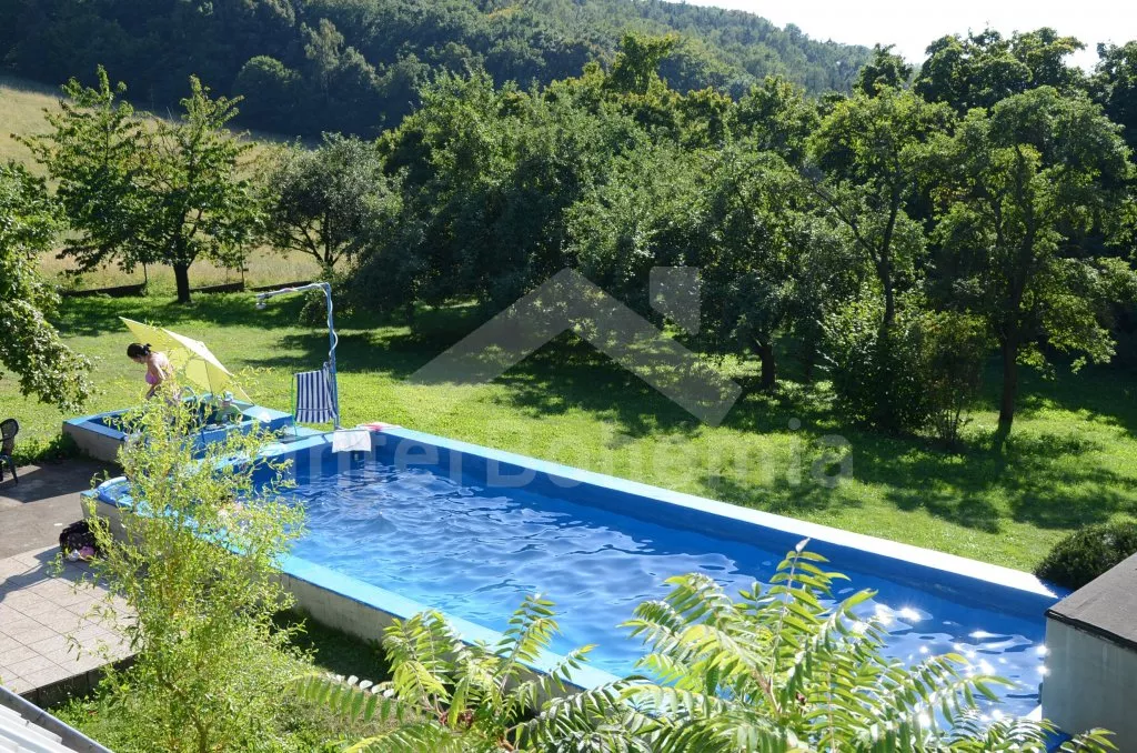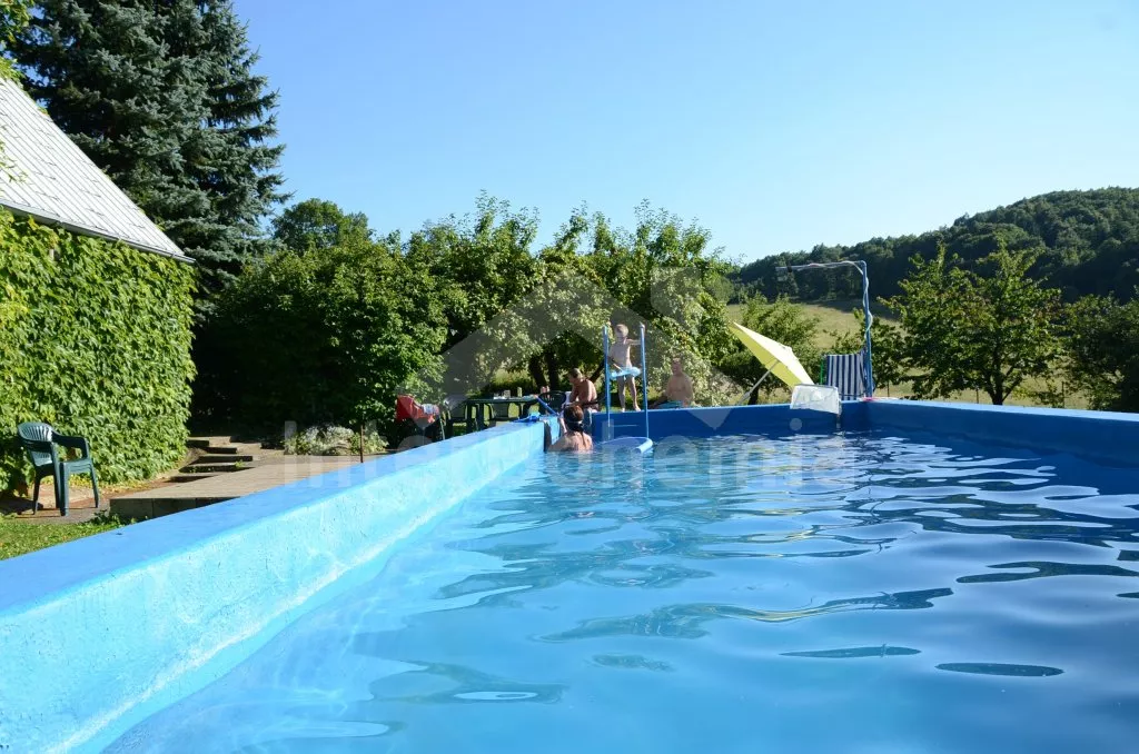 Super bazén. Klidná poloha v obci. Vhodné i pro pěší turistiku v okolí. Velká zahrada.