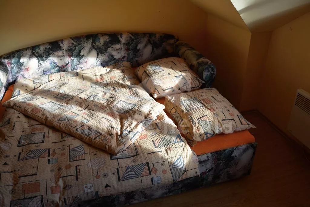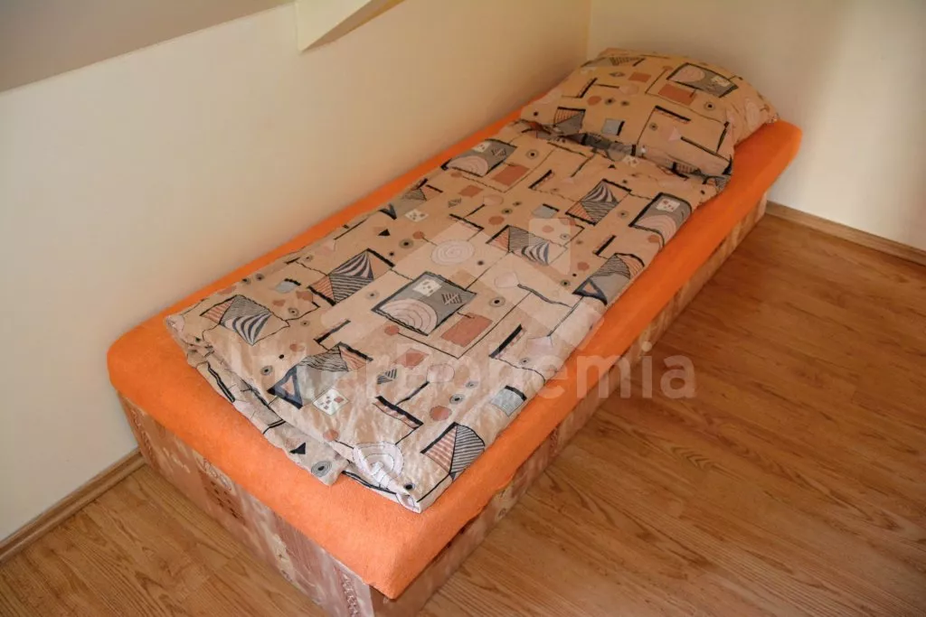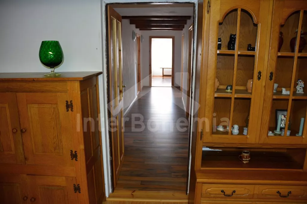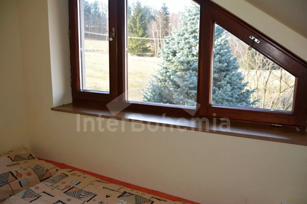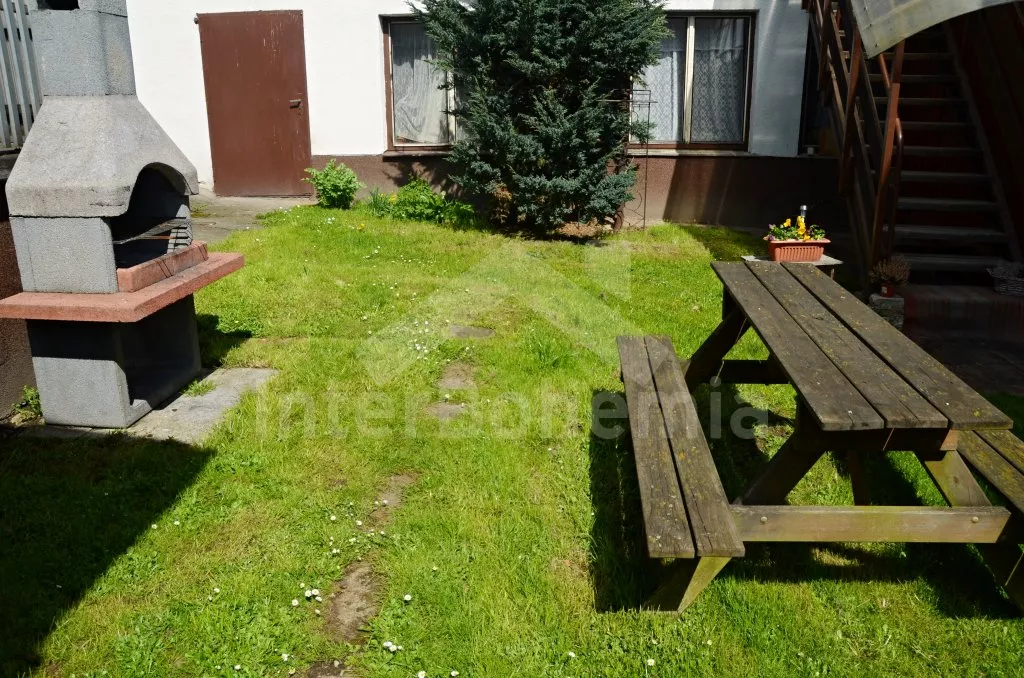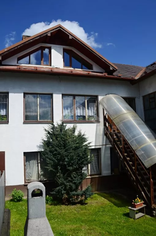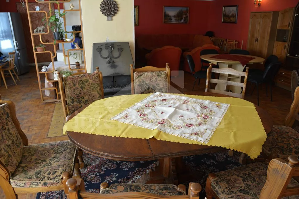 Rodinný dům s pensionem, pěkně zařízený. Vstup, prostorný obývací pokoj s posezením pro pro 12 osob, krbem, TV, jídelními stoly pro 18 osob, kuchyňským koutem s elektrickým sporákem s keramickou varnou deskou, mikrovlnnou troubou, varnou konvicí a dvěma chladničkami kombinovanými s mrazákem. Schodiště do patra, chodba, podkrovní společenská místnost s posezením pro 7 osob, 7 ložnic a koupelny. První a druhá ložnice s jedním dvojlůžkem a jedním samostatným lůžkem, třetí, čtvrtá a pátá ložnice se třemi samostatnými lůžky, šestá ložnice se dvěma samostatnými lůžky a sedmá ložnice s jedním dvojlůžkem a pěti samostatnými lůžky. Koupelna s vanou, sprchovým koutem, umyvadlem a pračkou, 2 samostatné toalet s umyvadlem. Vytápění je centrální elektrické. K dispozici je uzavřený dvůr se zahrádkou s posezením s venkovním krbem a nadzemní kulatý bazén o průměru 3 m.