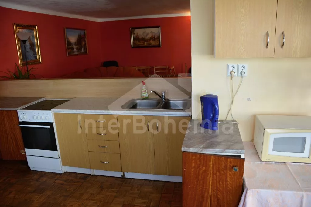 Rodinný dům s pensionem, pěkně zařízený. Vstup, prostorný obývací pokoj s posezením pro pro 12 osob, krbem, TV, jídelními stoly pro 18 osob, kuchyňským koutem s elektrickým sporákem s keramickou… Více informací