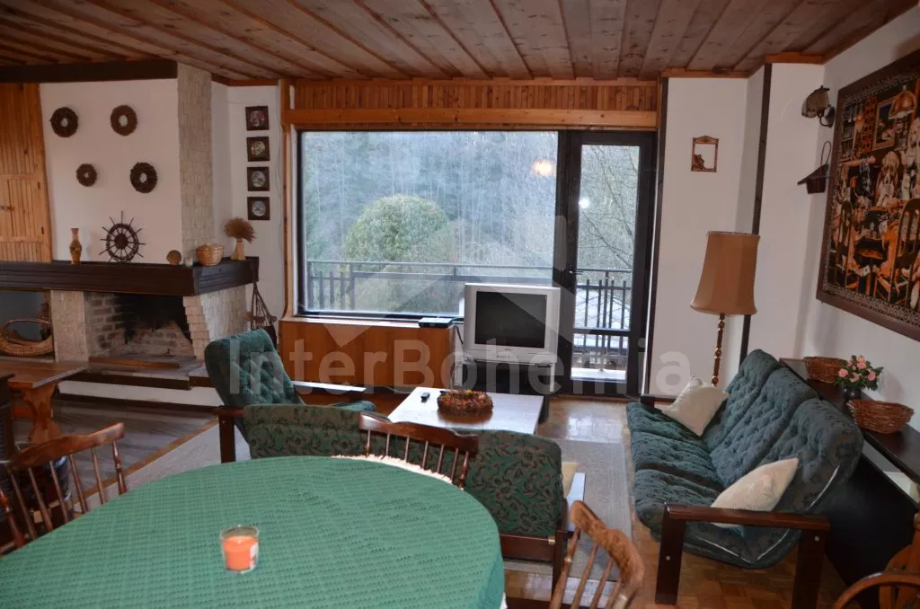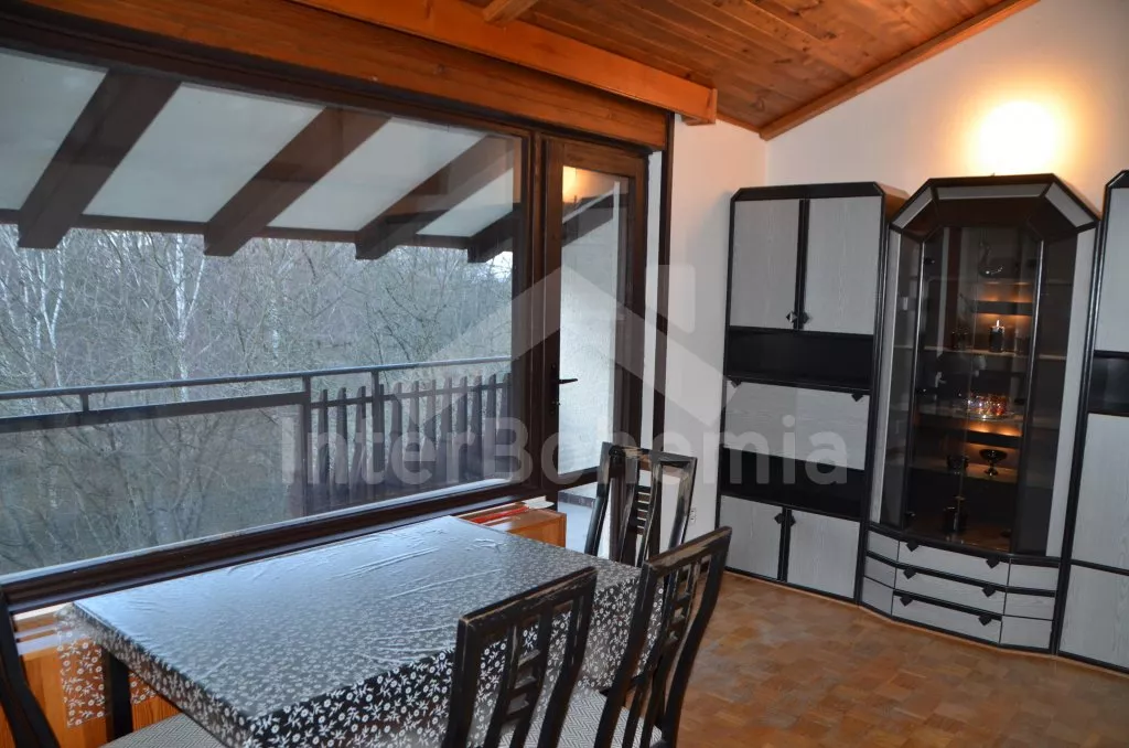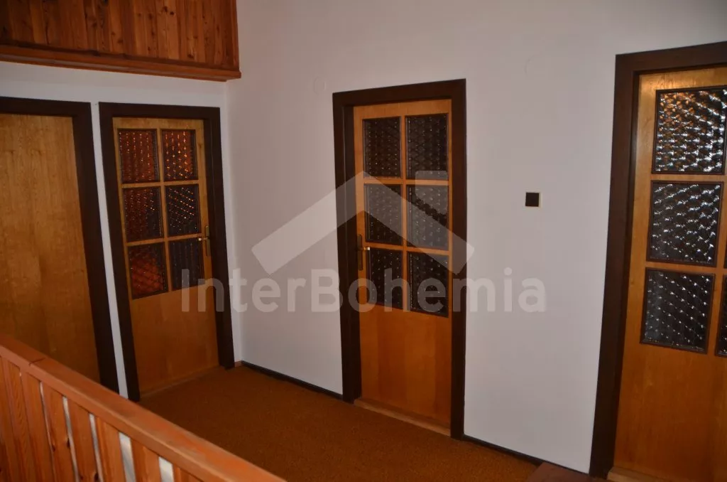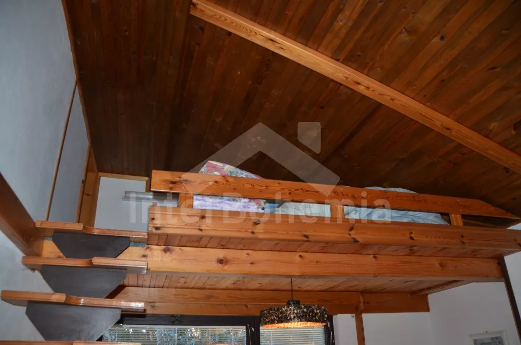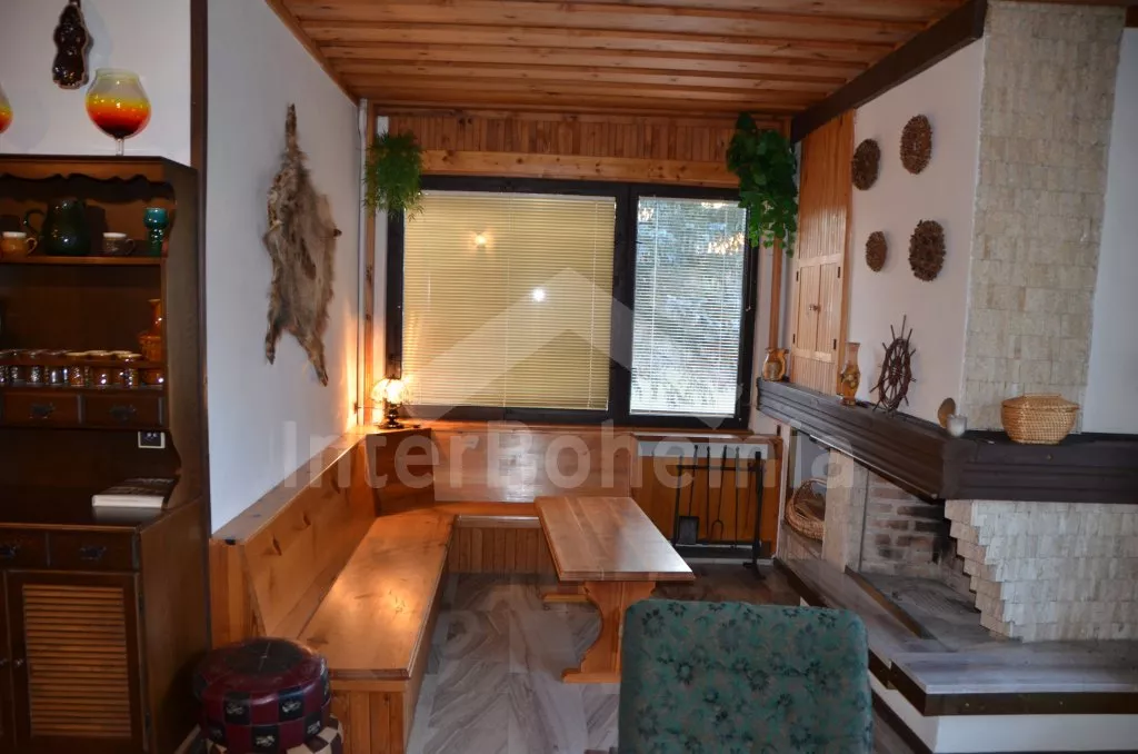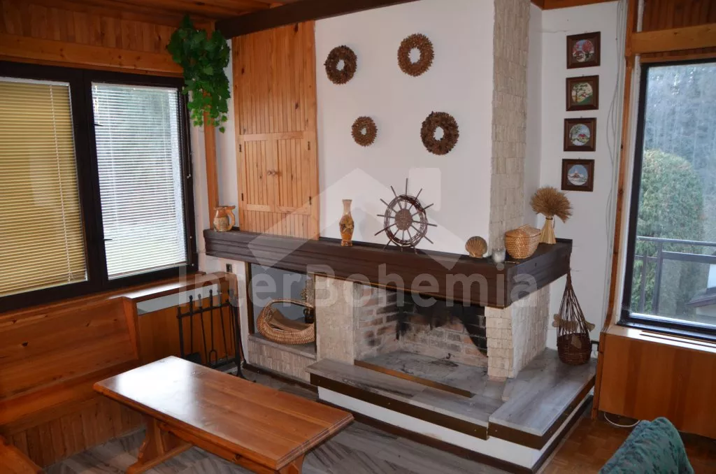 Volně stojící, prostorná vila, kompletně zařízená. Vstup, chodba, obývací pokoj na dvou úrovních se sedací soupravou, krbem, jídelním stolem, televizí a vstupem na balkon. Kuchyně s dalším jídelním stolem, lednicí s mrazákem, elektrickým sporákem se sklokeramickou deskou, mikrovlnnou troubou, varnou konvicí a toustovačem. Samostatné WC, spíž. Nahoře je hala, koupelna s vanou, umyvadlem a WC a tři ložnice. První je obývací ložnice s dvoulůžkem, televizí, posezením a zastřešeným balkonem. Druhá ložnice se dvěma samostatnými lůžky a třetí ložnice s dvoulůžkem 150 cm. Vytápění elektrikou a krbem. Dům stojí ve velké, oplocené zahradě o rozloze 200 m2, k dispozici je zastřešené venkovní posezení s krbem, zahradní krb a vlastní parkování pro dvě auta. Dům je vhodný pro maximálně 6 osob.