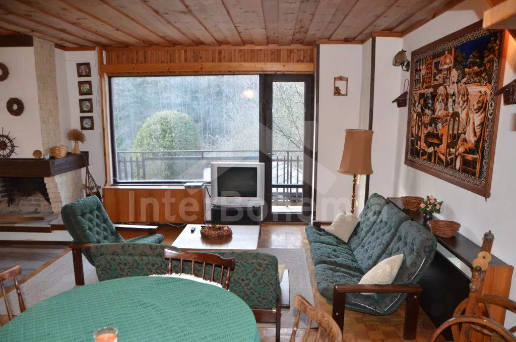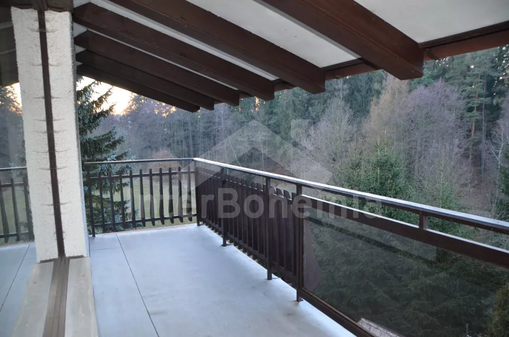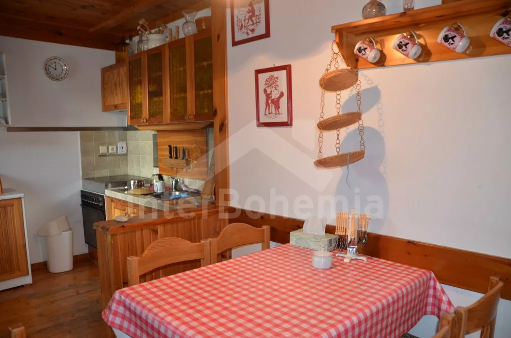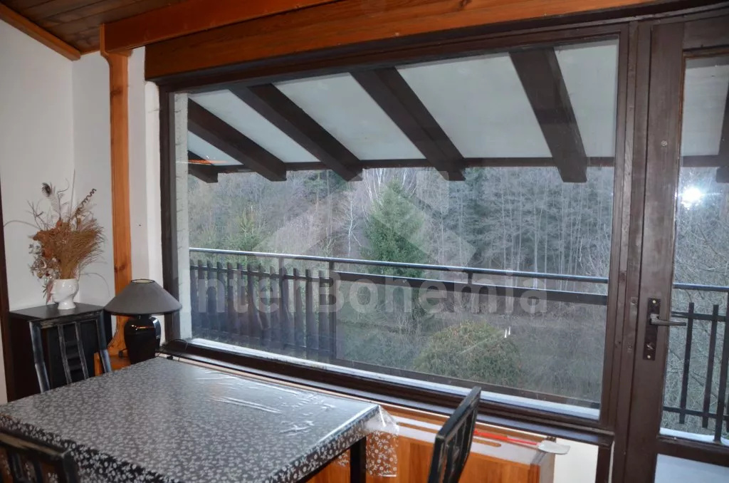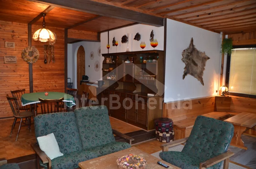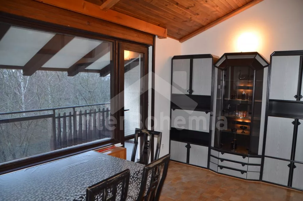 Volně stojící, prostorná vila, kompletně zařízená. Vstup, chodba, obývací pokoj na dvou úrovních se sedací soupravou, krbem, jídelním stolem, televizí a vstupem na balkon. Kuchyně s dalším jídelním stolem, lednicí s mrazákem, elektrickým sporákem se sklokeramickou deskou, mikrovlnnou troubou, varnou konvicí a toustovačem. Samostatné WC, spíž. Nahoře je hala, koupelna s vanou, umyvadlem a WC a tři ložnice. První je obývací ložnice s dvoulůžkem, televizí, posezením a zastřešeným balkonem. Druhá ložnice se dvěma samostatnými lůžky a třetí ložnice s dvoulůžkem 150 cm. Vytápění elektrikou a krbem. Dům stojí ve velké, oplocené zahradě o rozloze 200 m2, k dispozici je zastřešené venkovní posezení s krbem, zahradní krb a vlastní parkování pro dvě auta. Dům je vhodný pro maximálně 6 osob.