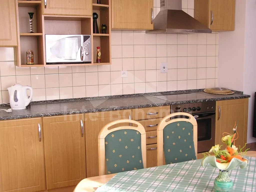 Volně stojící vila, nově postavená a zařízená v roce 2004, moderní a komfortní. Vstup, chodba, obývací místnost se sedací soupravou, televizí se satelitním příjmem, krbovými kamny a dveřmi na terasu. Jídelní kout pro 6 osob a kuchyňský kout s keramickou varnou deskou, troubou, lednicí, kávovarem, varnou konvicí a mikrovlnnou troubou. Koupelna s vanou a sprchou, toaleta zvlášť. Ložnice s jedním dvojlůžkem a jedním samostatným lůžkem a druhá ložnice se dvěma samostatnými lůžky. Nahoře je stejné rozdělení místností jako dole, obývací místnost se sedací soupravou, jídelním stolem pro 4 osoby. Kuchyňský kout s keramickou varnou deskou, troubou, lednicí, varnou konvicí a mikrovlnnou troubou. Koupelna s vanou, toaleta zvlášť. Dvě ložnice - jedna s dvojlůžkem a druhá se dvěma samostatnými lůžky. Elektrické vytápění. Wifi. Okolo domu je neoplocená zahrada s pergolou, zahradním nábytkem a zahradním krbem. K dispozici částečně zapuštěný kulatý bazén o průměru 4,6 m se solárním ohřevem. Garáž a vlastní parkoviště.
