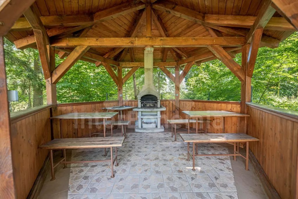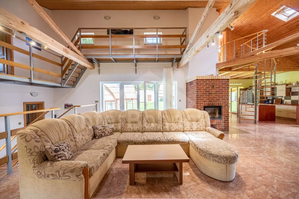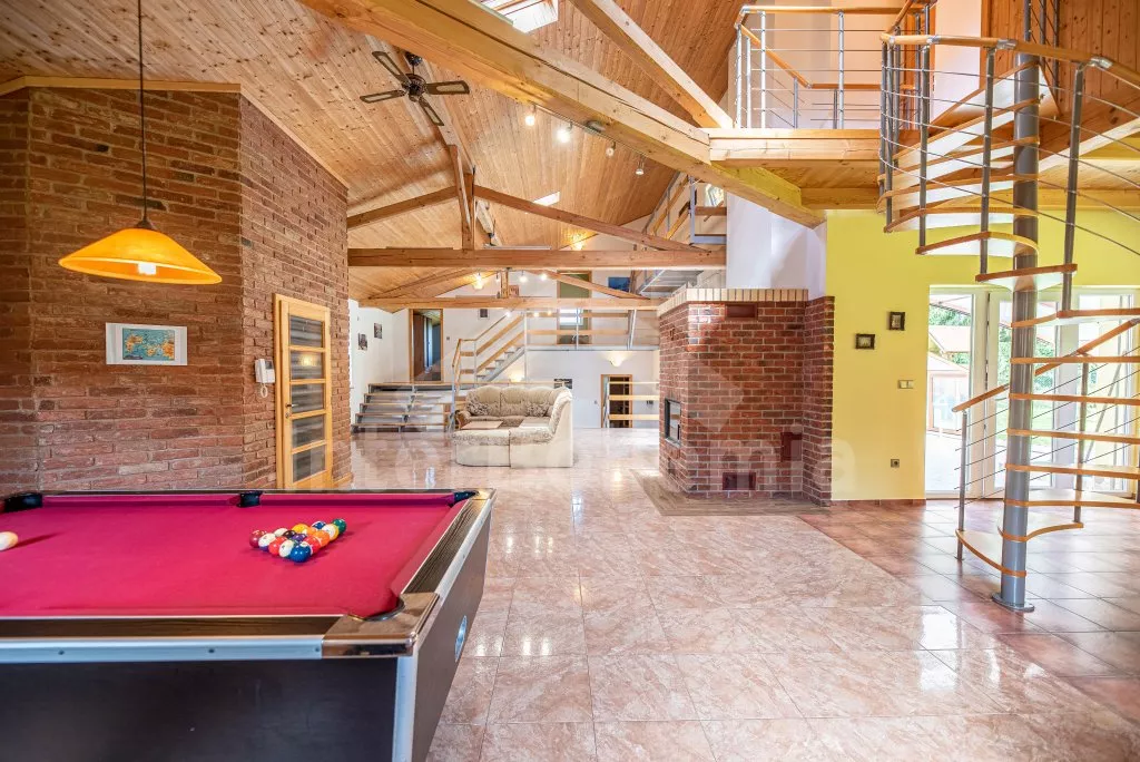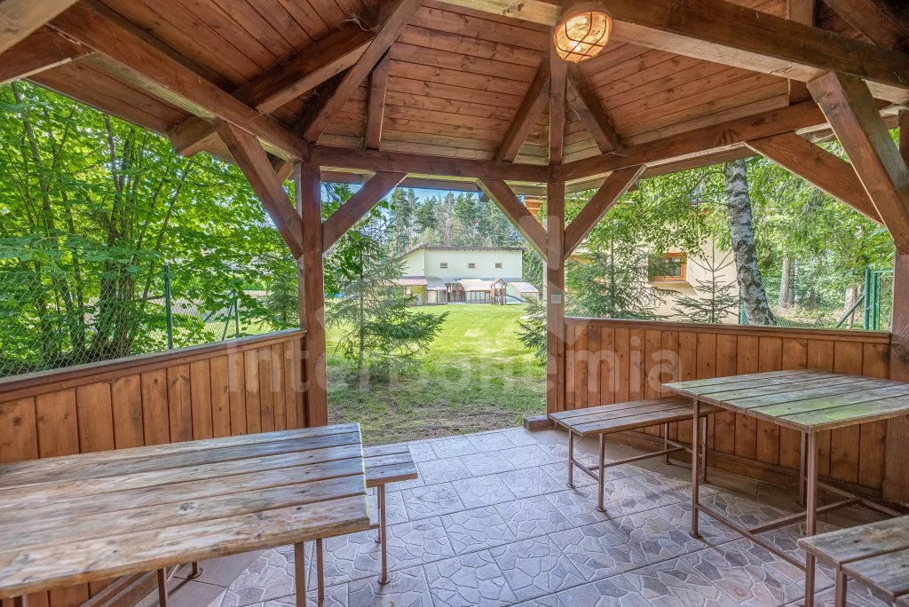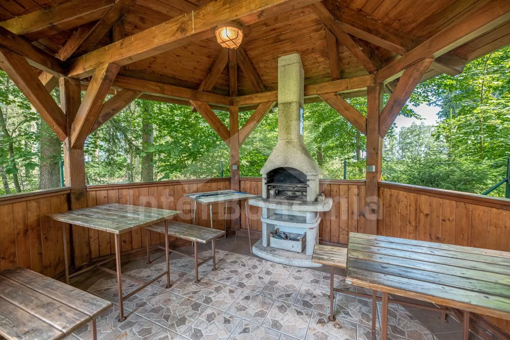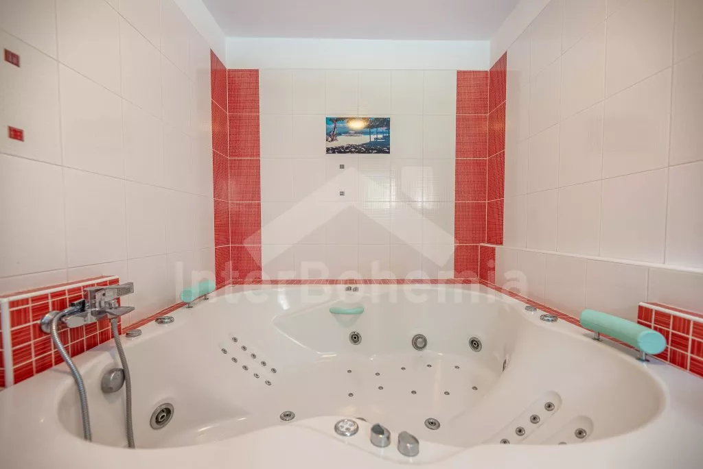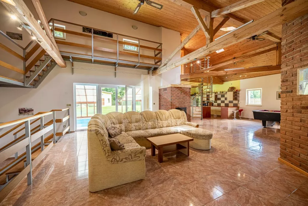 Volně stojící, v roce 2010 nově postavený, mimořádně atraktivní a moderně a pohodlně zařízený dům se zastřešeným, solárně vyhřívaným bazénem. Vstup, chodba, prostorný obývací pokoj se sedací soupravou pro 6 osob (možnost až dvou přistýlek), televizí se satelitním příjmem a DVD, krbovými kamny a kulečníkovým stolem. Moderní, otevřená kuchyně s barem a barovými stoličkami, elektrickou sklokeramickou varnou deskou, horkovzdušnou troubou, lednicí s mrazákem, mikrovlnnou troubou, rychlovarnou konvicí, myčkou na nádobí, jídelním stolem pro šest osob a televizí se satelitním příjmem. Tři ložnice, všechny přístupné z obývacího pokoje. První dvě – každá se dvěma vyvýšenými lůžky a rozkládací pohovkou (možnost dvou přistýlek) a třetí ložnice přístupná po točitém schodišti s rozkládací pohovkou (dvě lůžka). Koupelna se sprchovým koutem a toaletou. K dispozici sauna a koupelna s vířivou vanou. Ústřední elektrické topení (solární panely). Dům stojí na rozlehlém, oploceném pozemku, k dispozici je zastřešený, solárně vyhřívaný bazén 8 x 4 x 1,4 m se slanou vodou a skluzavkou, zahradní nábytek, plynový zahradní gril, zastřešený altánek se zahradním nábytkem a ohniště s posezením. Parkování před objektem.