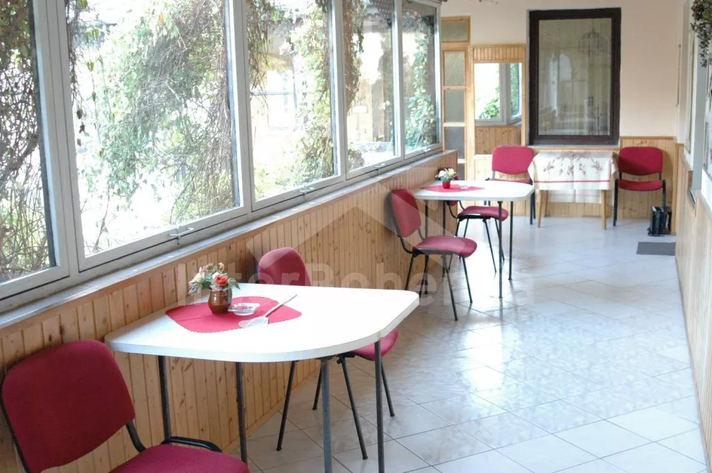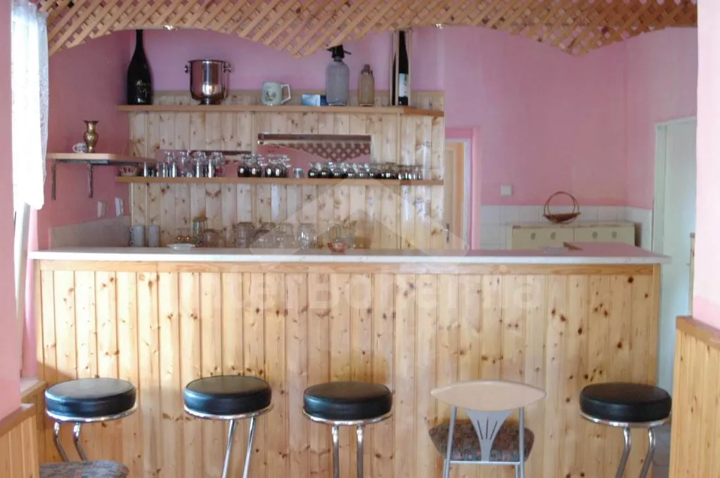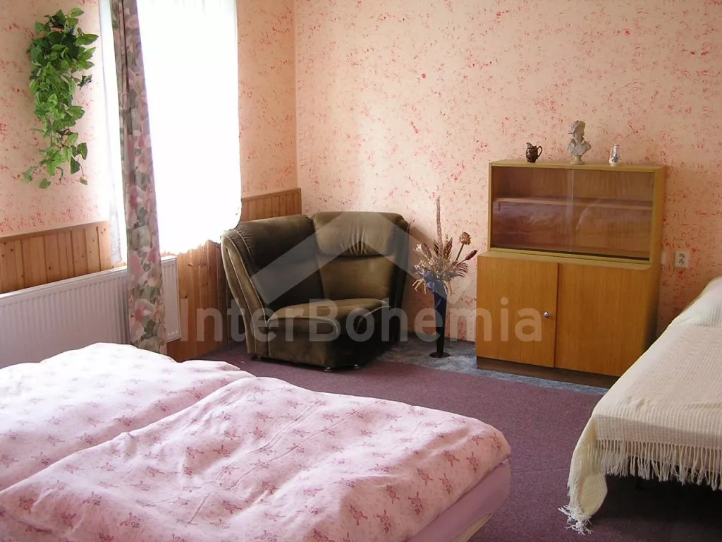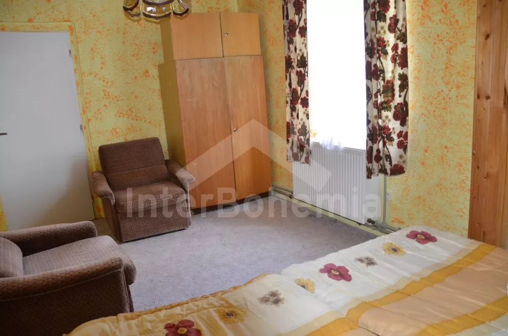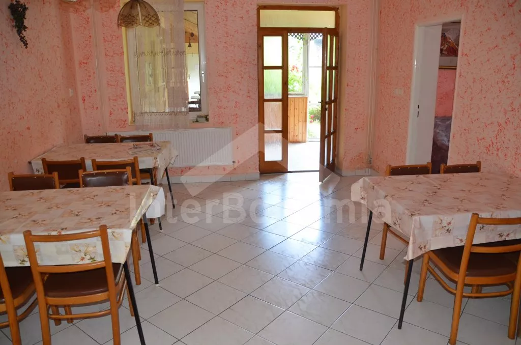 Volně stojící, velmi prostorný dům s obytnou plochou více než 405 m2! Vstup přes prosklenou verandu s posezením. V přízemí se nachází společenská místnost se sedací soupravou, barem a stolním tenisem. Kuchyně s pohovkou, jídelním stolem, elektrickým sporákem, lednicí, kávovarem, varnou konvicí a mikrovlnnou troubou. Jídelna s jídelními stoly, krbem a televizí. Hala s posezením a tři ložnice – každá s dvojlůžkem. Koupelna se sprchou a toaletou a další dvě samostatné toalety. V podkroví se nachází obývací pokoj se sedací soupravou, kulečníkem, televizí se satelitním příjmem a videem a dále tři apartmá. Apartmá 1 a 2 jsou vybavena malým kuchyňským koutem, posezením, koupelnou se sprchou, samostatnou toaletou a dvěma ložnicemi (v každé je dvojlůžko). V apartmá 3 je k dispozici malý kuchyňský kout, posezení, sprcha, toaleta a ložnice s dvojlůžkem. Ústřední topení (o topení se stará pronajímatel). Velká, hezky udržovaná zahrada s okrasným jezírkem, k dispozici je zastřešená terasa, zahradní nábytek se slunečníkem, zahradní krb a bazén 12 x 6 m. Spousta zábavy pro děti (pískoviště, houpačka, kolotoč a zahradní domeček). Vlastní parkoviště pro 8-10 aut.