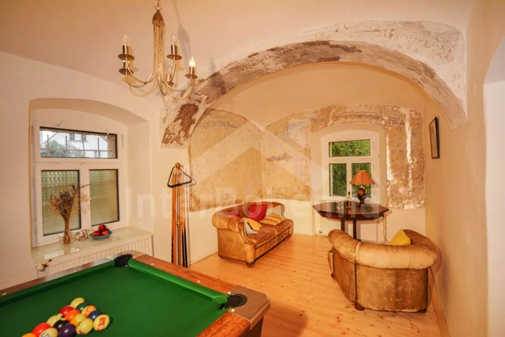 V přízemí dále společenská místnost pro pány s kulečníkem, z druhé strany haly čtvrtá koupelna s vanou, umyvadlem a samostatná toaleta. V patře se nachází prostorná hala, tři samostatné luxusní koupelny - každá se sprchou, umyvadlem a toaletou.