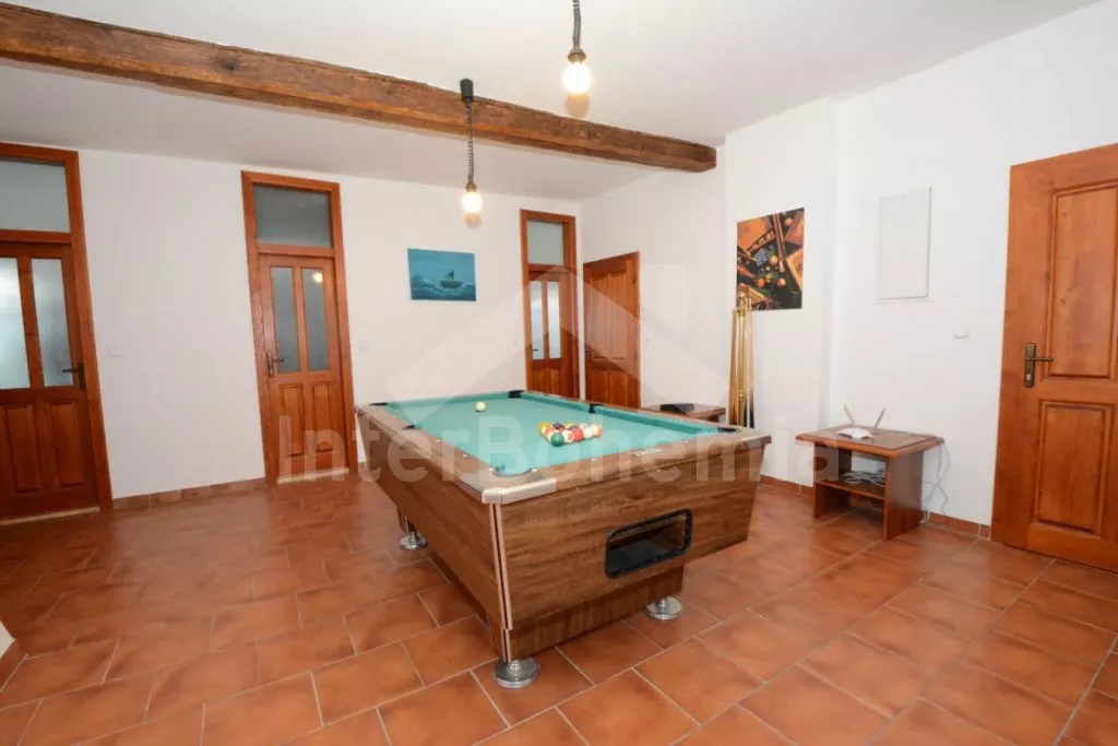 Domácí zvířata nejsou povolena. K dispozici jsou 3 dětské postýlky, 2 dětské židličky a vanička. WiFi připojení k internetu po celém domě. K dispozici je kulečník, stolní fotbal, basketbalový koš, stolní tenis a šipky. Dětem je k dispozici pískoviště, houpačka, skluzavka a travnaté hřiště. Vratná kauce Kč 7.000,-. Závěrečný úklid Kč 1.950,-. V ceně je užívání pračky, povlečení, ručníky a utěrky, spotřeba vody a spotřeba el. energie do 50 kWh za týden (vyšší spotřeba se hradí na místě). Objekt je vhodný pro maximálně 16 osob + 4 osoby na přistýlkách + 3 miminka.