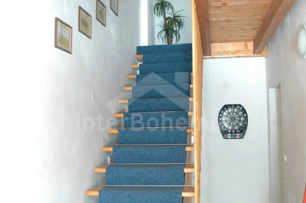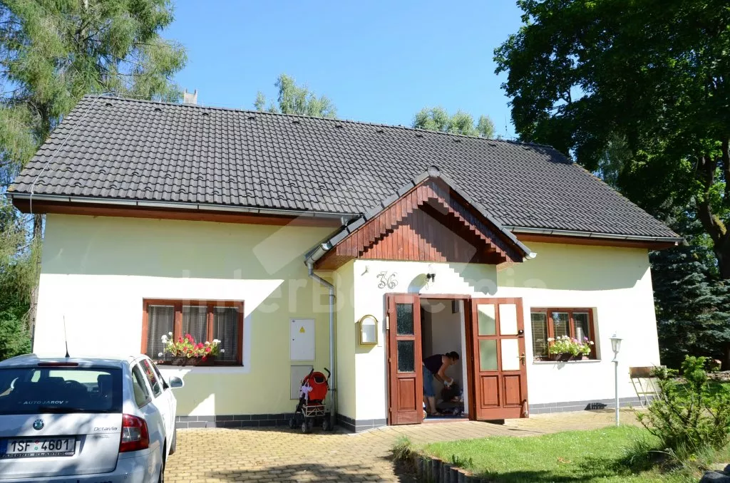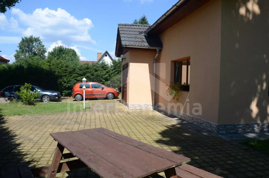Volně stojící dům, postavený v roce 2000. Jde o bývalý penzion, současně zde má uzavřený byt pronajímatel. Vstup, chodba, společenská místnost s rádiem, barem, stolem a židlemi. Kuchyně (typu restaurační kuchyně) s lednicí s mrazákem, plynovým sporákem, kávovarem, varnou konvicí, mikrovlnnou troubou, myčkou na nádobí. Dvě toalety zvlášť. Nahoře jsou čtyři ložnice, dvě s dvojlůžkem a jedním samostatným lůžkem a dvě ložnice se dvěma samostatnými lůžky. Každá ložnice má k dispozici TV se satelitním příjmem a videem a vlastní koupelnu se sprchou a WC. Elektrické vytápění. Zahrada je neoplocená, k dispozici máte terasu, dřevěný zahradní nábytek se slunečníkem, přenosný zahradní gril a ohniště. Parkoviště pro 5 aut.