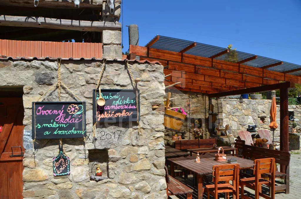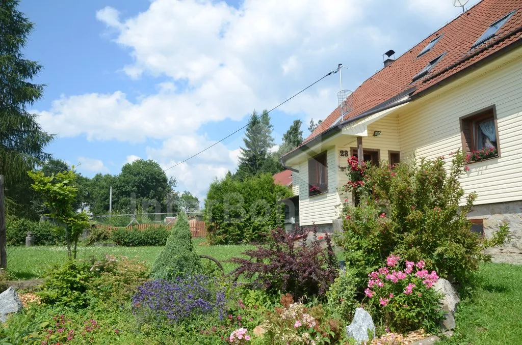 V roce 2006 nově zrekonstruovaný dům typu „dva pod jednou střechou“. Samostatné ubytování v levé části domu. Všechny místnosti jsou na jedné úrovni a jsou příjemně zařízené. Vstup do obytné kuchyně s jídelním stolem, plynovým sporákem s elektrickou troubou, lednicí, kávovarem, varnou konvicí a mikrovlnnou troubou. Koupelna se sprchou a toaletou. Ložnice s dvojlůžkem a dětskou postýlkou, druhá ložnice s palandou a samostatným lůžkem . Vytápění objektu krbovými kamny (nutné si přivézt vlastní dřevěné brikety, PEPO a sirky). Dům stojí na neoploceném pozemku, k dispozici terasa, zahradní nábytek se slunečníkem a lanová prolézačka. Vlastní parkoviště.