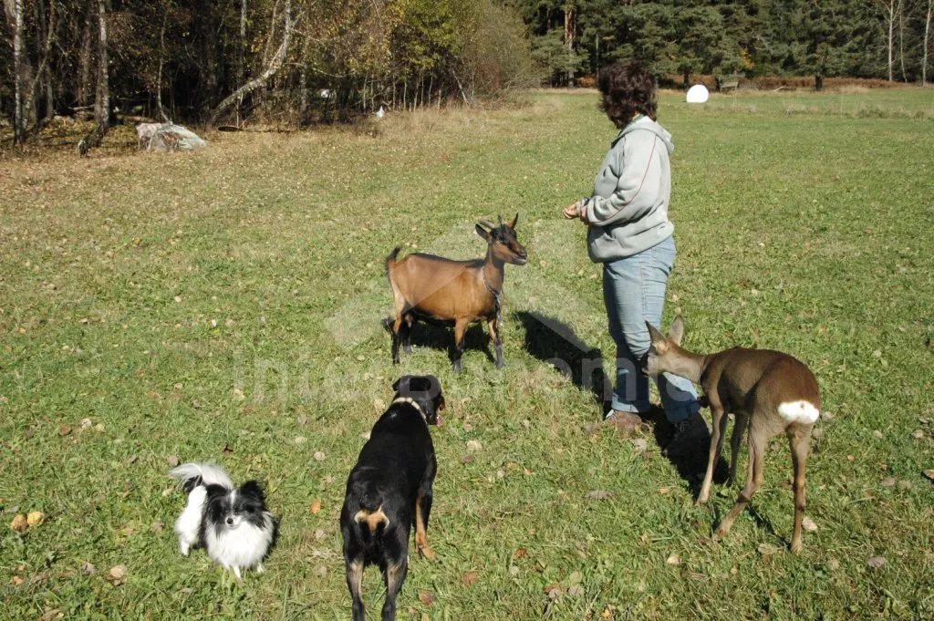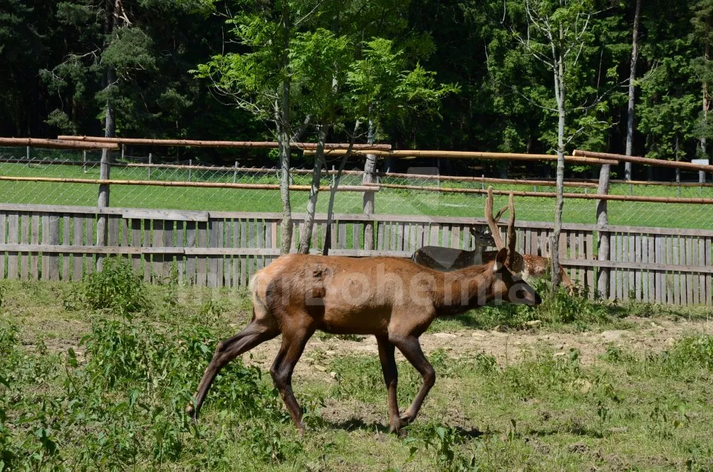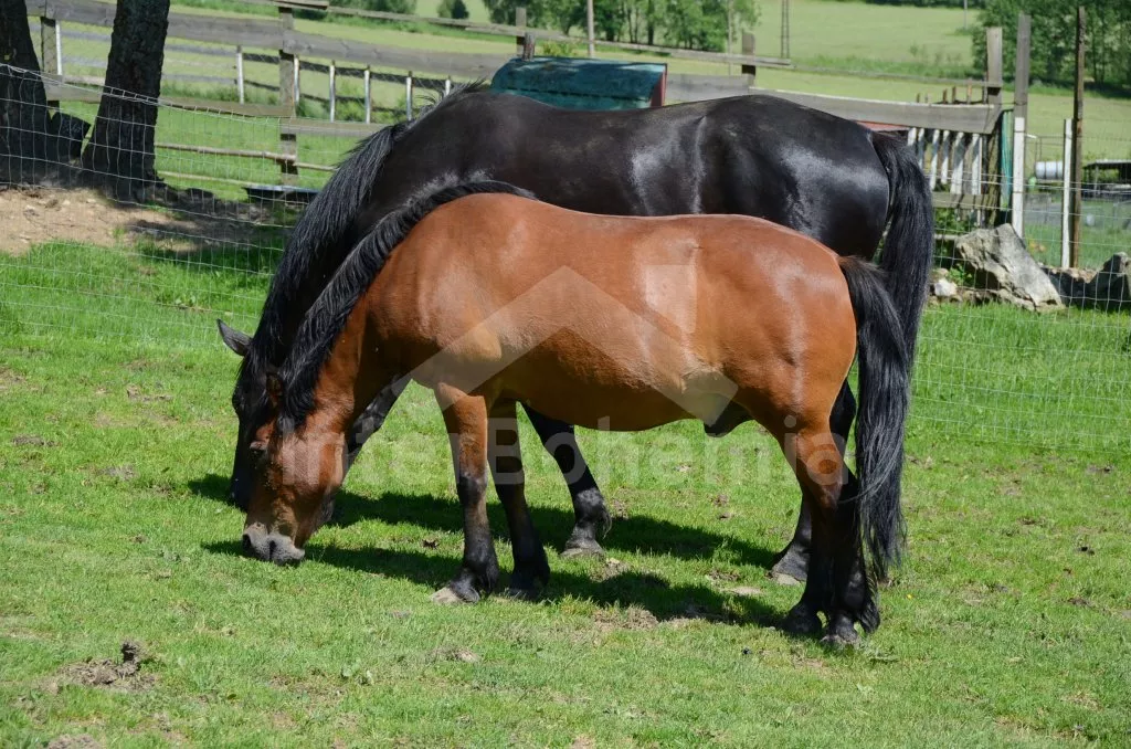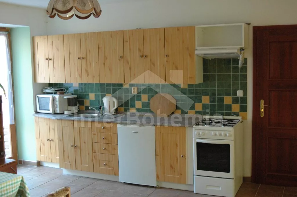 Zde naleznete skutečný ráj pro Vaše děti – množství zvířátek jako v malé zoologické zahradě! Jsou zde psi, kočky, koně, (zakrslé) kozy, ovečky, králíci, kačenky a dokonce i klokan, jeleni Wapiti a srnka. Vlastní domácí zvířata nejsou povolena. Také jsou po dohodě k dispozici vlastní vypěstované sezónní potraviny (např. mléko, sýr, chléb). K dispozici je pračka u majitelky (po dohodě Vám vypere) a Wi-Fi připojení k internetu. Na místě se hradí spotřeba el. energie (paušálně Kč 350,-/týden) a poplatek za plyn (paušálně Kč 250,-/týden). Dům je vhodný pro maximálně 4 osob + 1 miminko. Pronajímatelka bydlí v sousedství, kde je k pronájmu ještě apartmá, které naleznete pod kódem JC 0743. Možnost úschovy jízdních kol v zastřešeném dřevníku. Z důvodu bezpečnosti se na noc zavírá brána a objekt hlídá pes. Objekt není vhodný pro návštěvníky, kteří nemají rádi zvířata. Nekuřácký areál!