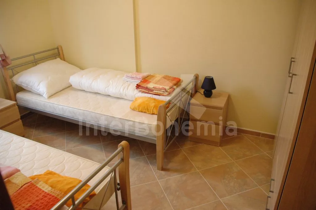 Obývá se jeden ze čtyř luxusních řadových domků, v roce 2007 nově postavených. Všechny domky jsou shodně zařízené a velmi dobře vybavené. Vstup, hala, obývací pokoj se sedací soupravou pro 5 osob, televizí se satelitním příjmem, DVD a vstupem na zastřešenou terasu. Otevřená, moderně vybavená kuchyně s jídelním stolem pro 6 osob, elektrickým sporákem s keramickou varnou deskou a horkovzdušnou troubou, lednicí, myčkou na nádobí, mikrovlnnou troubou, kávovarem, varnou konvicí a toustovačem. Koupelna se sprchou a toaletou. Ložnice se dvěma samostatnými lůžky. V patře se nachází druhá koupelna s dvojitým umyvadlem, sprchou, vanou a toaletou. Další tři ložnice – dvě každá s jedním dvojlůžkem a jedna se dvěma samostatnými lůžky. Elektrické vytápění, v přízemí podlahové. Zahrada je oplocená, k dispozici je zahradní nábytek s polštáři a přenosný gril. Vlastní přístřešek pro auto.