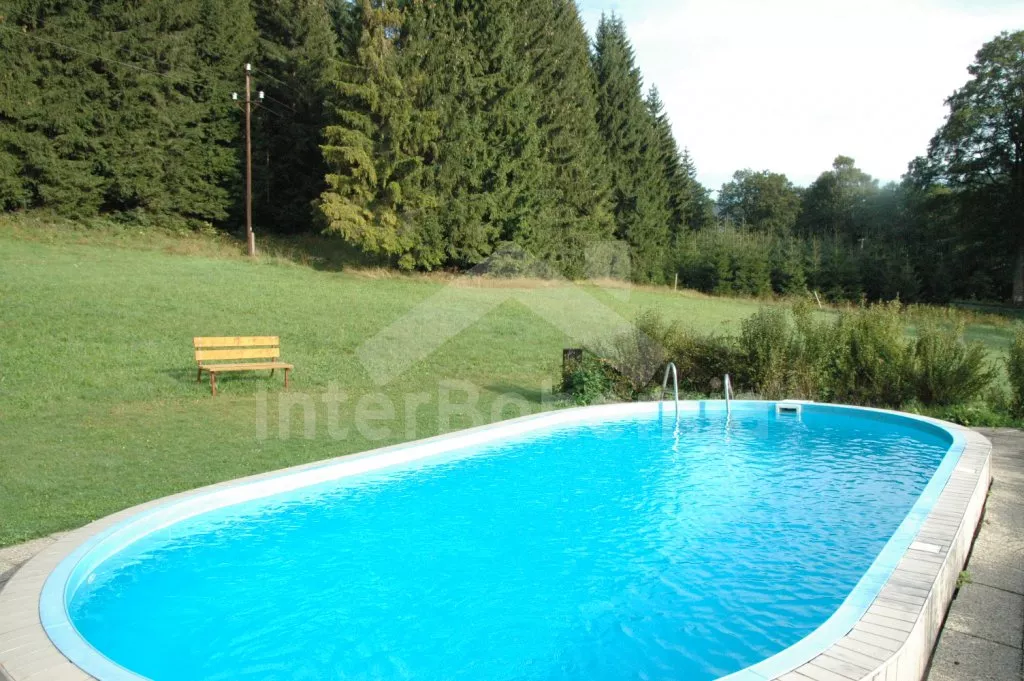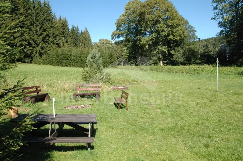 Okolo domu je velká neoplocená zahrada s dřevěným zahradním nábytkem, slunečníkem, přenosným zahradním grilem,travnatým hřištěm a pískovištěm. Zapuštěný bazén 8 x 4 m, může užívat i sousední chalupa VC 0032. Dostatek parkovacích míst, 2 auta mohou parkovat pod zastřešeným stáním. U domu je k dispozici navíc travnaté hřiště na volejbal.