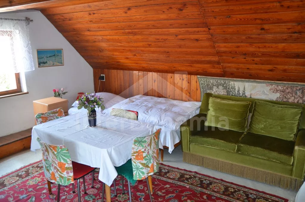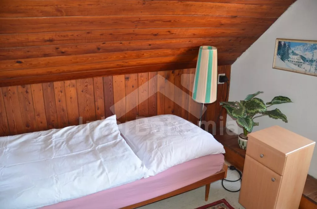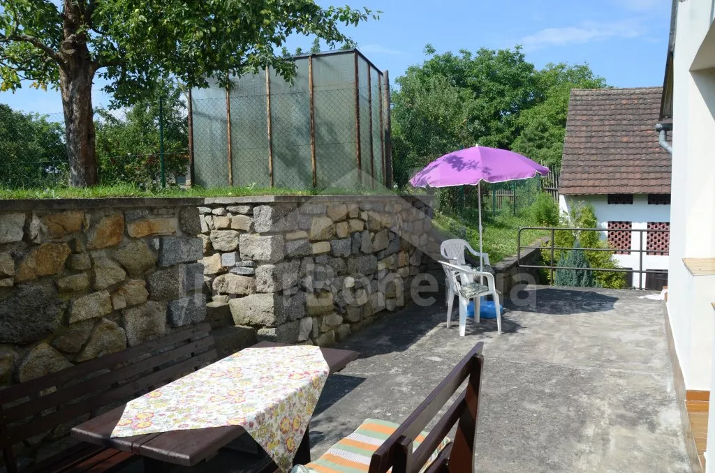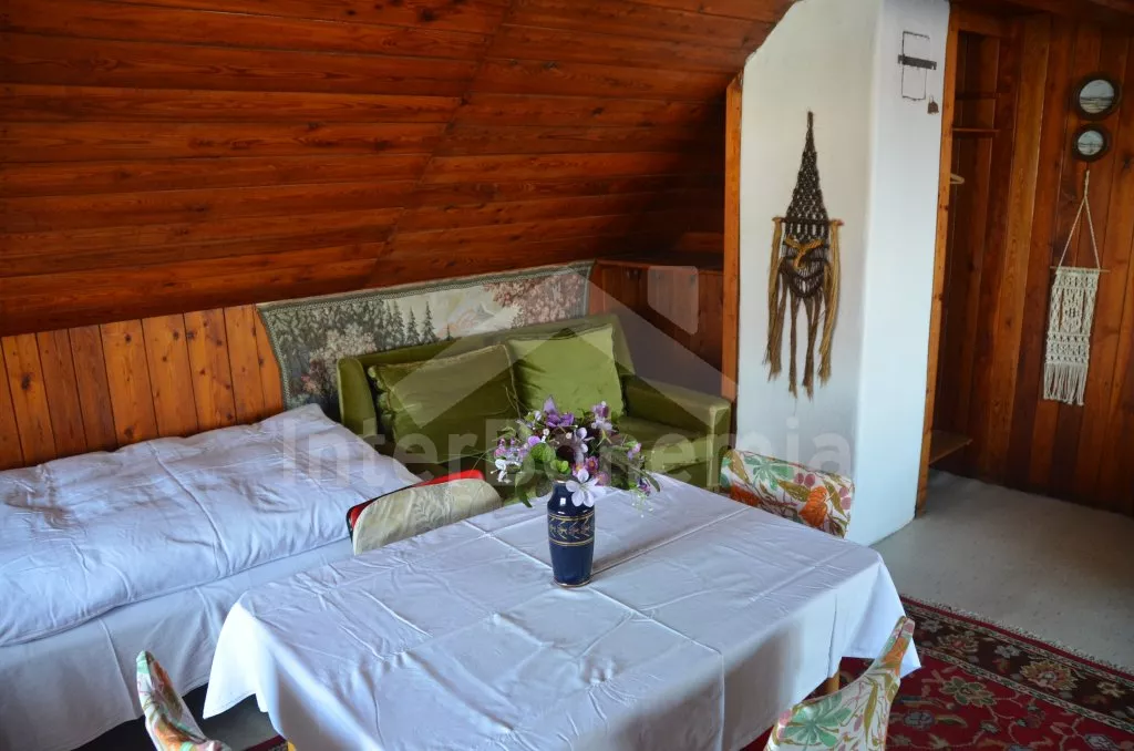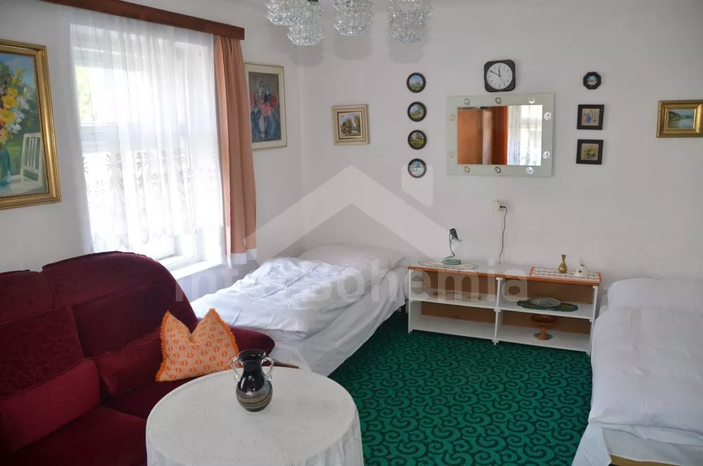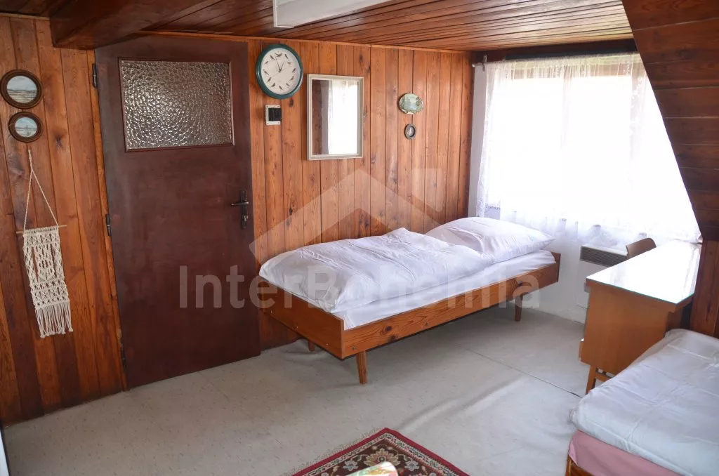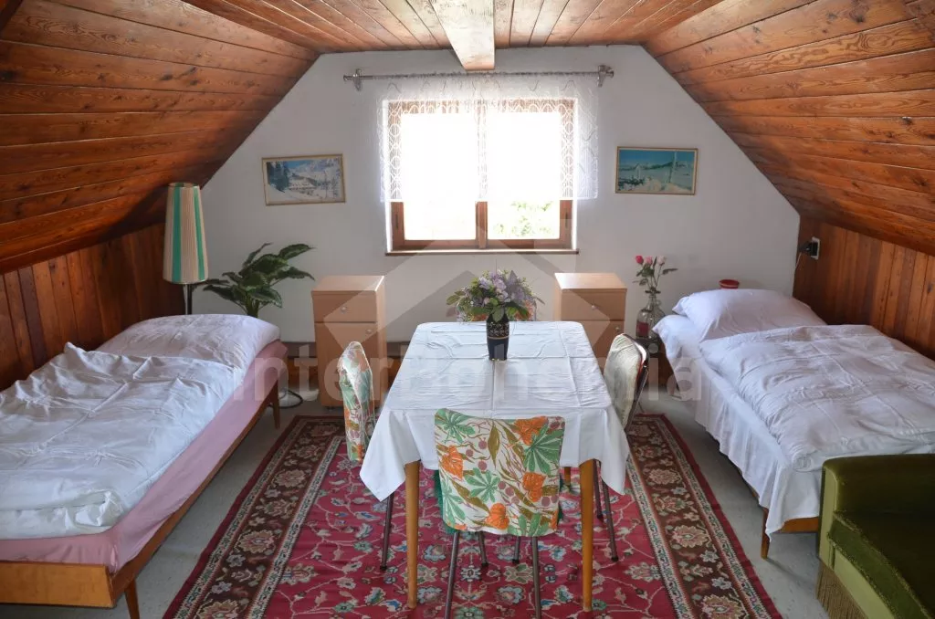 Prostorný, volně stojící rekreační venkovský dům k samostatnému obývání. Vchod, krytá terasa, chodba, obývací pokoj s posezením, dvě přistýlky a vstup na terasu. Obytná kuchyně s jídelním stolem a televizí, vybavená elektrickým sporákem se 4 plotýnkami, lednicí s mrazákem, mikrovlnou troubou,rychlovarnou konvicí a kávovarem. Koupelna s vanou, WC zvlášť. Ložnice se dvěma lůžky. Nahoře je chodba s dvěma lůžky, ložnice se dvěma lůžky a ložnice se třemi lůžky. Prostorná, oplocená zahrada s ovocnými stromy, zahradní krb, ohniště, terasa a zahradní nábytek. Vlastní parkoviště ve dvoře. Soukromí a klid.