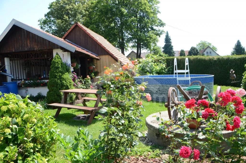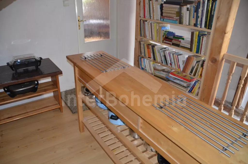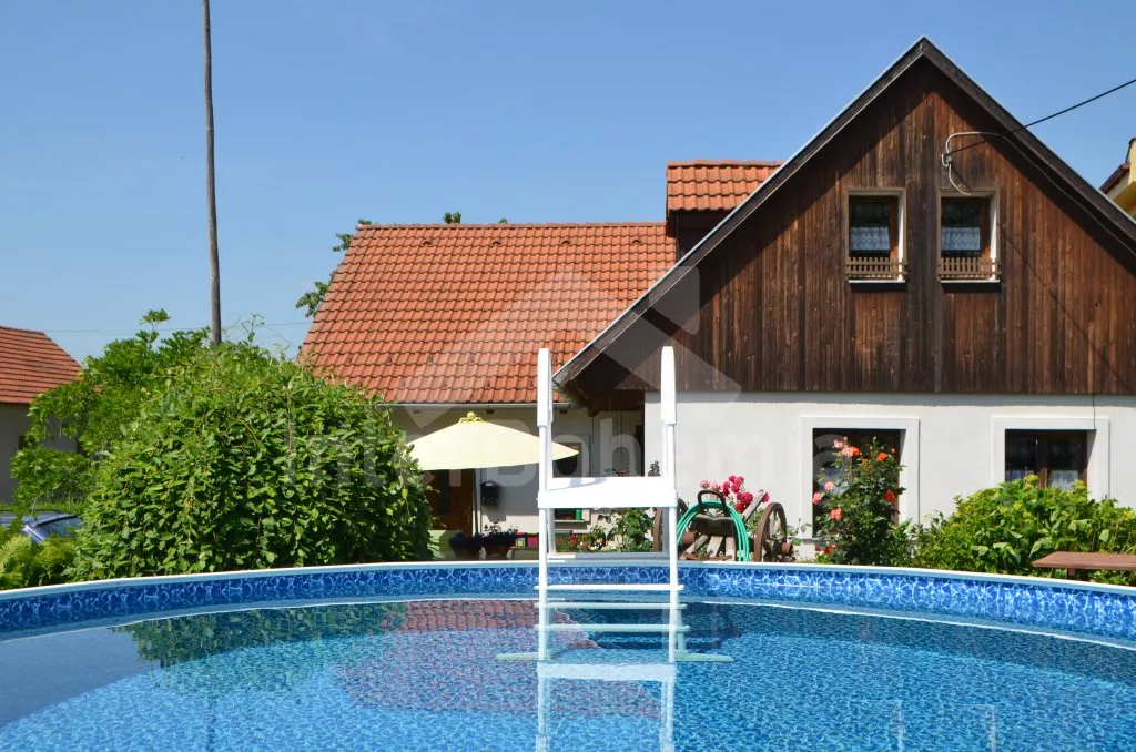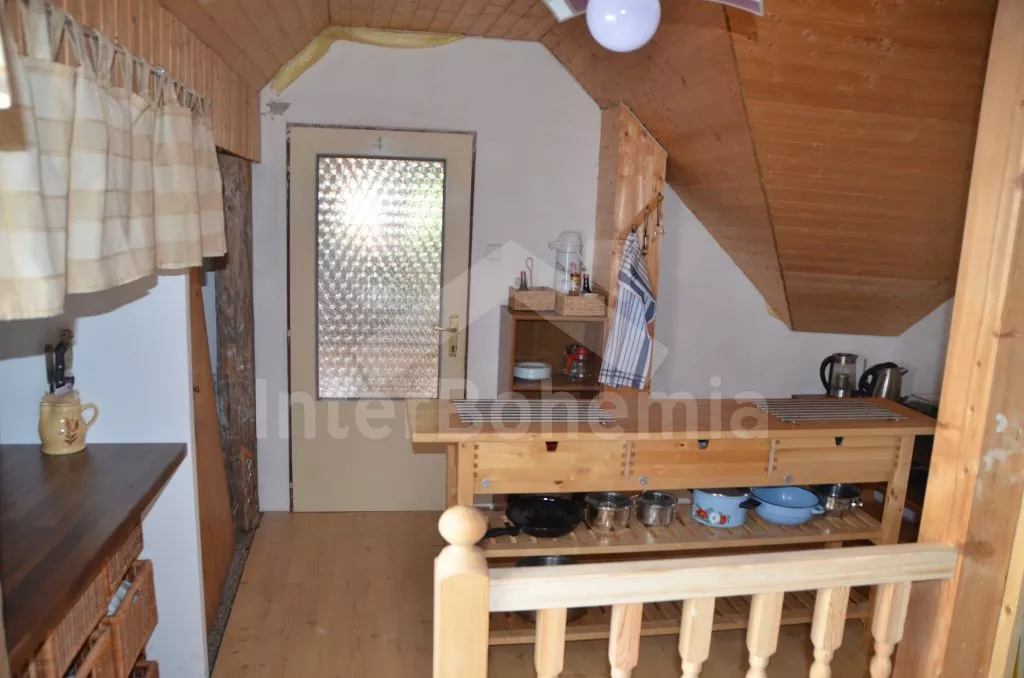 Kompletně zrenovovaná chalupa na velmi klidném místě. Chaloupka je stylově zařízená, vymazlená a máte zde naprostý klid a dostatek soukromí. Vstup, obývací pokoj se sedací soupravou a schody do podkroví. Nahoře je kuchyňský kout s dvouplotýnkovou indukční varnou deskou, lednicí, dvěmi mikrovlnnými troubami, z toho jedna s vestavěným dvouvařičem, myčkou a varnou konvicí. Dvě samostatné ložnice, každá se čtyřmi lůžky, stolem se židlemi a televizí. Koupelna s umyvadlem, sprchou a WC a druhá koupelna se sprchou a WC. Kout s umyvadlem zvlášť. Ústřední elektrické topení. Terasa se zahradním nábytkem a slunečníkem. Neoplocená zahrada, zastřešená pergola s posezením, bazén o průměru 3,6 m s filtrací, přenosný gril, ohniště a zahradní sprcha. Vlastní parkoviště pro dvě auta. Domek je vhodný pro maximálně 8 osob.
