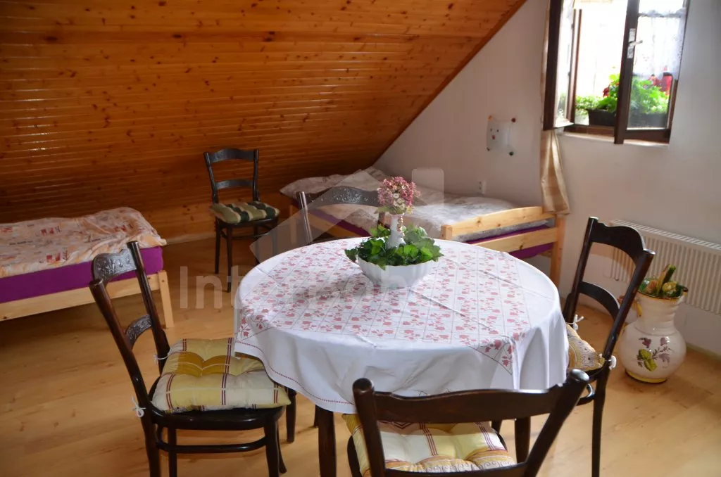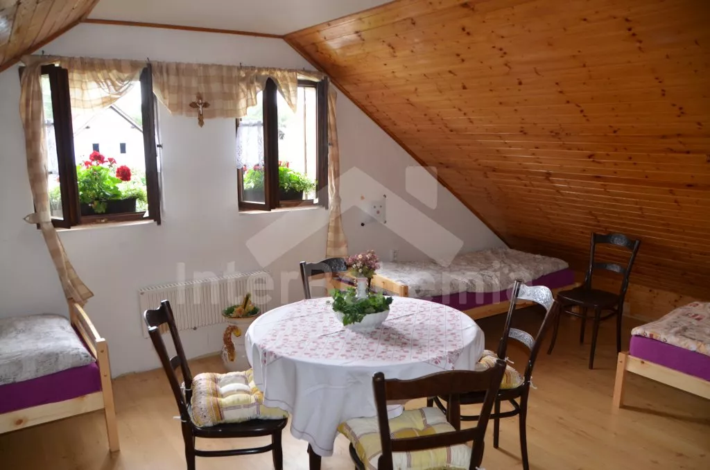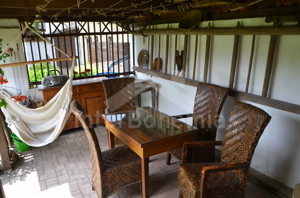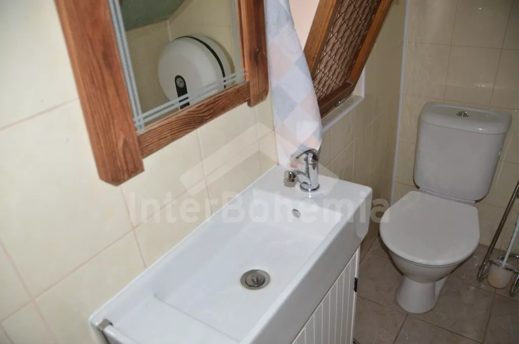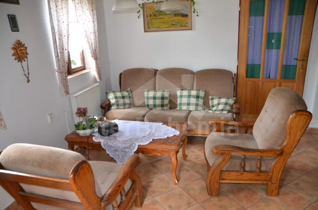 Kompletně zrenovovaná chalupa na velmi klidném místě. Chaloupka je stylově zařízená, vymazlená a máte zde naprostý klid a dostatek soukromí. Vstup, obývací pokoj se sedací soupravou a schody do podkroví. Nahoře je kuchyňský kout s dvouplotýnkovou indukční varnou deskou, lednicí, dvěmi mikrovlnnými troubami, z toho jedna s vestavěným dvouvařičem, myčkou a varnou konvicí. Dvě samostatné ložnice, každá se čtyřmi lůžky, stolem se židlemi a televizí. Koupelna s umyvadlem, sprchou a WC a druhá koupelna se sprchou a WC. Kout s umyvadlem zvlášť. Ústřední elektrické topení. Terasa se zahradním nábytkem a slunečníkem. Neoplocená zahrada, zastřešená pergola s posezením, bazén o průměru 3,6 m s filtrací, přenosný gril, ohniště a zahradní sprcha. Vlastní parkoviště pro dvě auta. Domek je vhodný pro maximálně 8 osob.