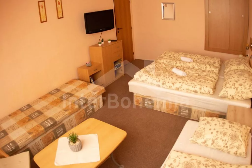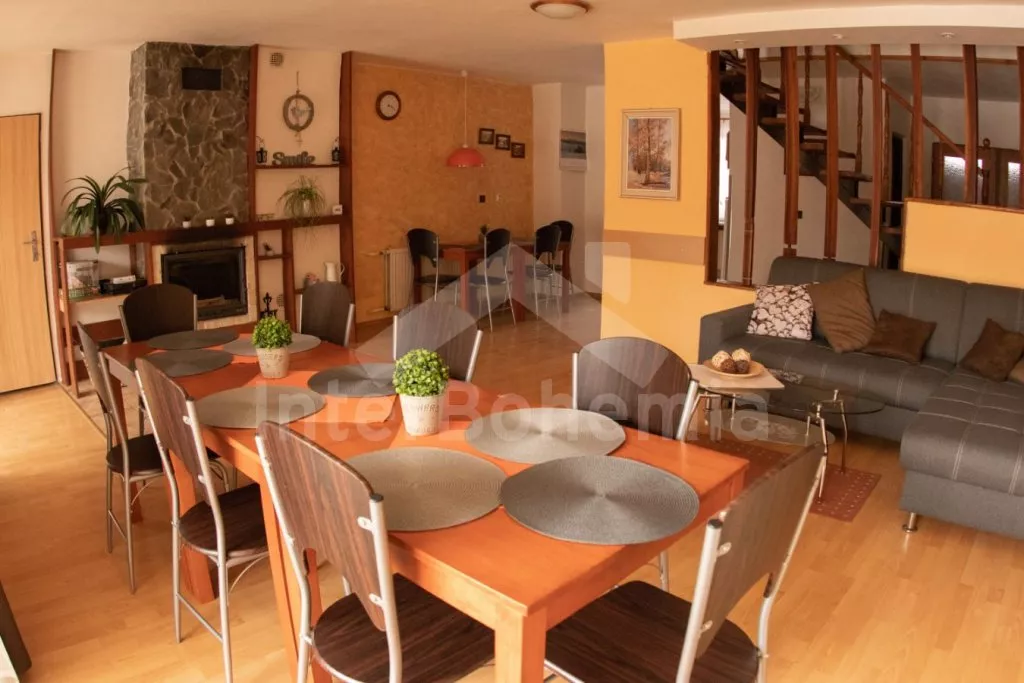 Obýváte celý řadový domek, v roce 2003 zrenovovaný, prostorný a velmi dobře zařízený. Vstup, chodba, obývací pokoj se dvěma pohovkami, jídelním stolem pro 16 osob, krbem, televizí s DVD a vstupem na… Více informací