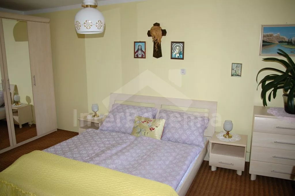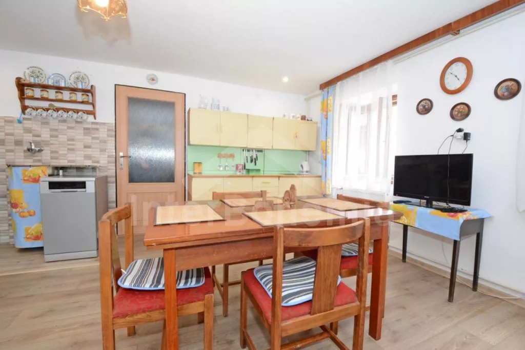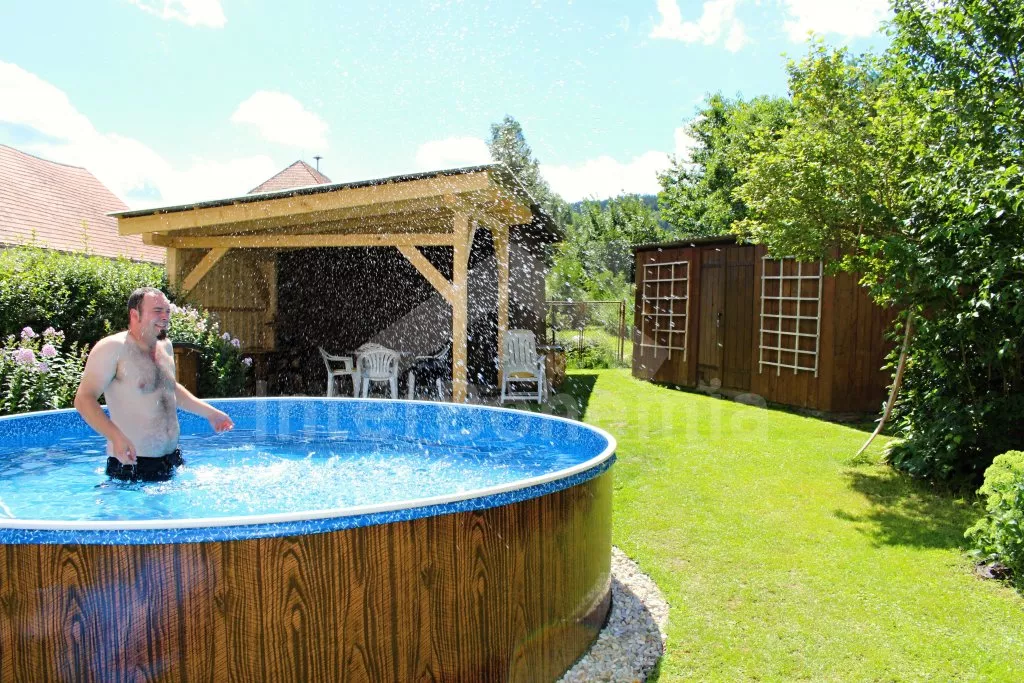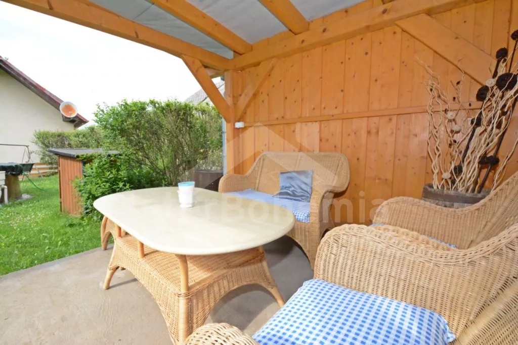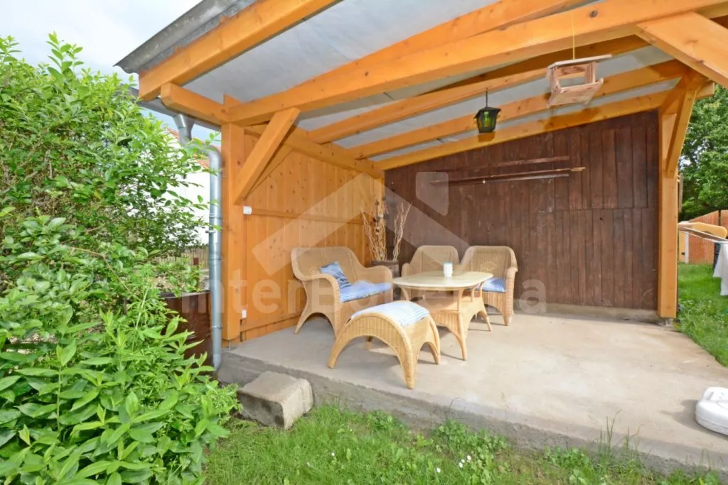 Původní rodinný dům po částečné rekonstrukci v roce 2018, pěkně a příjemně zařízený. Vstup, předsíň, kuchyně s posezením pro 5 osob na sedací soupravě, TV, WIFI, jídelním stolem pro 6 osob + dětská židlička a kuchyňským koutem s kuchyňským sporákem na dřevo, plynovým sporákem s elektrickou troubou, mikrovlnnou troubou, myčkou nádobí a varnou konvicí. Chodba se spižírnou, lednicí s mrazákem a koupelnou s vanou, umyvadlem, toaletou a pračkou. Obývací pokoj s posezením, dvoulůžkem a pohovkou sloužící zároveň jako jednolůžko se vstupem do ložnice s jedním dvoulůžkem a dětskou postýlkou. Druhá menší ložnice s dvěma jednolůžky a samostatným vchodem z předsíně. Objekt je vytápěn plynovým kotlem a kamny na tuhá paliva. Dům stojí na vlastním, kompletně oploceném pozemku se zahradou. K dispozici je pergola s ratanovým nábytkem a menší terasa se zahradním nábytkem a lehátky, houpací lavice, přenosný gril a částečně zapuštěný kulatý bazén o průměru 3,5 m s filtrací a pískoviště pro nejmenší. Vlastní parkoviště pro dva osobní vozy před objektem.